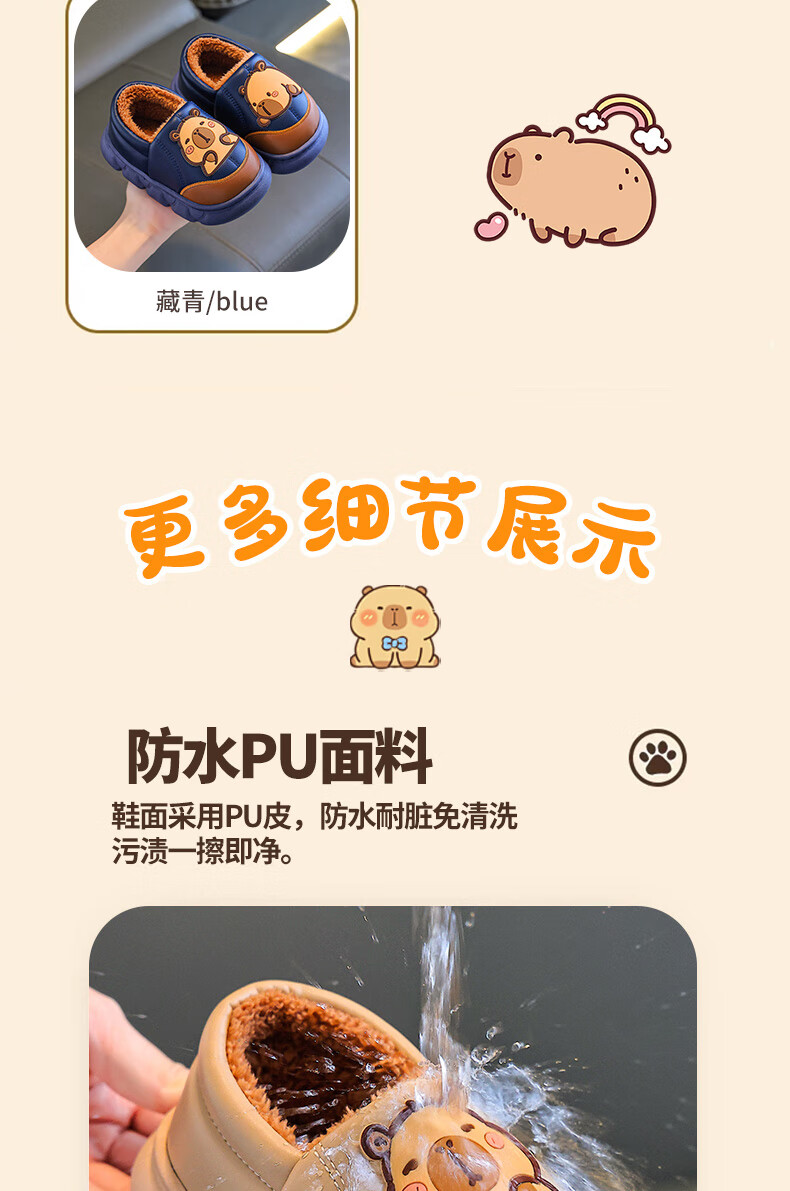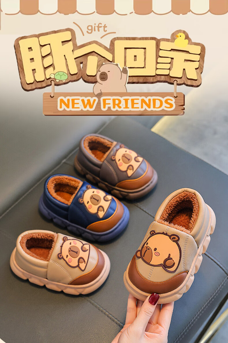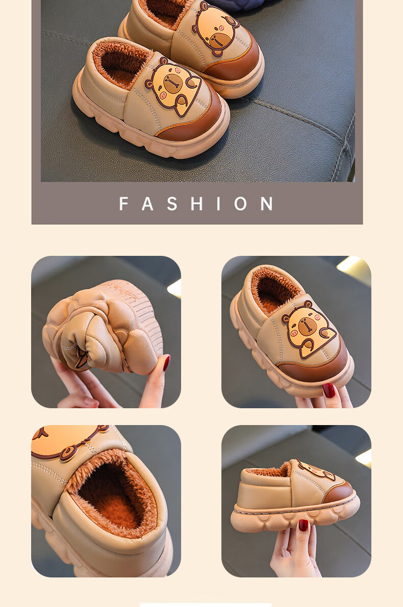 Kapibara children's cotton slippers for boys in autumn and winter 2025 new style for home and outdoor wear parent-child non-slip girls to keep warm upgraded version of environmentally friendly material light coffee (heel included) 12 36/37 size (suitable for 35/36 feet)