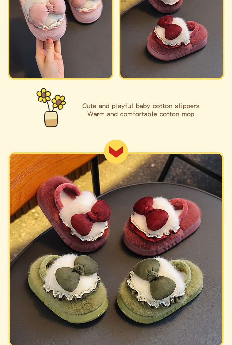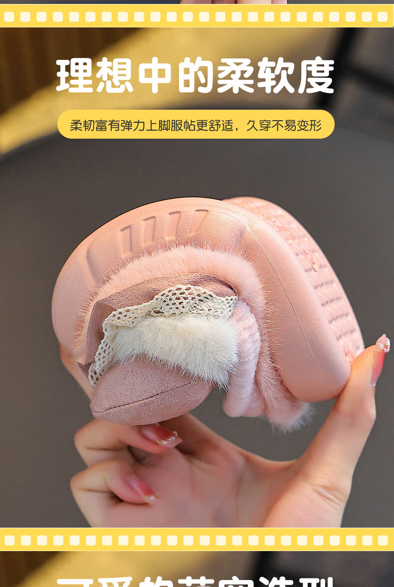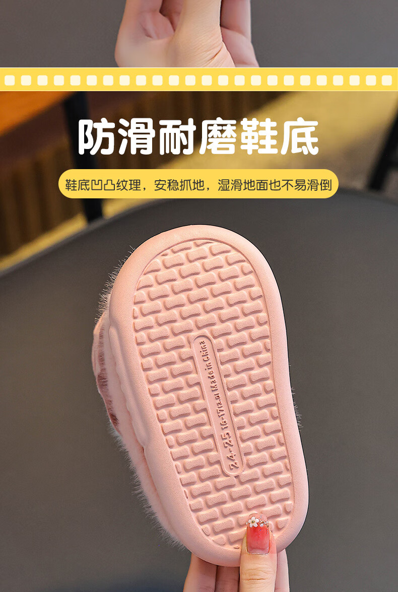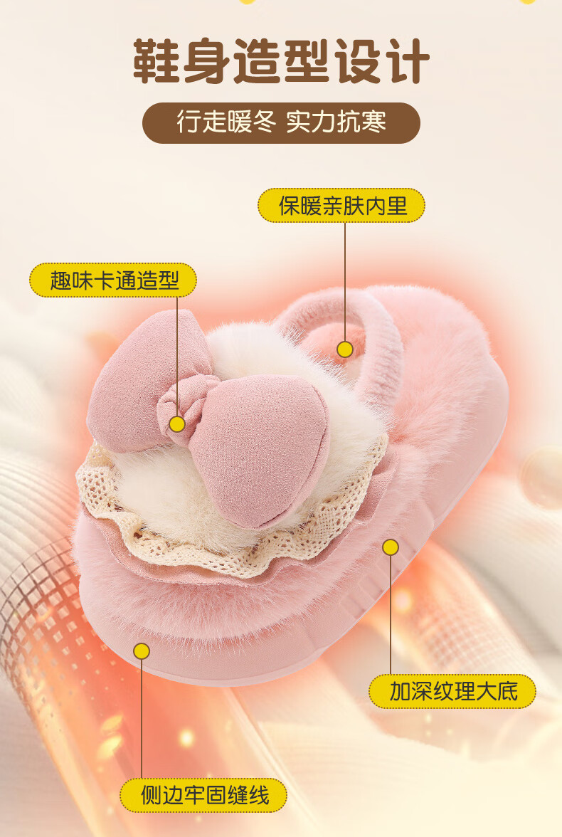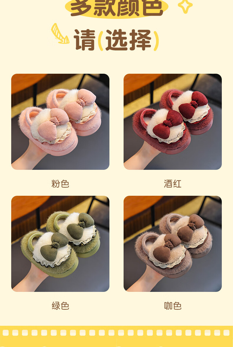 Winter children's cotton slippers for girls and princesses, non-slip EVA warm plus fluffy bow, small and medium-sized children's cotton slippers, upgraded version of environmentally friendly material pink (heel included) 12 28/29 size (inner length 17CM, no rear elastic band