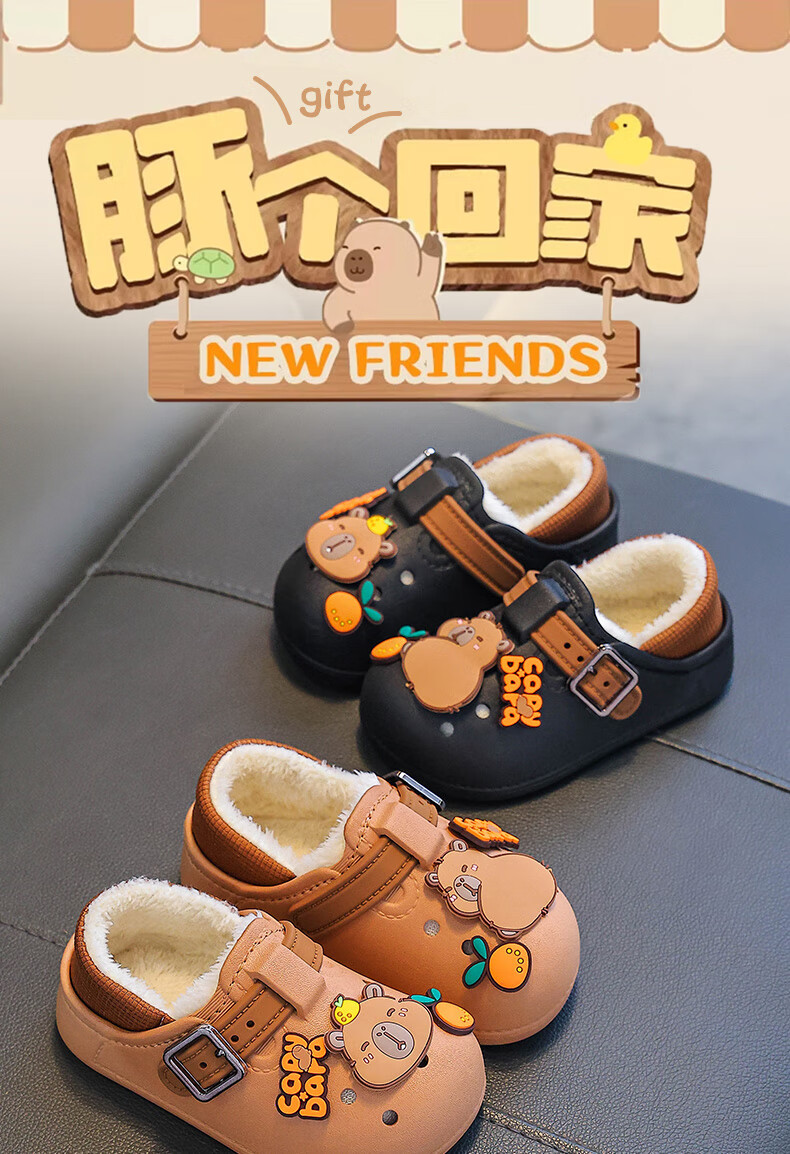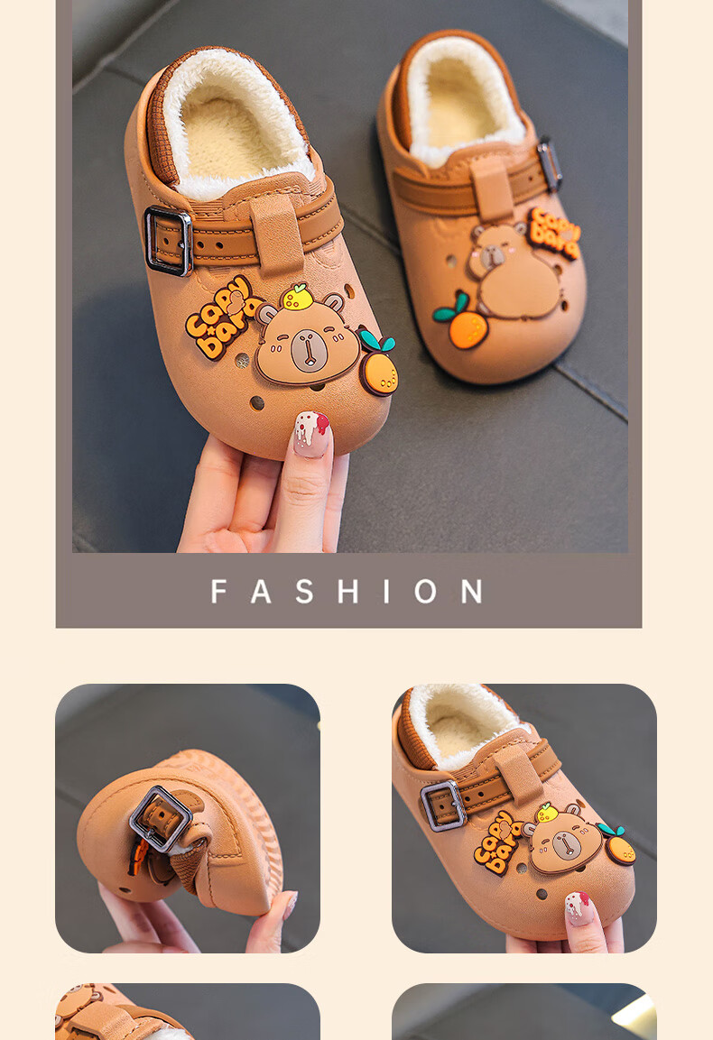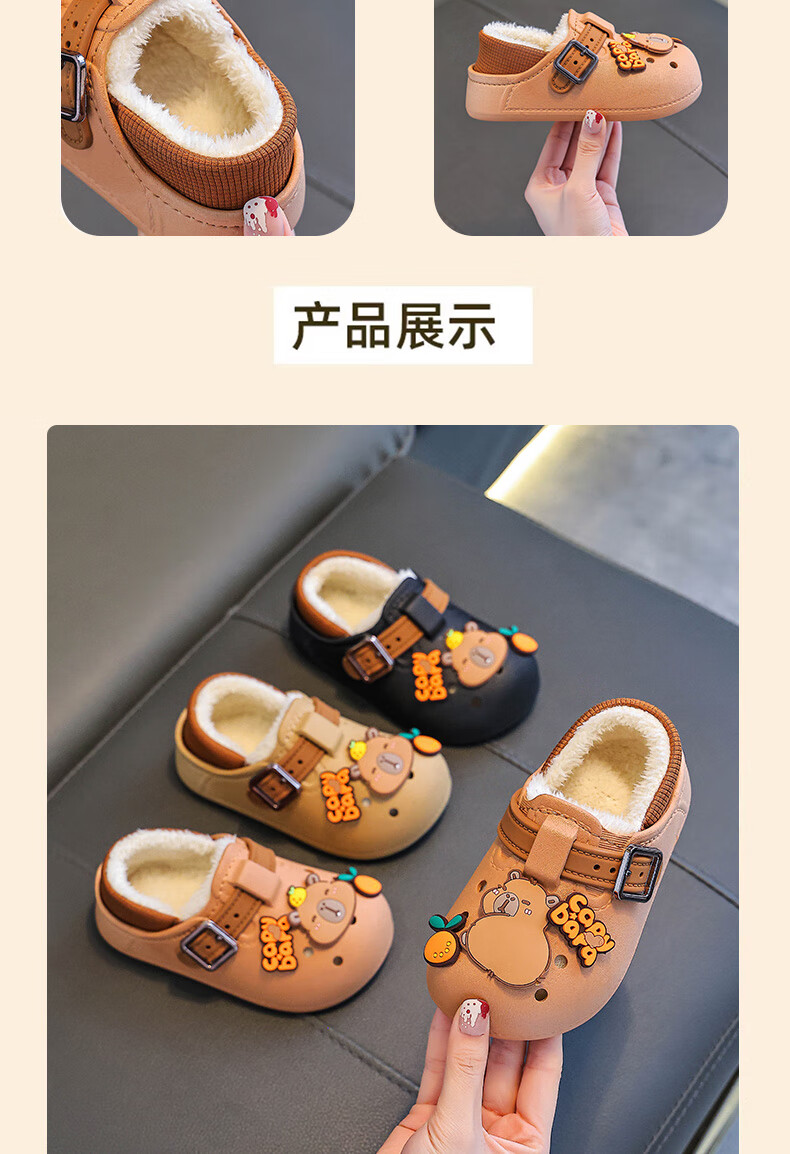 Boys' cotton shoes with heel winter cute Capibara home indoor non-slip children's furry parent-child cotton shoes light coffee slippers 12 28/29 size (shoe length 17CM suitable for feet 16