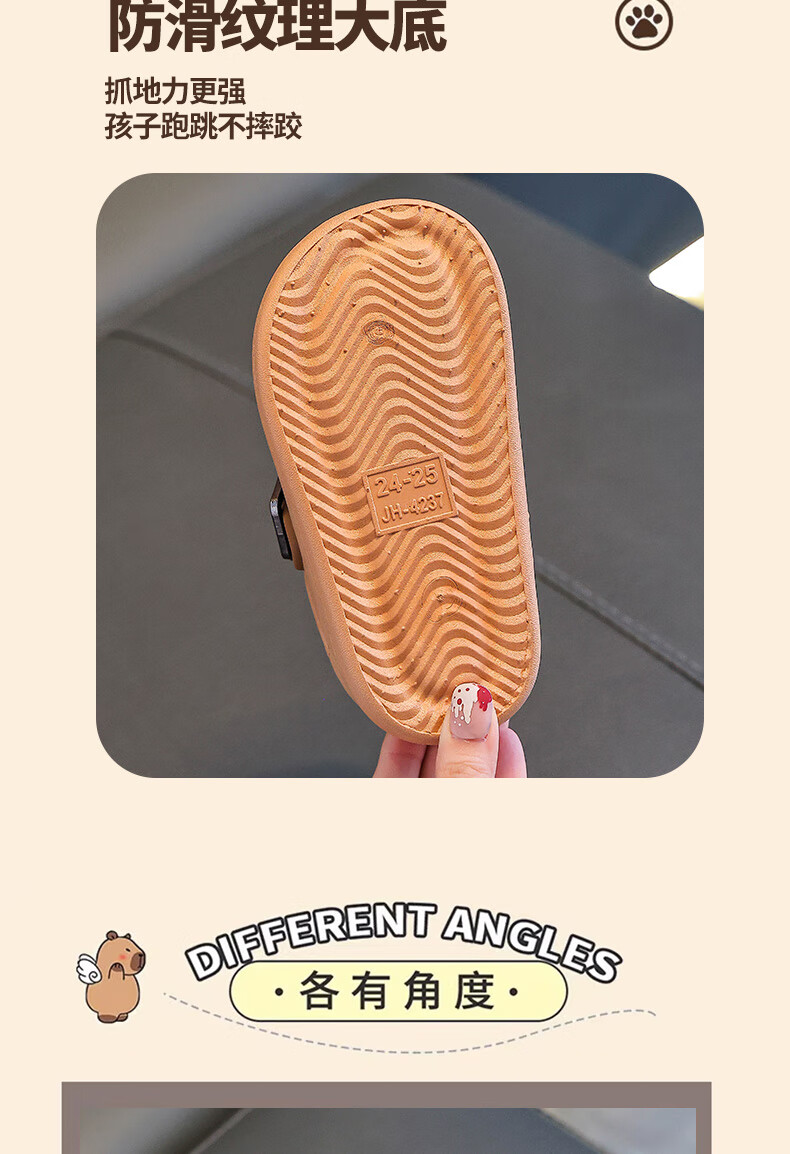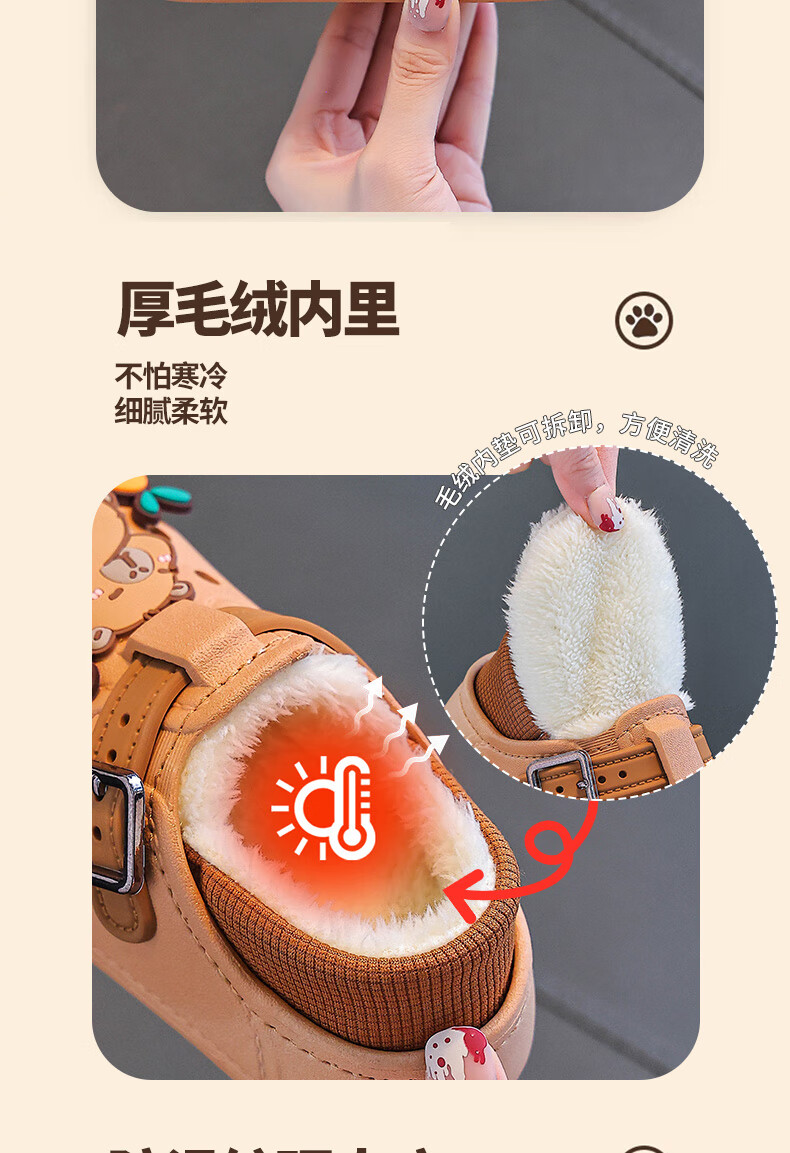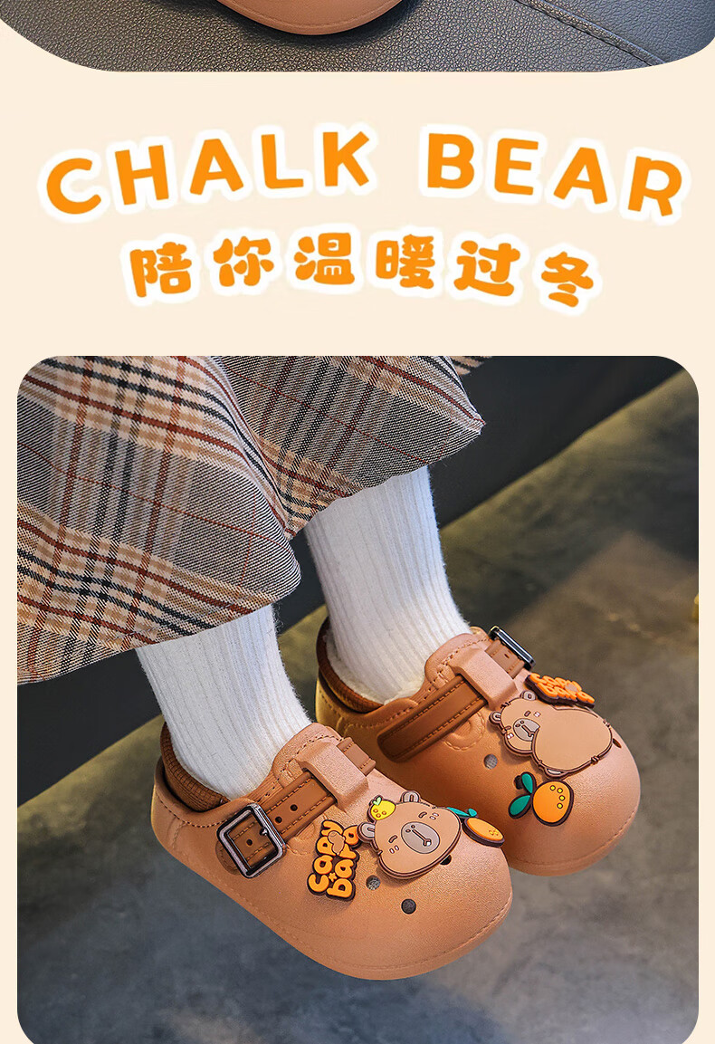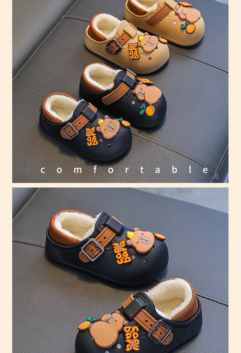 Boys' cotton shoes with heel winter cute Capibara home indoor non-slip children's furry parent-child cotton shoes light coffee slippers 12 28/29 size (shoe length 17CM suitable for feet 16