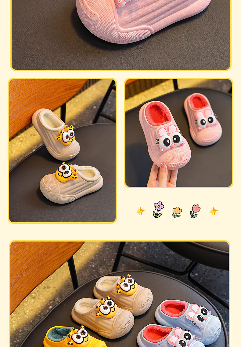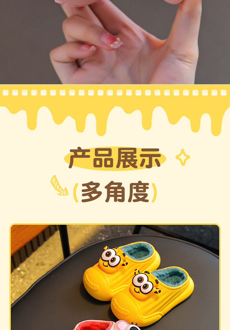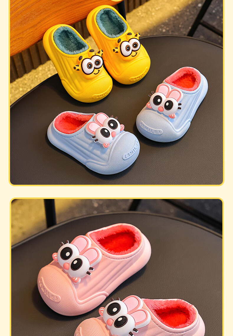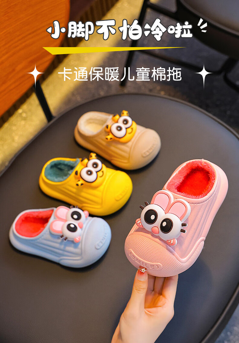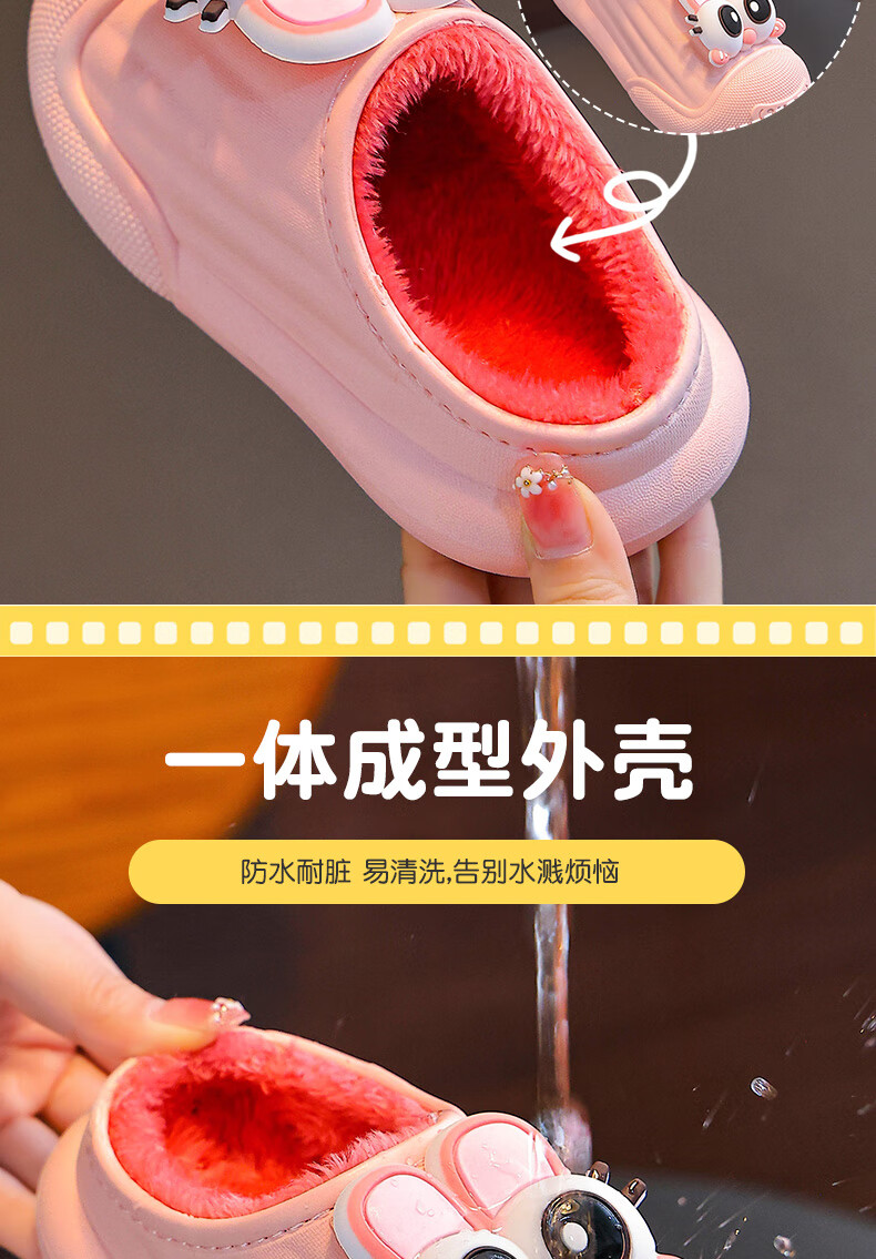 Autumn and winter children's cotton slippers for boys and girls, waterproof parent-child slippers for indoor home, warm cotton shoes, melon red slippers, size 12, size 24/25 (shoe inner length 15CM, suitable for feet 14