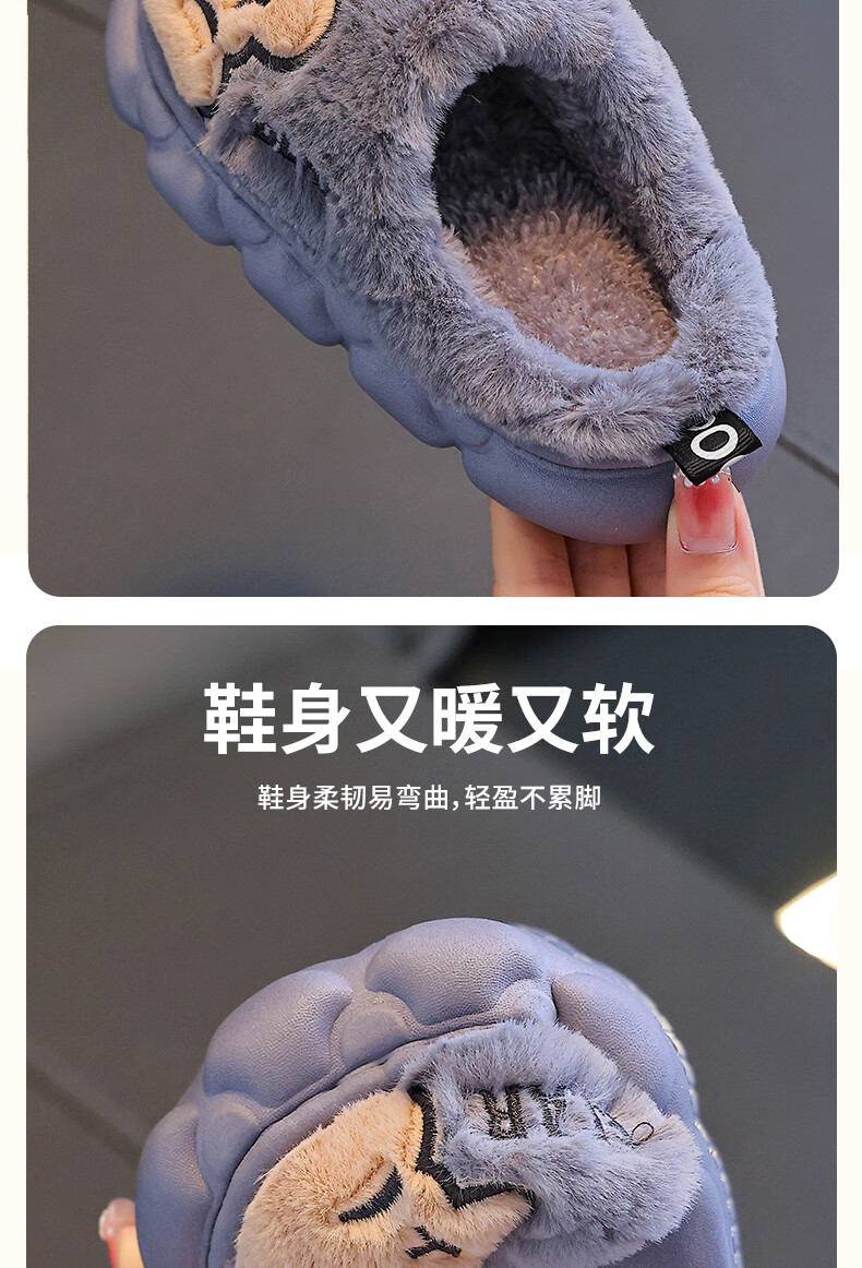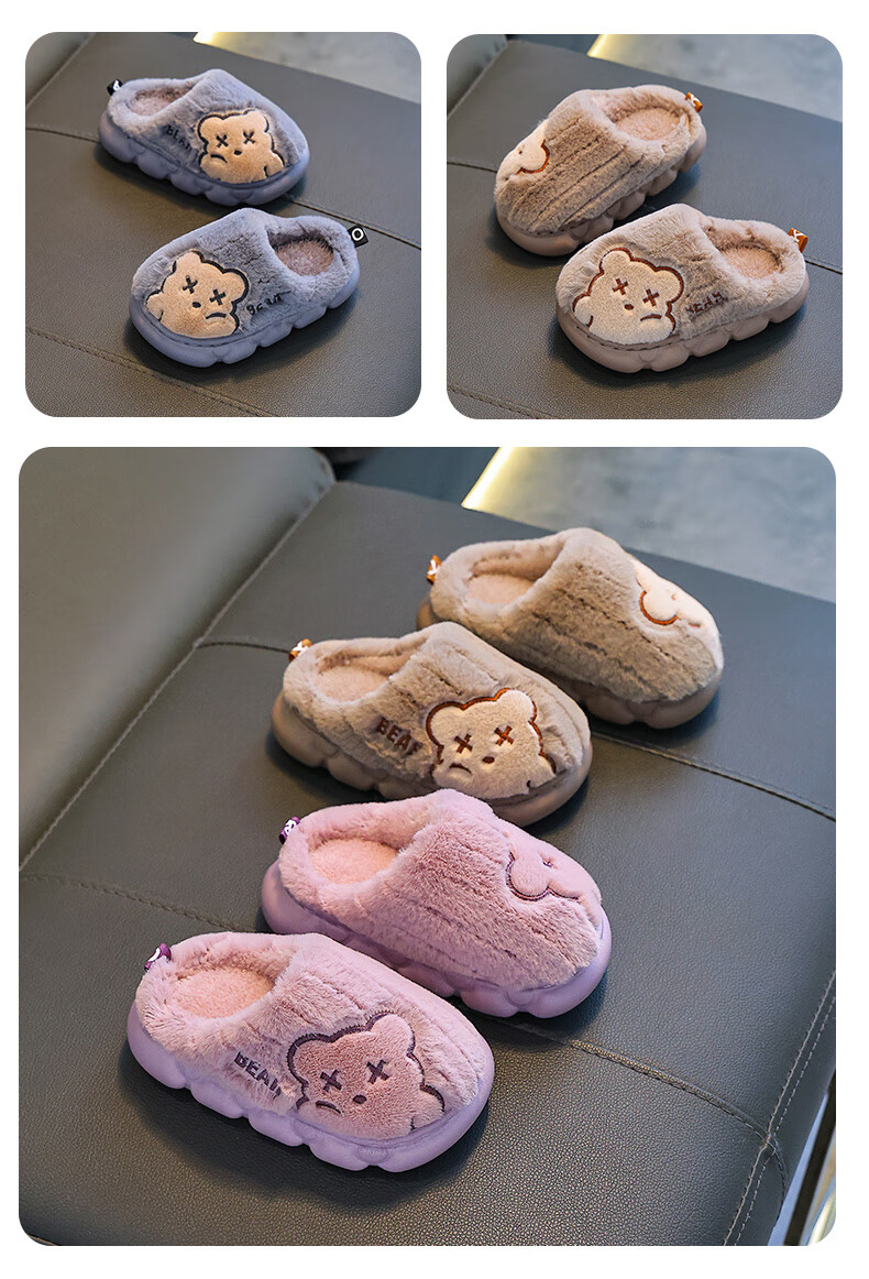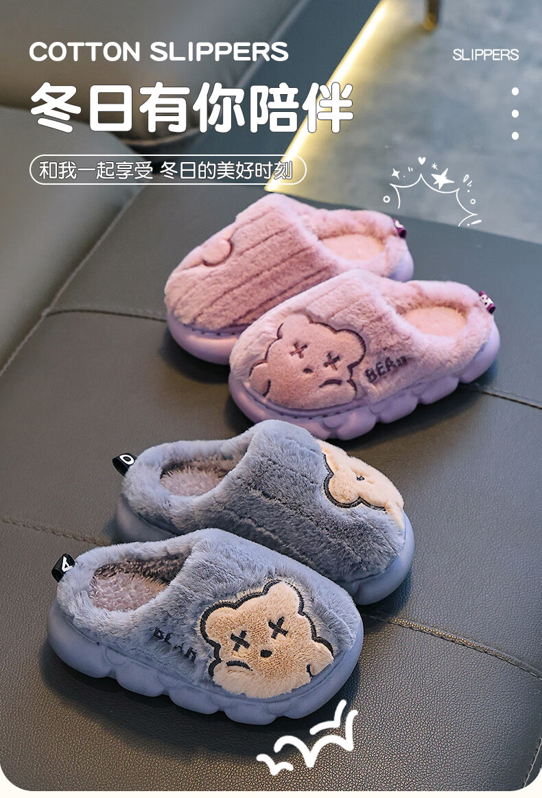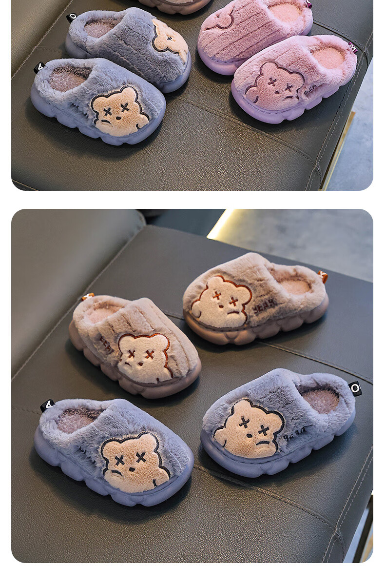 Children's cotton slippers for boys winter cartoon cute non-slip indoor home soft bottom parent-child baby slippers upgraded version of environmentally friendly material khaki slippers 12 24/25 size (shoe length 15CM suitable for feet 14