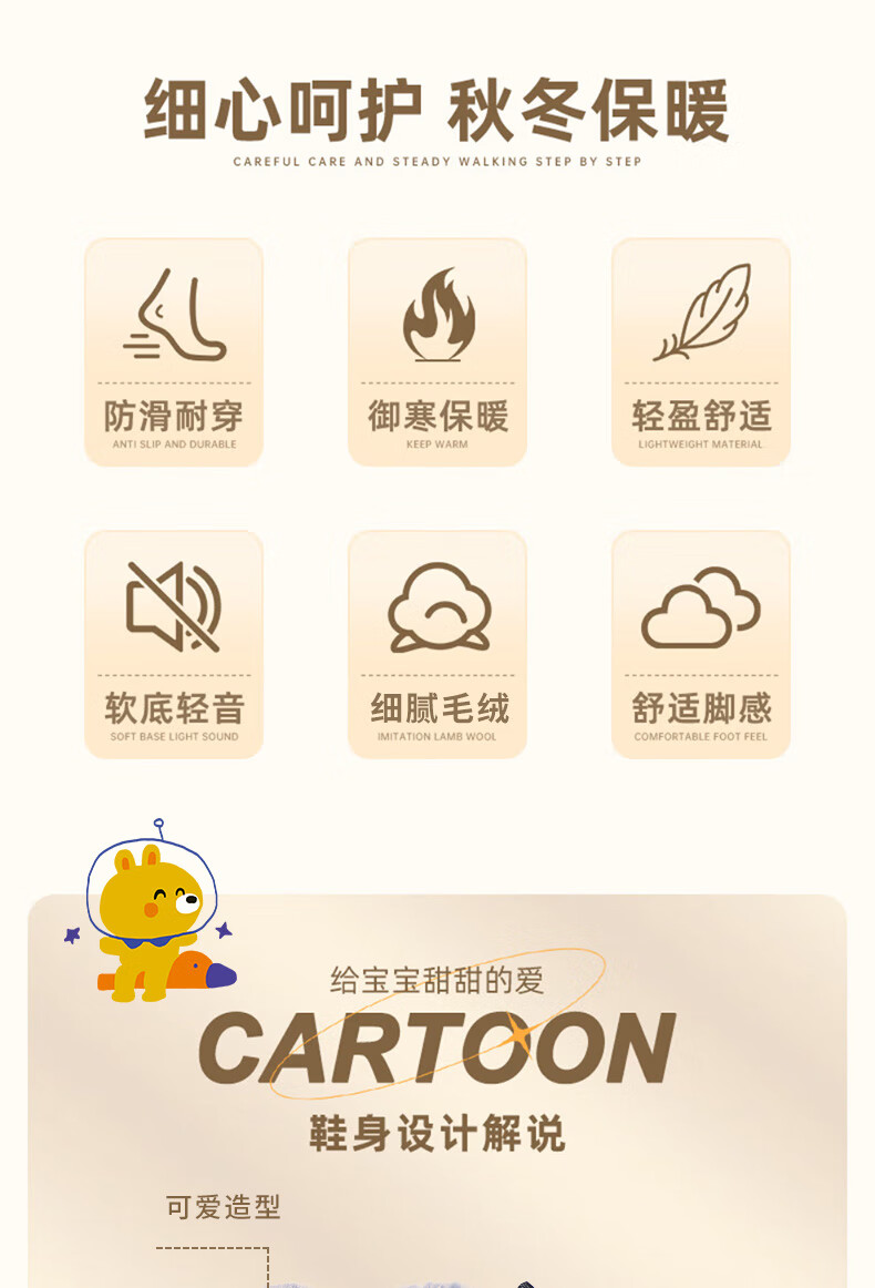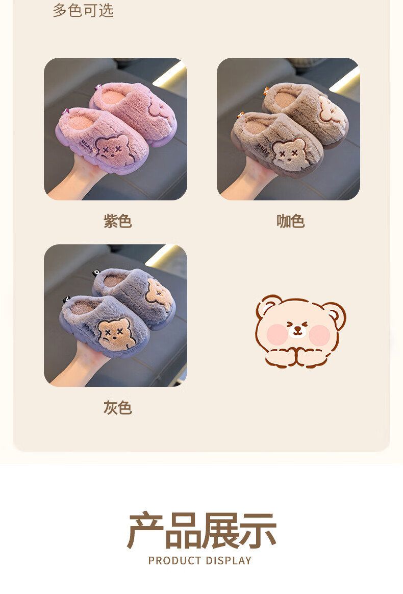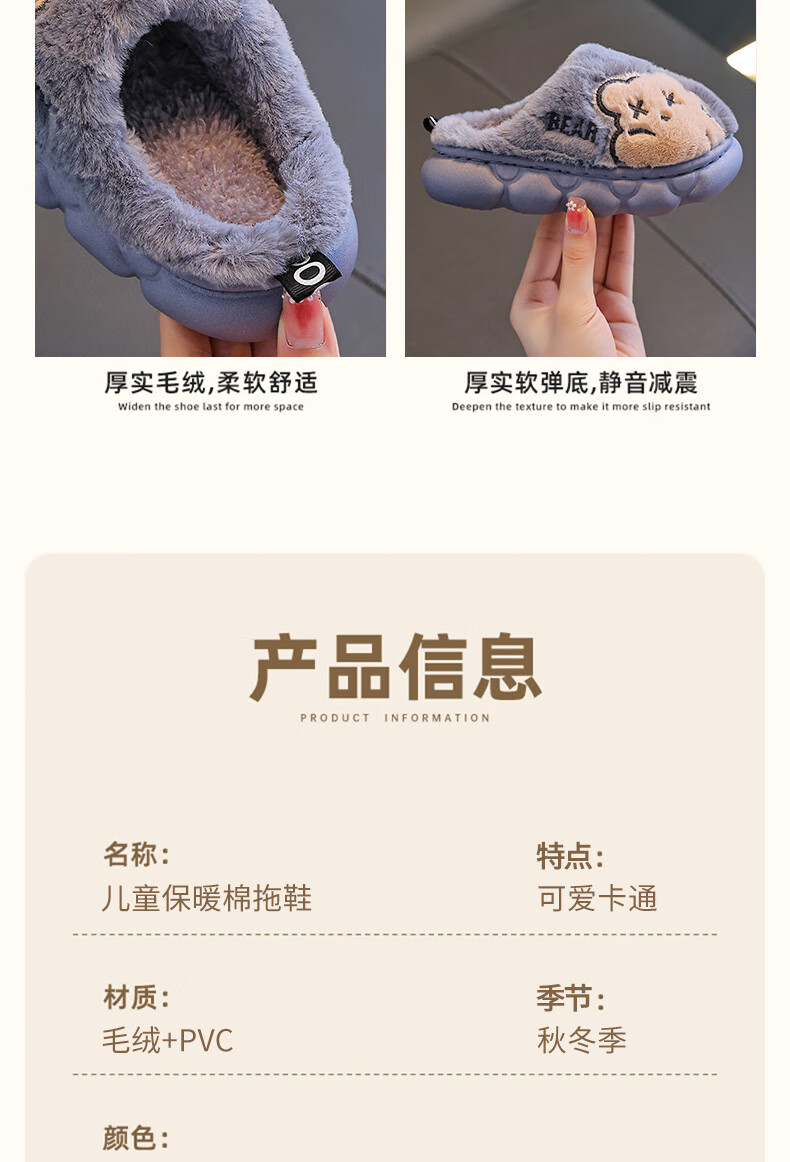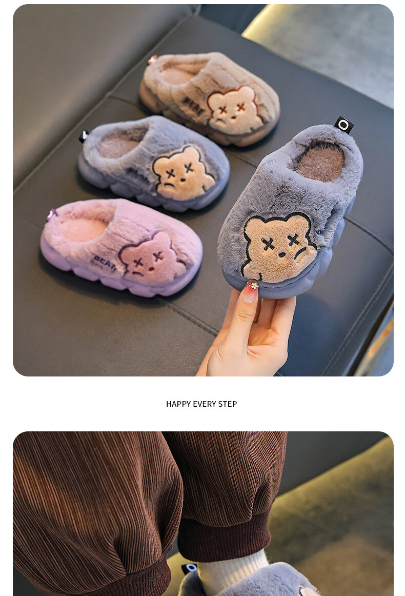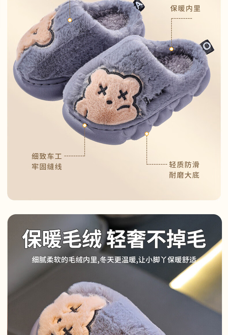 Children's cotton slippers for boys winter cartoon cute non-slip indoor home soft bottom parent-child baby slippers upgraded version of environmentally friendly material khaki slippers 12 24/25 size (shoe length 15CM suitable for feet 14