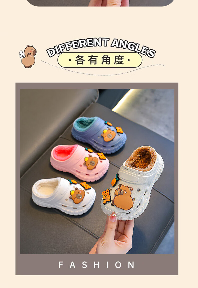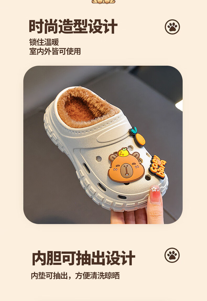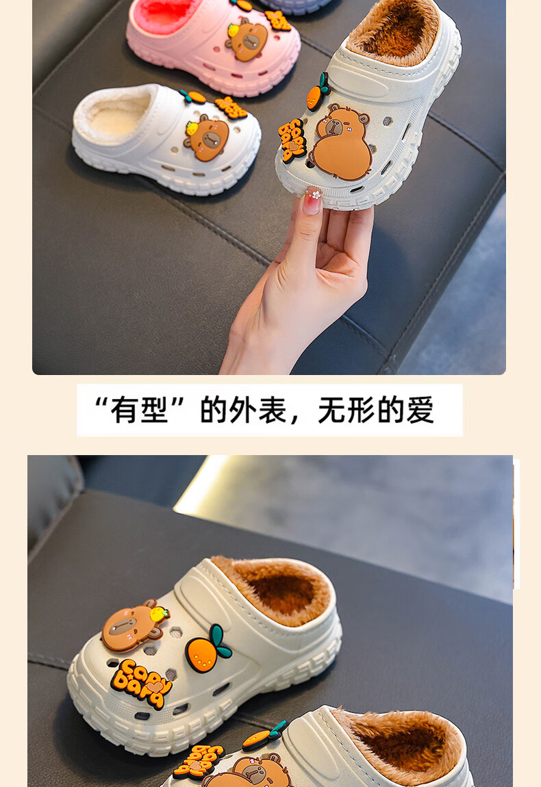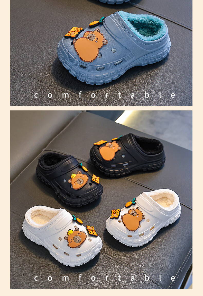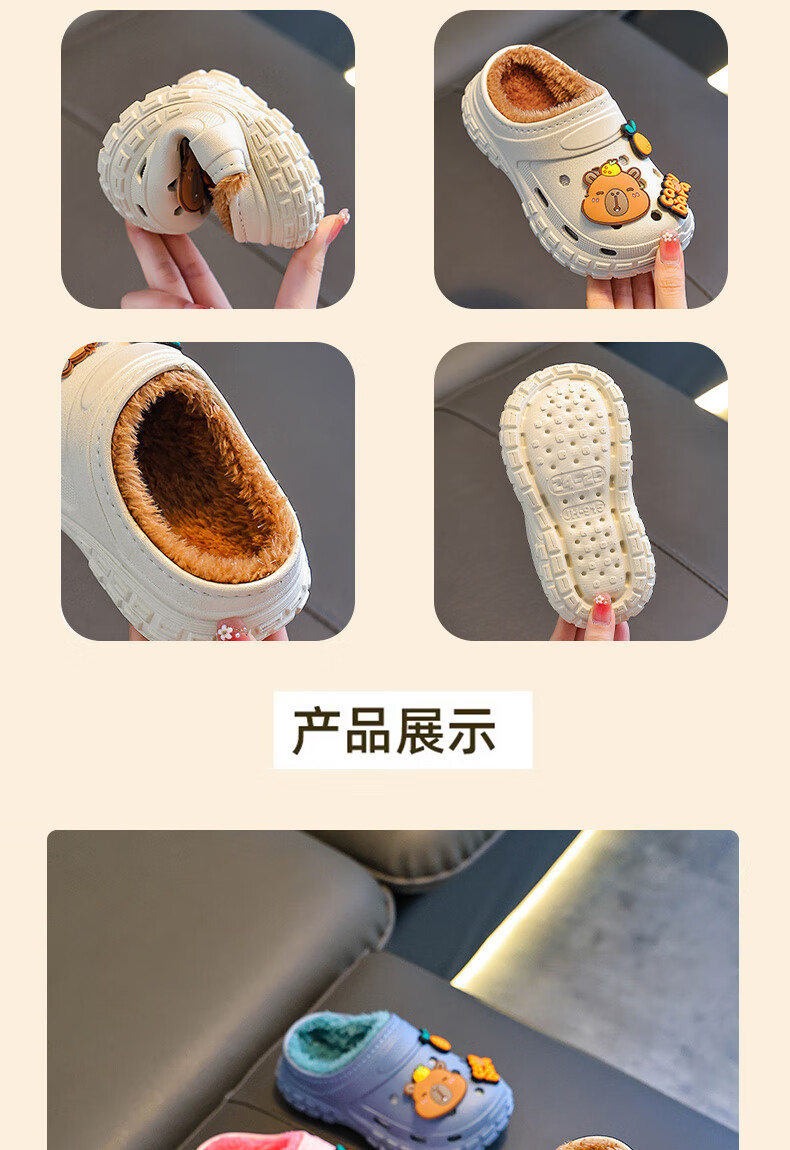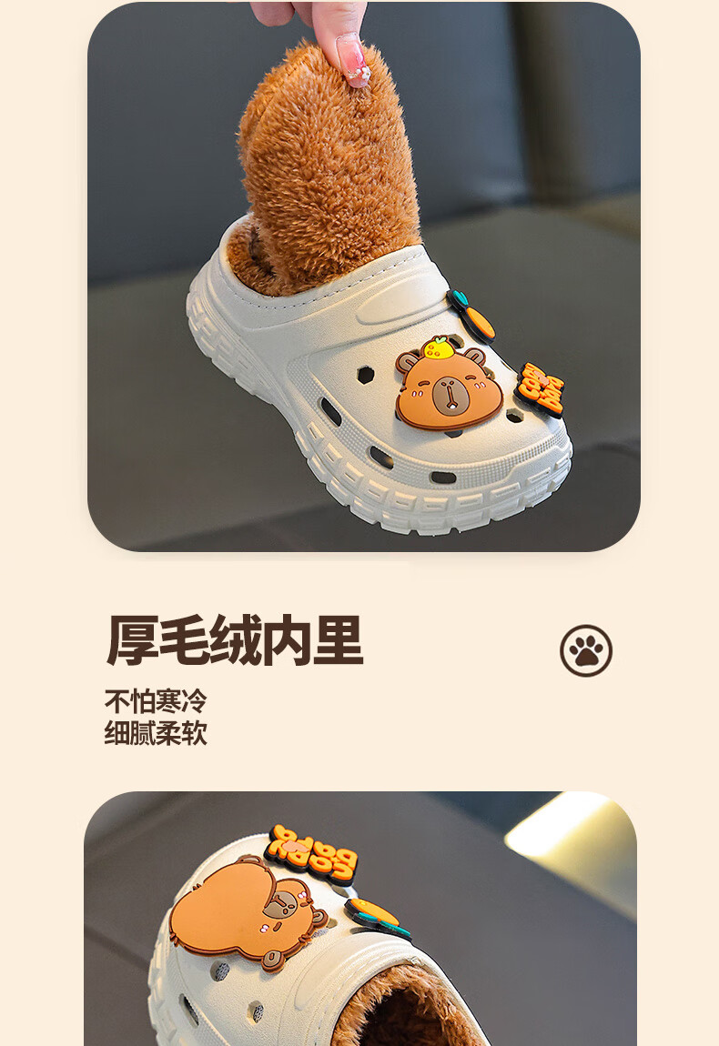Kapibara children's cotton slippers, boy's winter cartoon cute non-slip indoor soft-soled baby slippers, khaki (heel included) 12 size 38/39 (suitable for 37/38 feet)