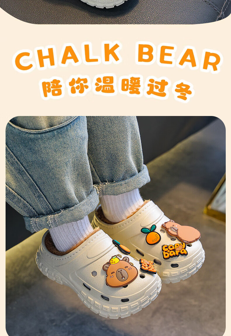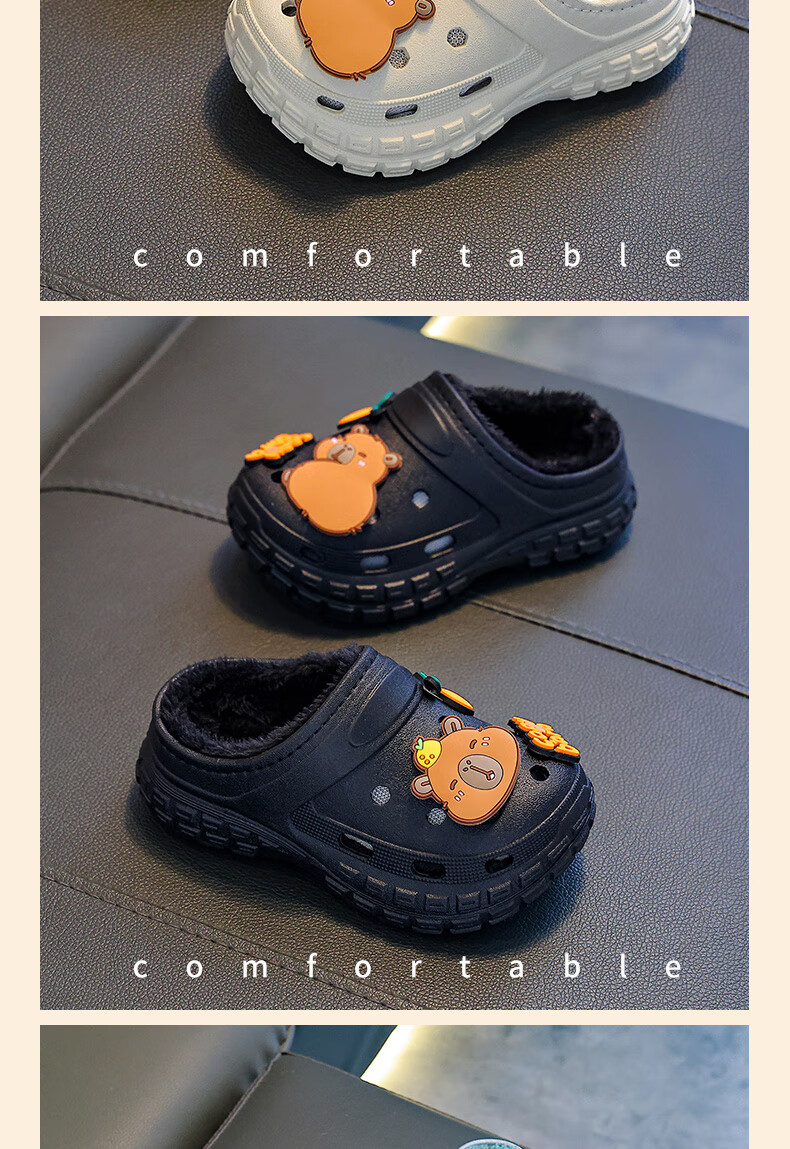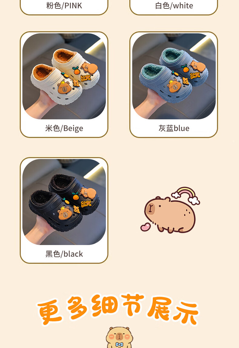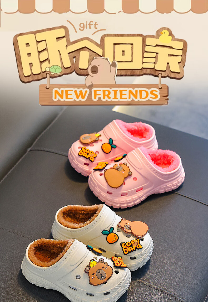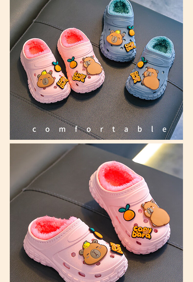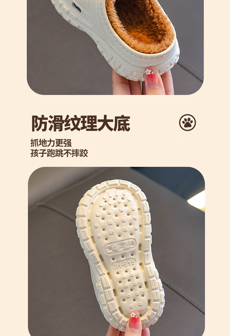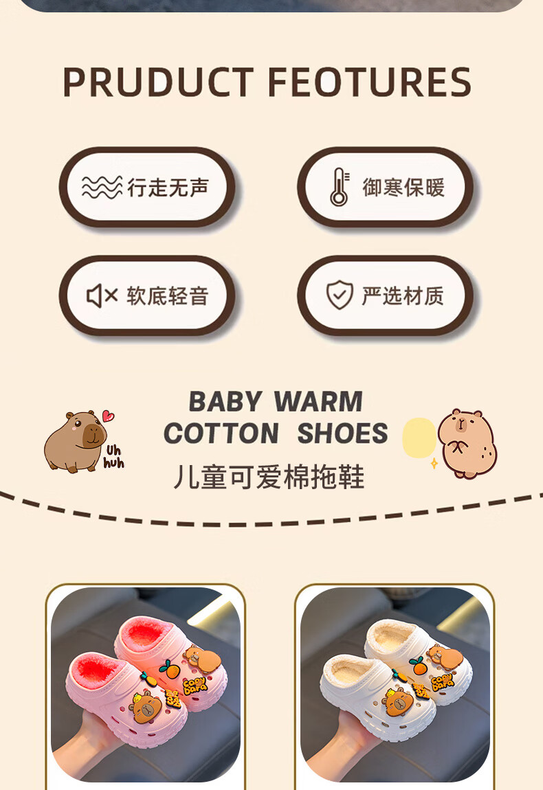 Kapibara children's cotton slippers, boy's winter cartoon cute non-slip indoor soft-soled baby slippers, khaki (heel included) 12 size 38/39 (suitable for 37/38 feet)