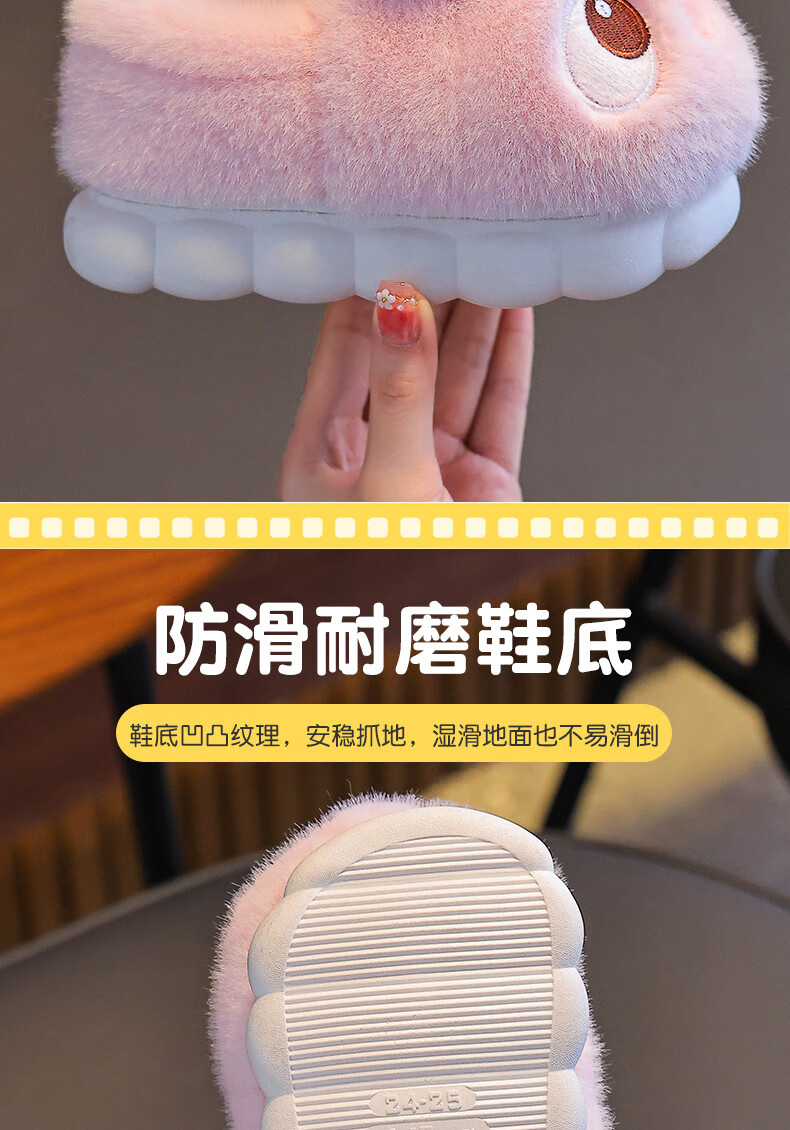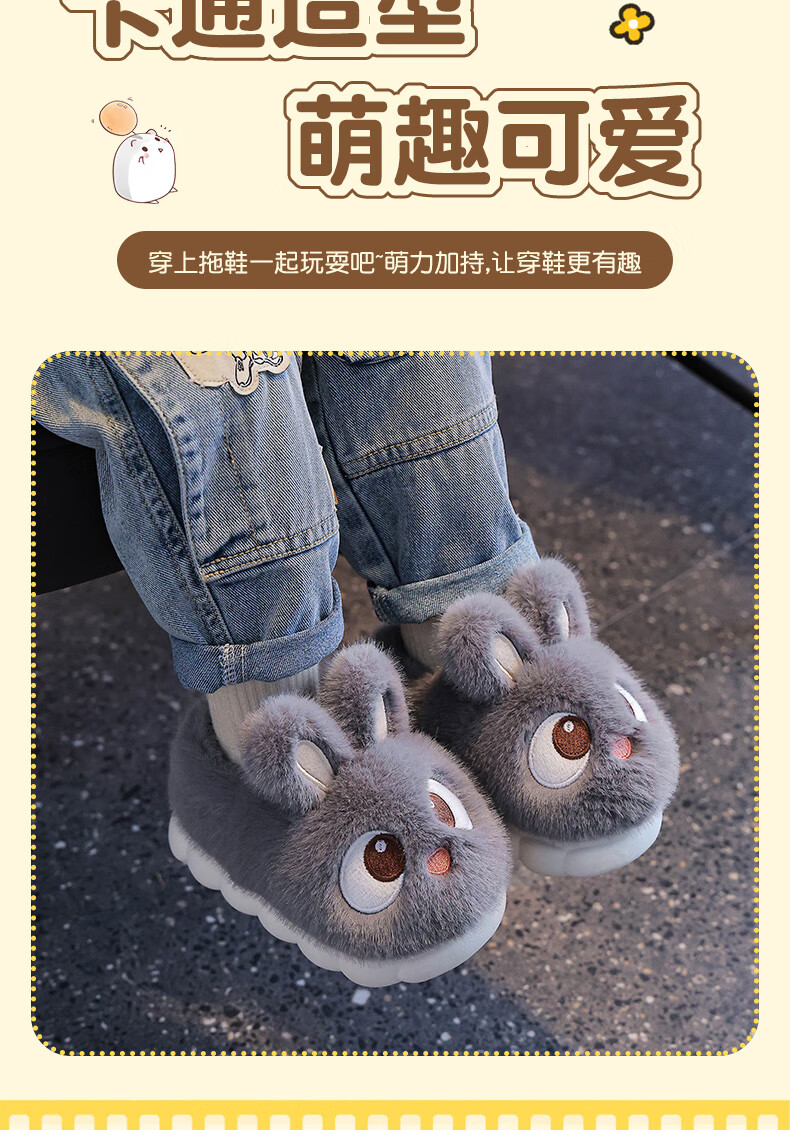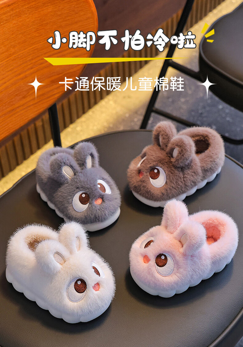 Children's cotton slippers for boys and girls in winter, indoor home non-slip thermal bag with plush cotton shoes for children, dark brown slippers 12 24/25 size (shoe length 15CM suitable for feet 14