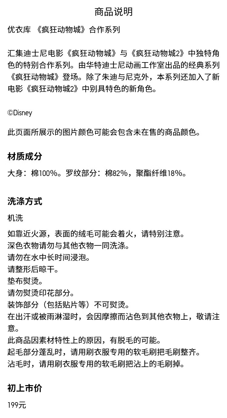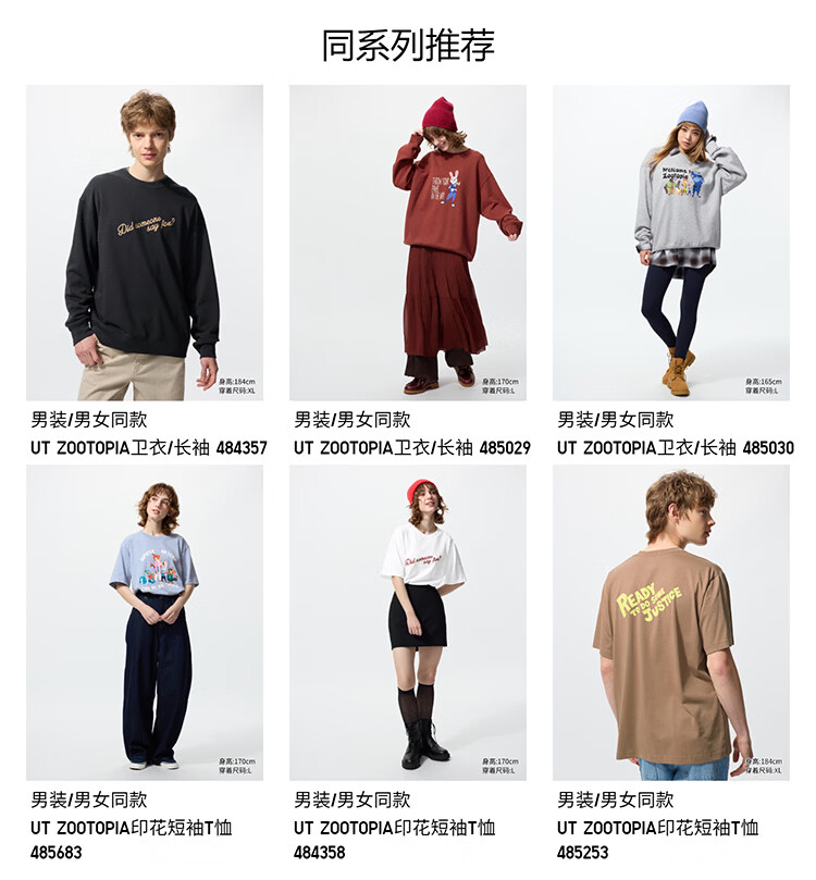UNIQLO Men's and Women's UT ZOOTOPIA sweatshirt/long-sleeved sweatshirt Zootopia 485031 67 Ocean Blue XL