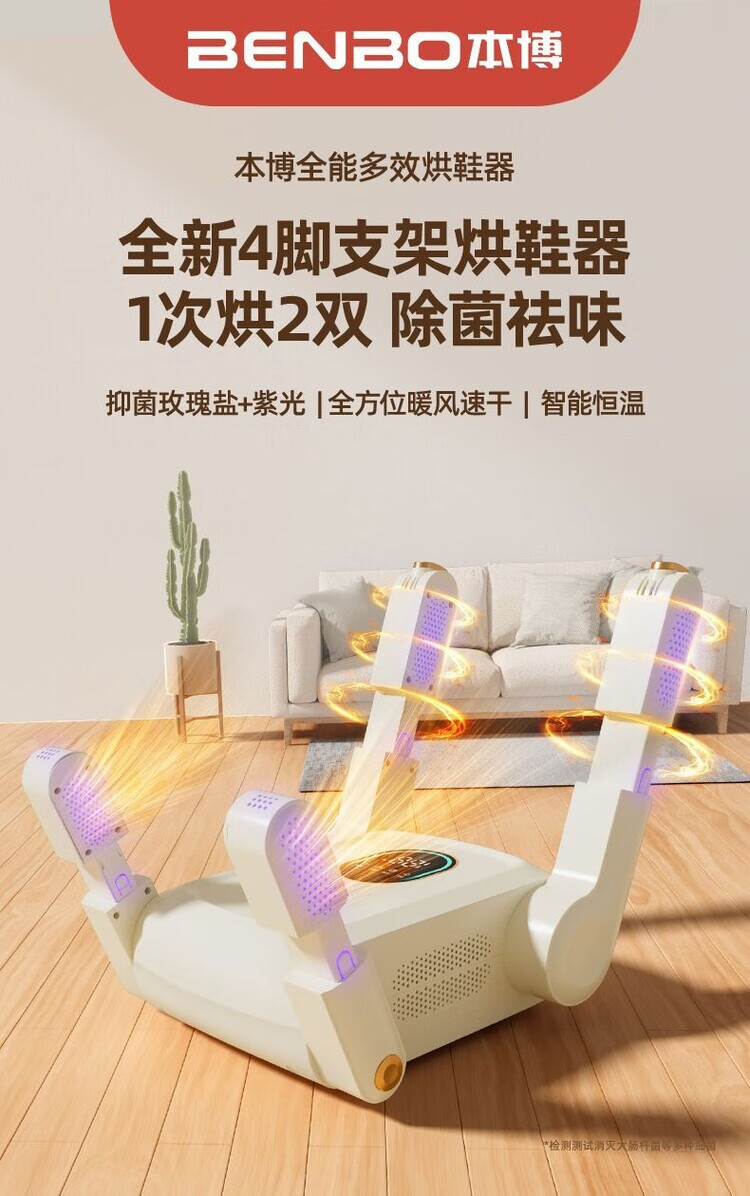 BENBO shoe dryer, professional deodorizing and sterilizing dryer, household shoe drying and shoe warming device, advanced four-legged whitening device, drying two pairs at a time/360-degree warm air speed drying