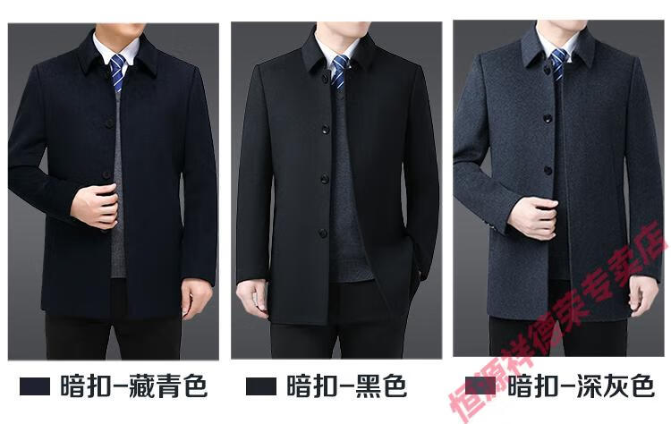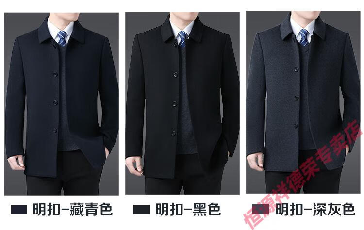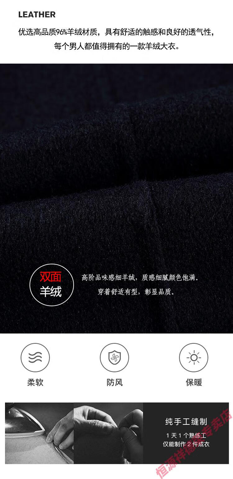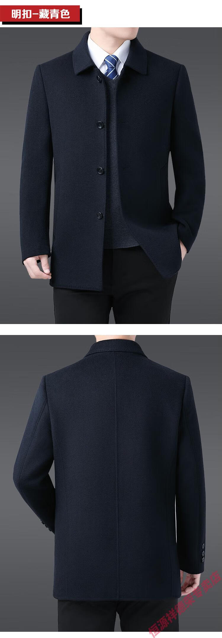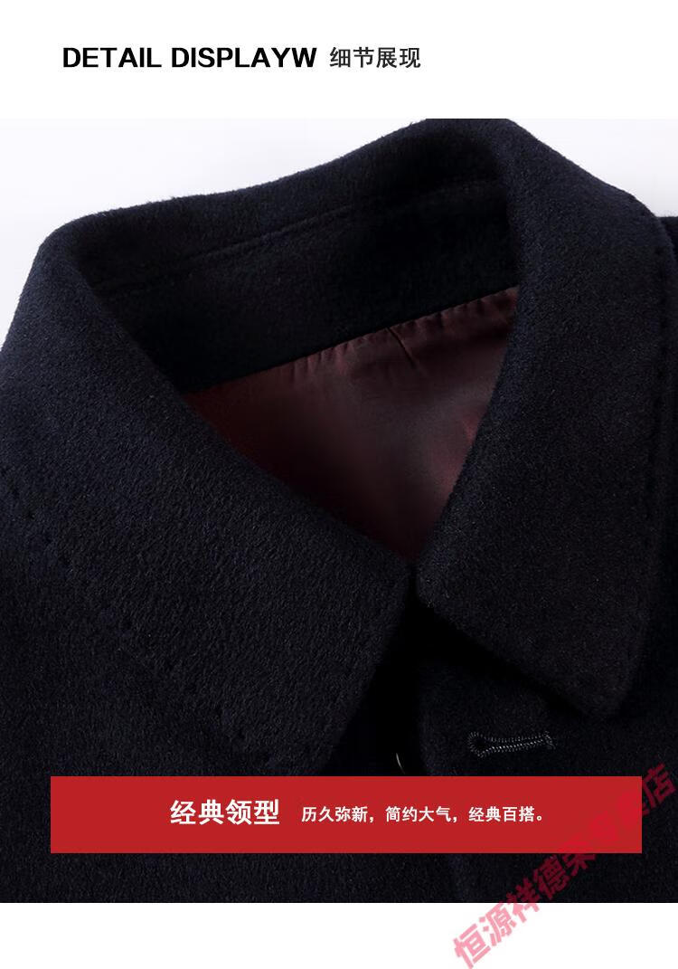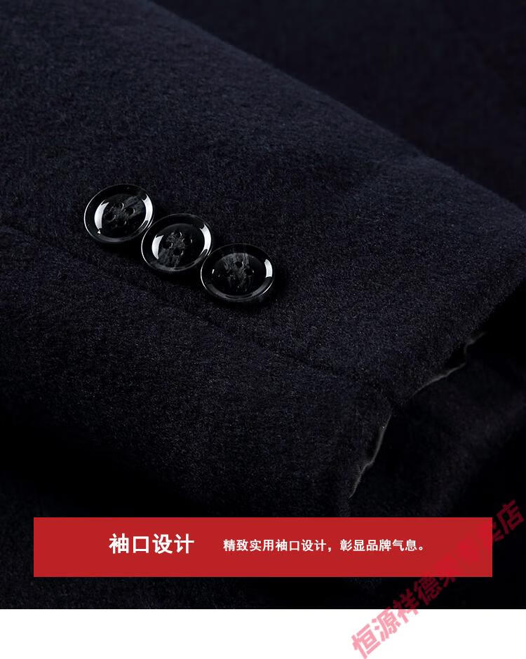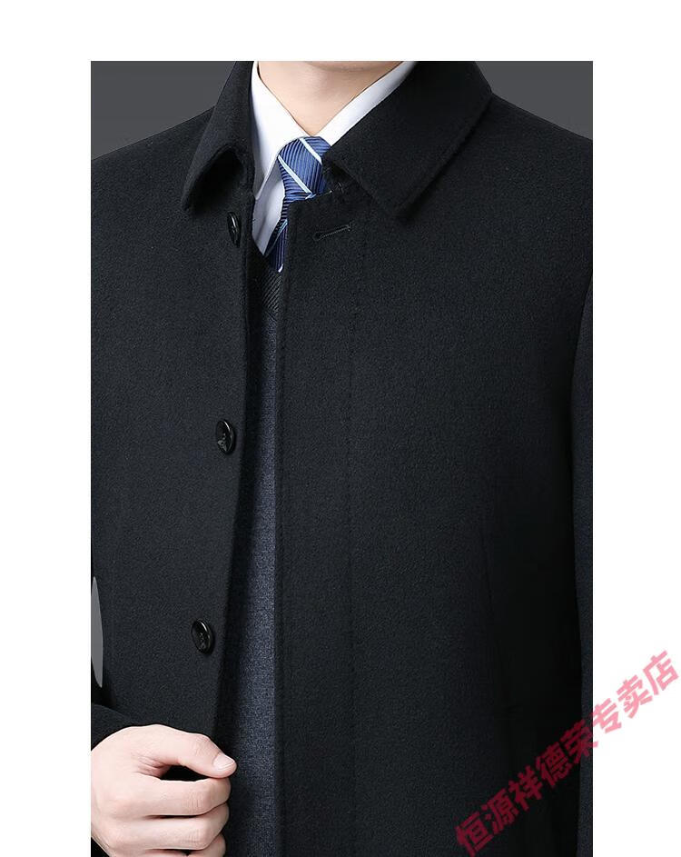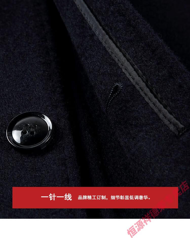 Hengyuanxiang high-end double-sided cashmere coat men's mid-length winter thickened detachable liner dad's woolen coat Navy blue-/exposed buckle/2XL 185 (counter)
