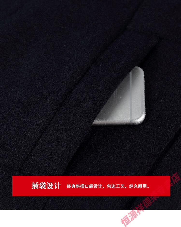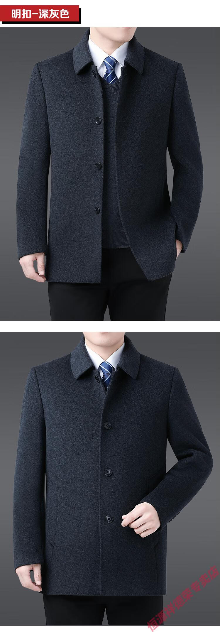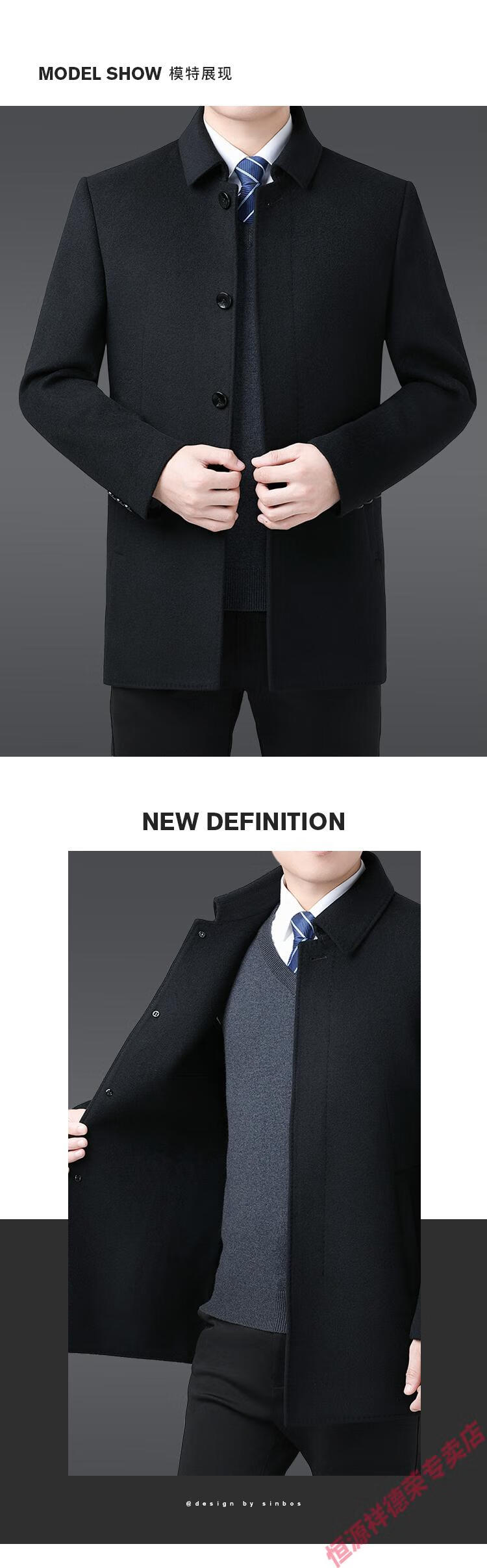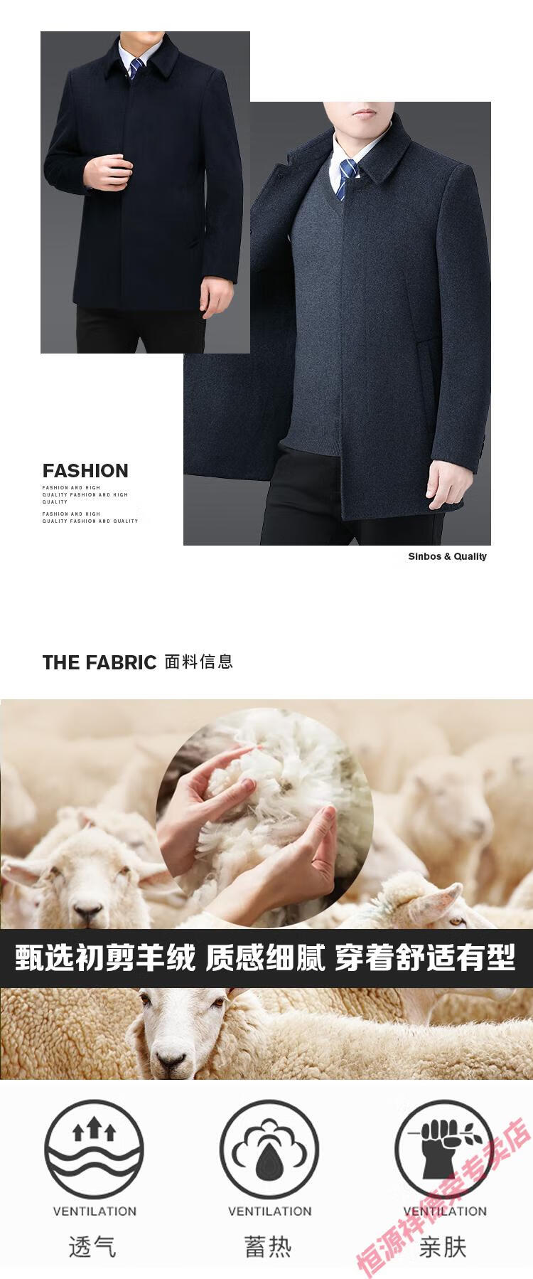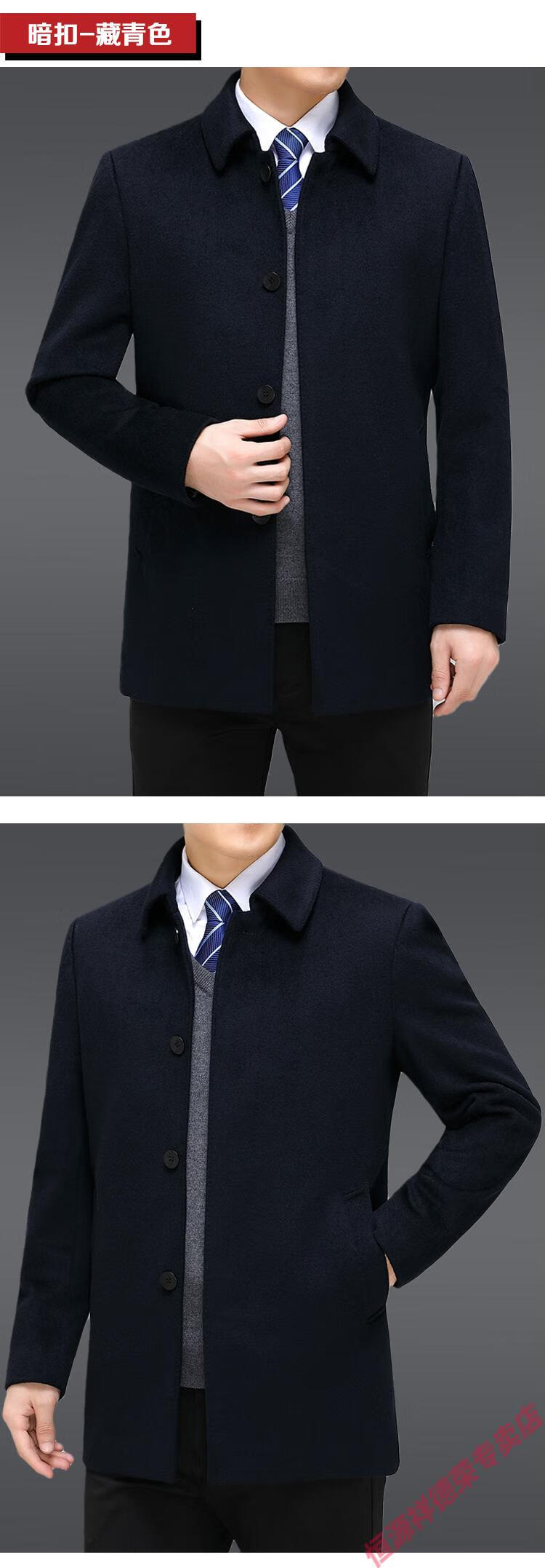 Hengyuanxiang high-end double-sided cashmere coat men's mid-length winter thickened detachable liner dad's woolen coat Navy blue-/exposed buckle/2XL 185 (counter)
