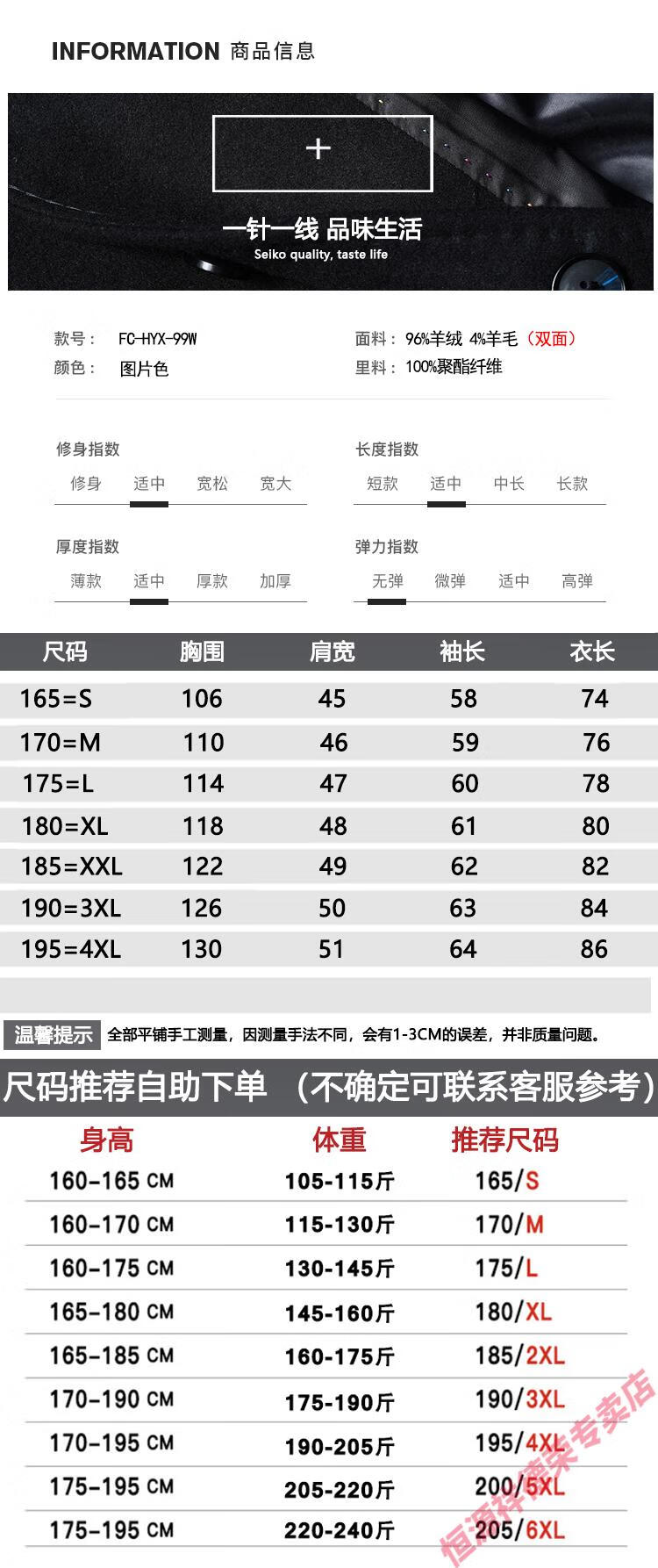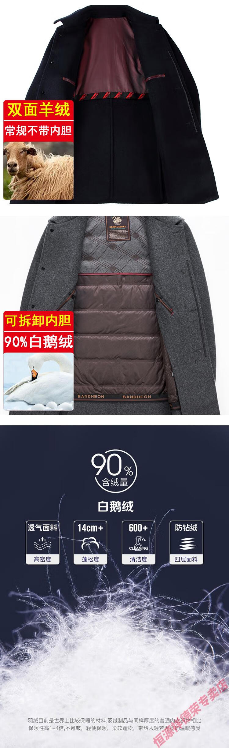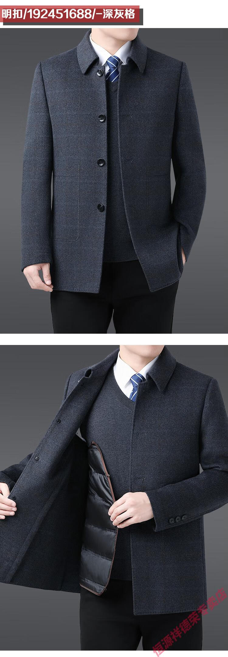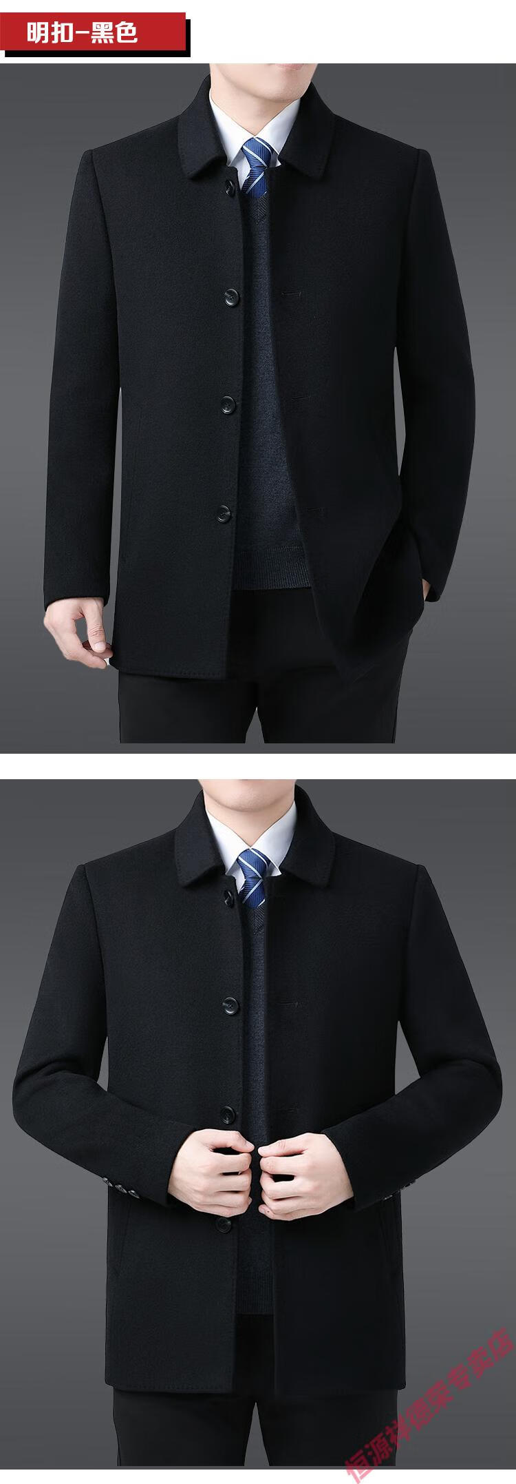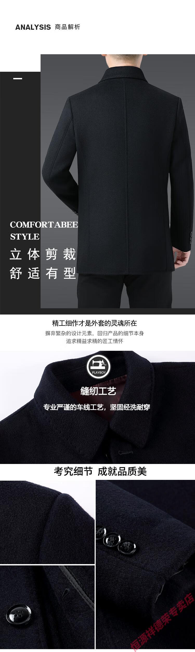 Hengyuanxiang high-end double-sided cashmere coat men's mid-length winter thickened detachable liner dad's woolen coat Navy blue-/exposed buckle/2XL 185 (counter)