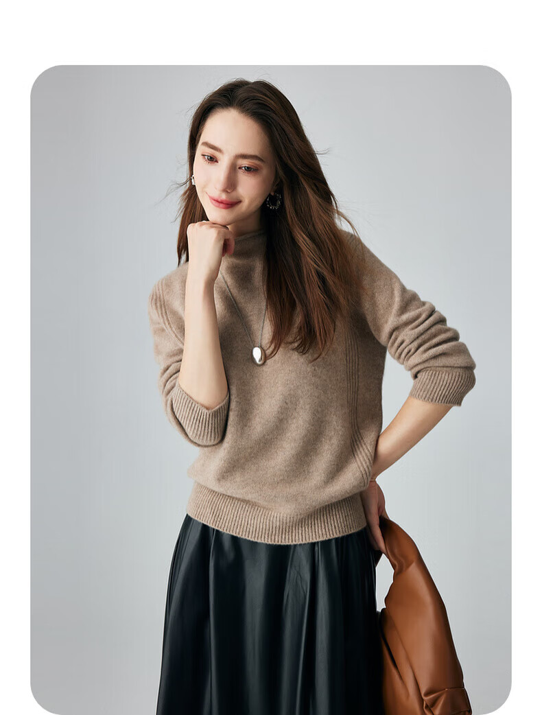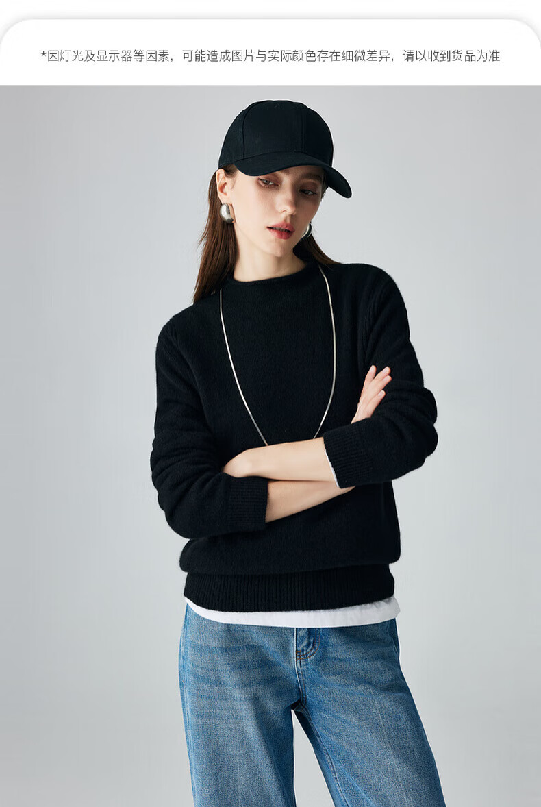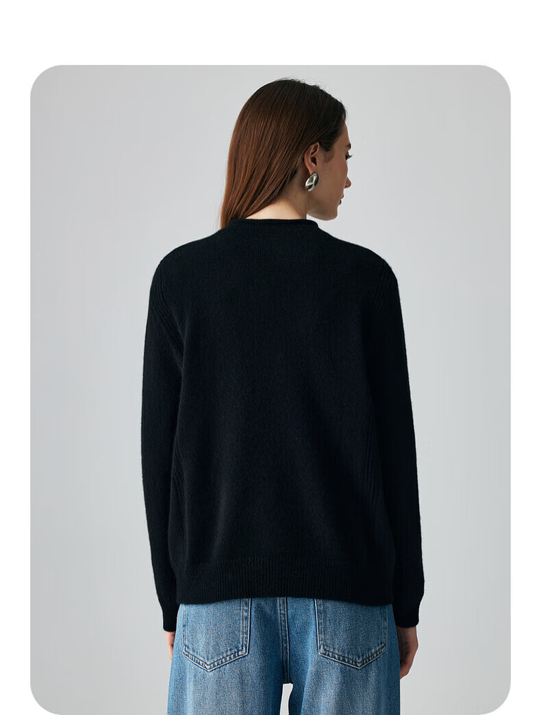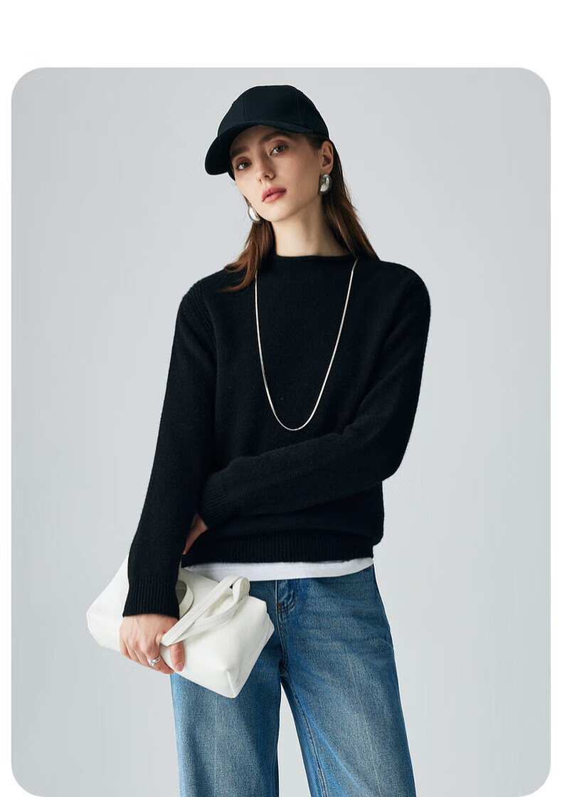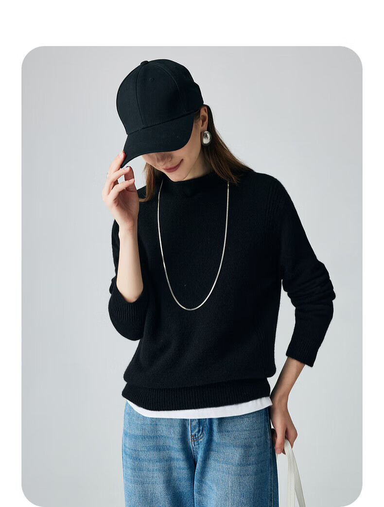 PALUOPO retro half turtleneck women's solid color cashmere sweater autumn and winter new casual knitted warm sweater ET2F8336 black XL 170/110