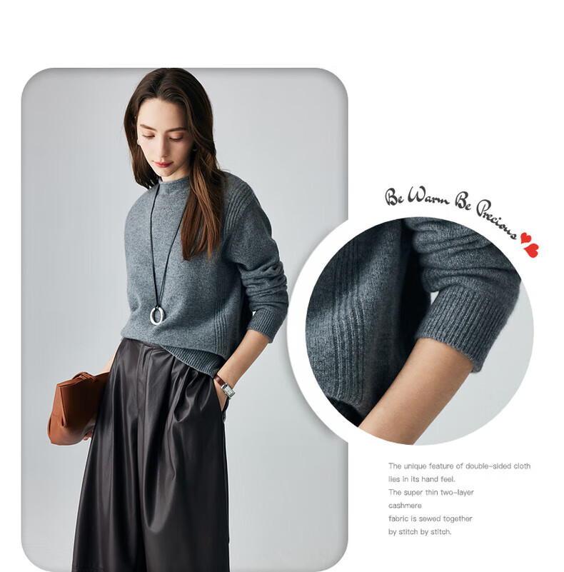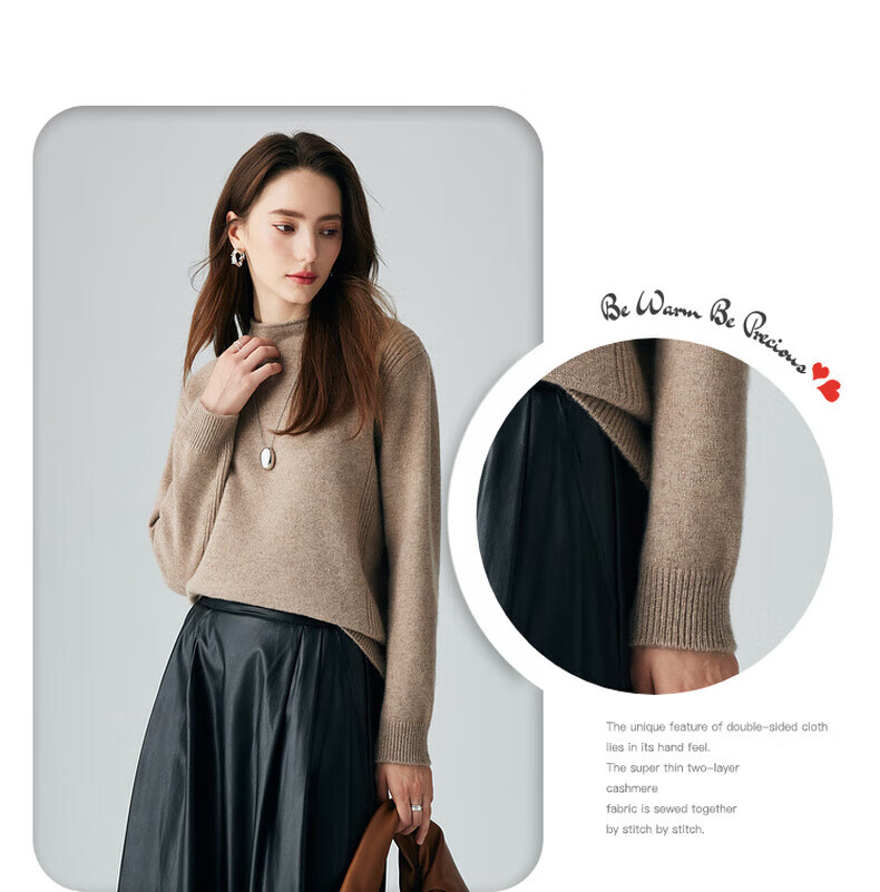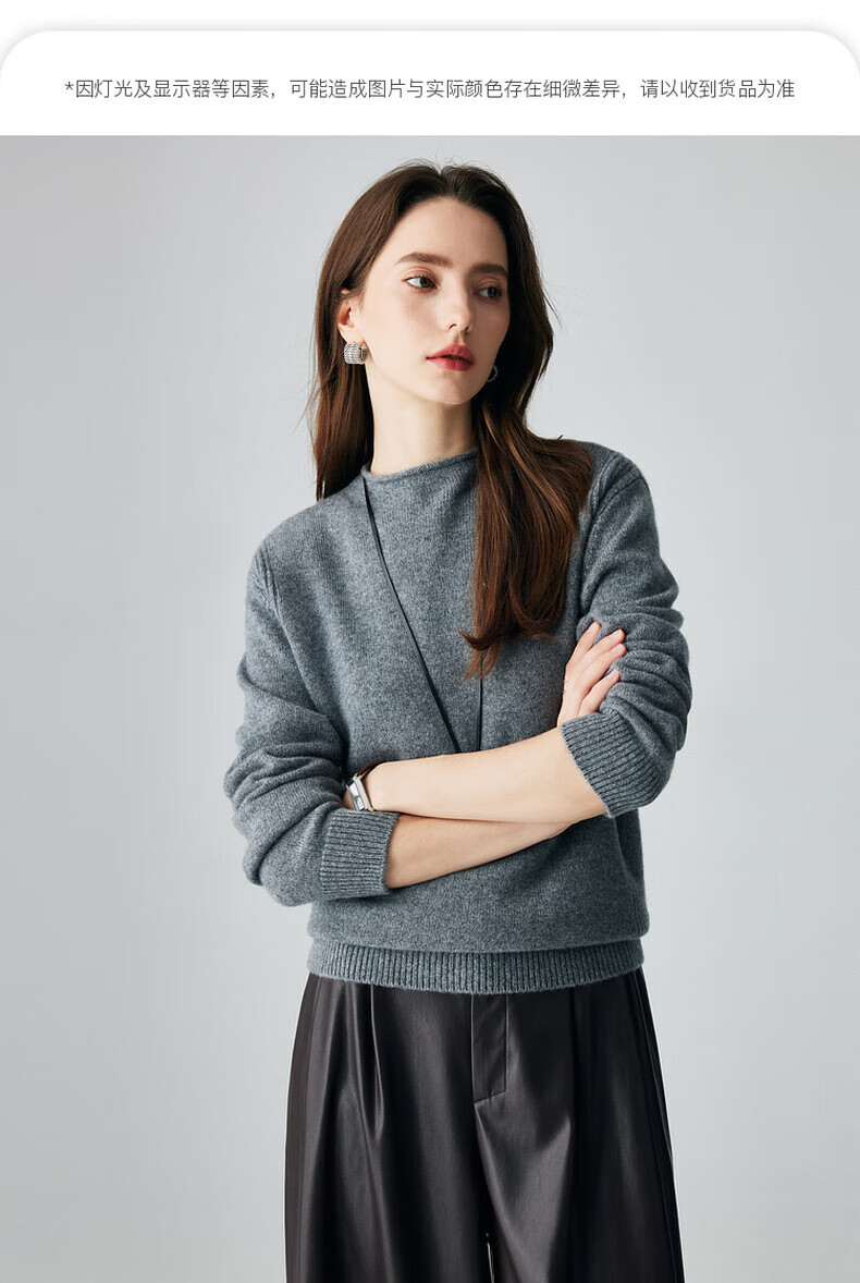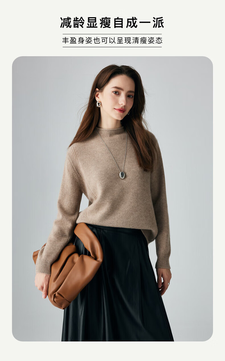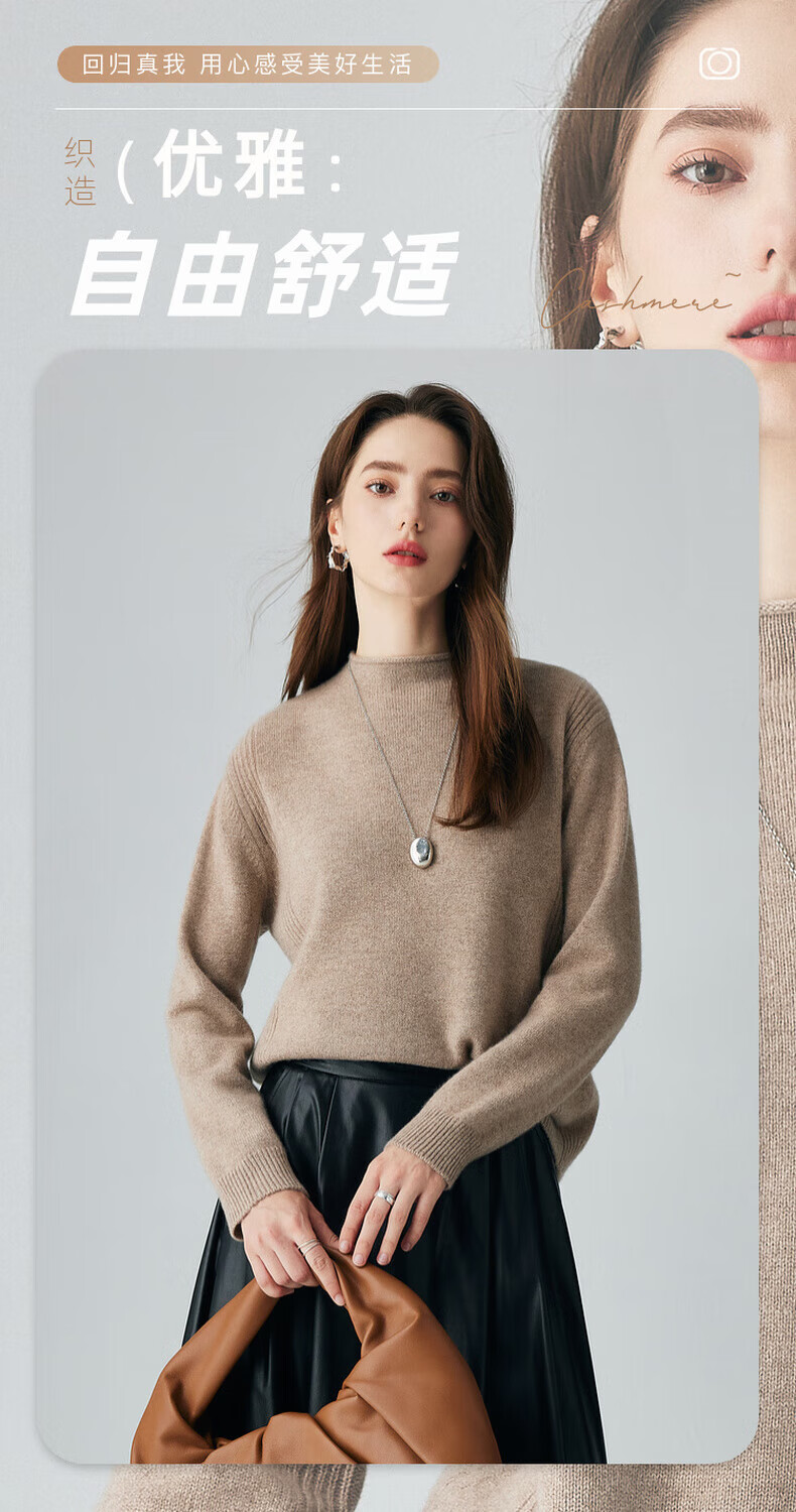 PALUOPO retro half turtleneck women's solid color cashmere sweater autumn and winter new casual knitted warm sweater ET2F8336 black XL 170/110