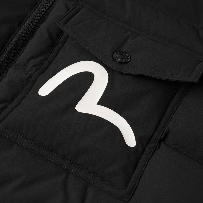 EVISU Fushen 2025 Autumn Seagull and Slogan Hooded Printed Down Jacket Men's Black S