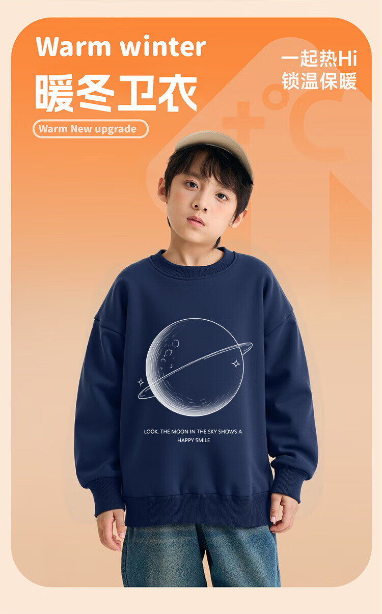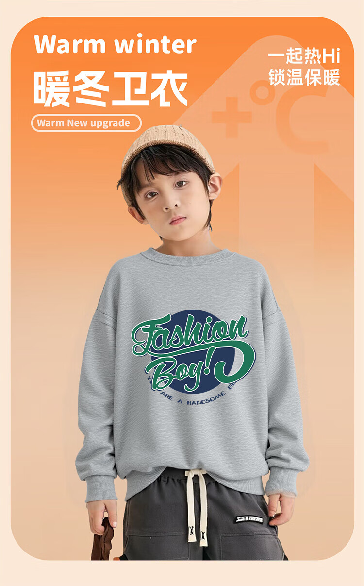 Piggy Banner (PEPCO) boys' sweatshirt winter new trendy cool warm pullover children's velvet versatile round neck velvet warm two-piece 07 170 Recommended weight 100-115Jin Jin is equal to 0.5 kg