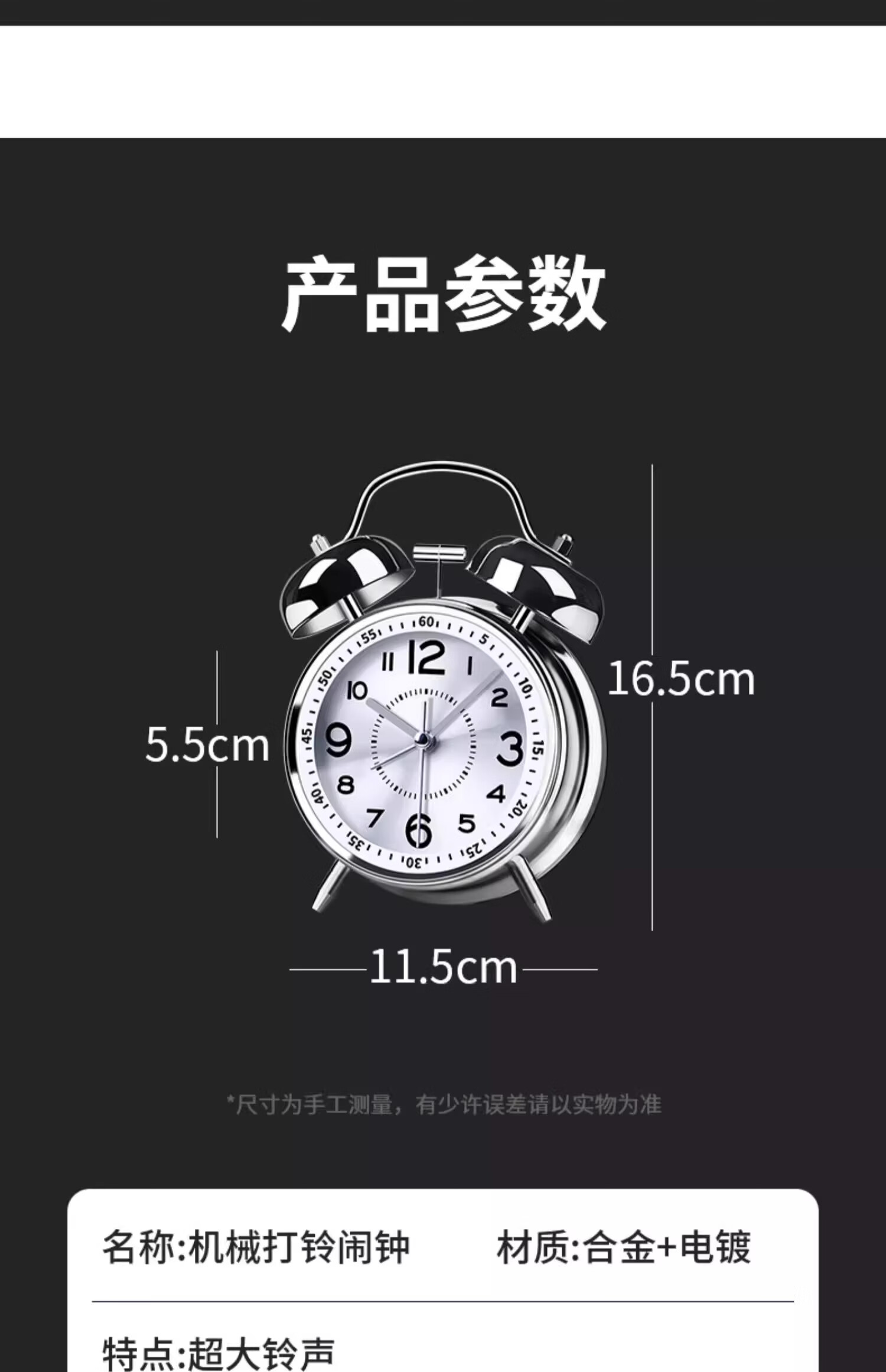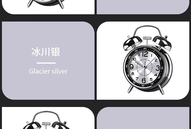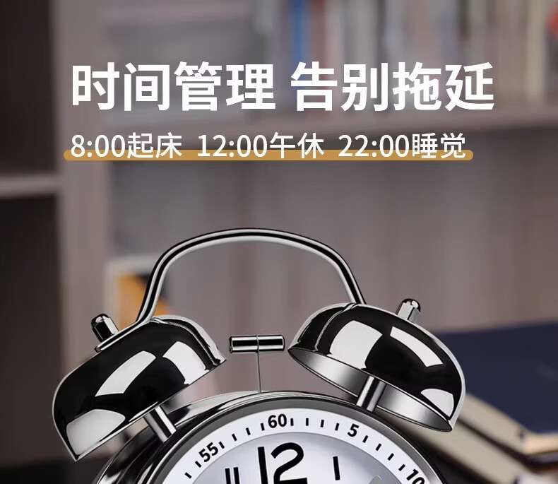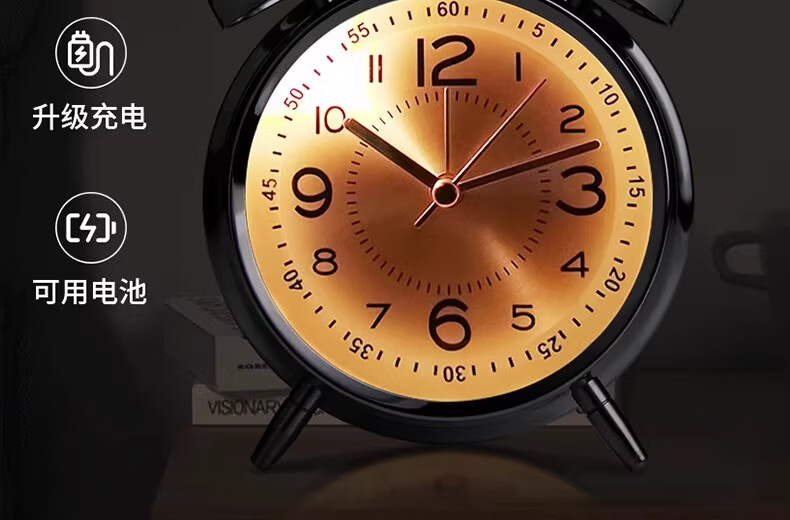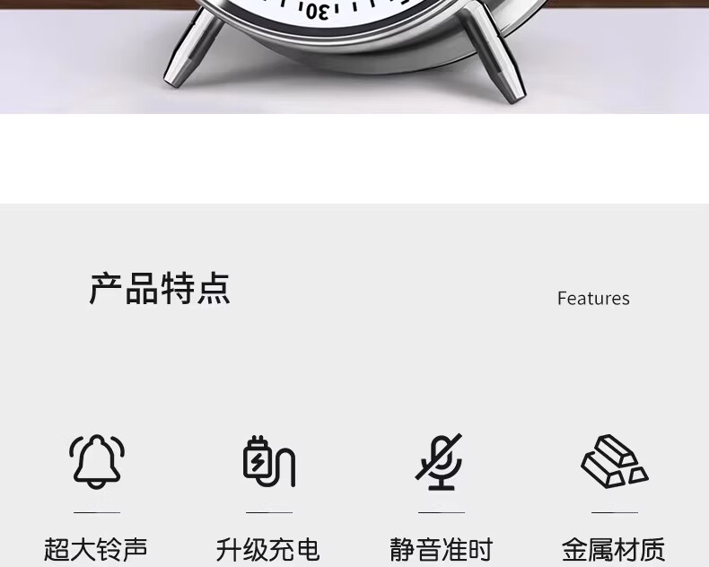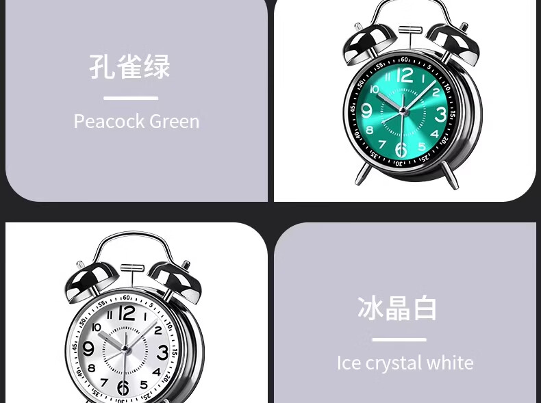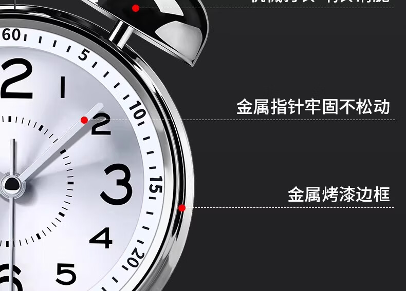 OLOEY alarm clock super loud 120 decibels high volume desktop metal ring clock for boys and girls dormitories of junior high school students, upgraded charging, luminous ice crystal white + free USB charging cable, super loud ringtone 120 decibels