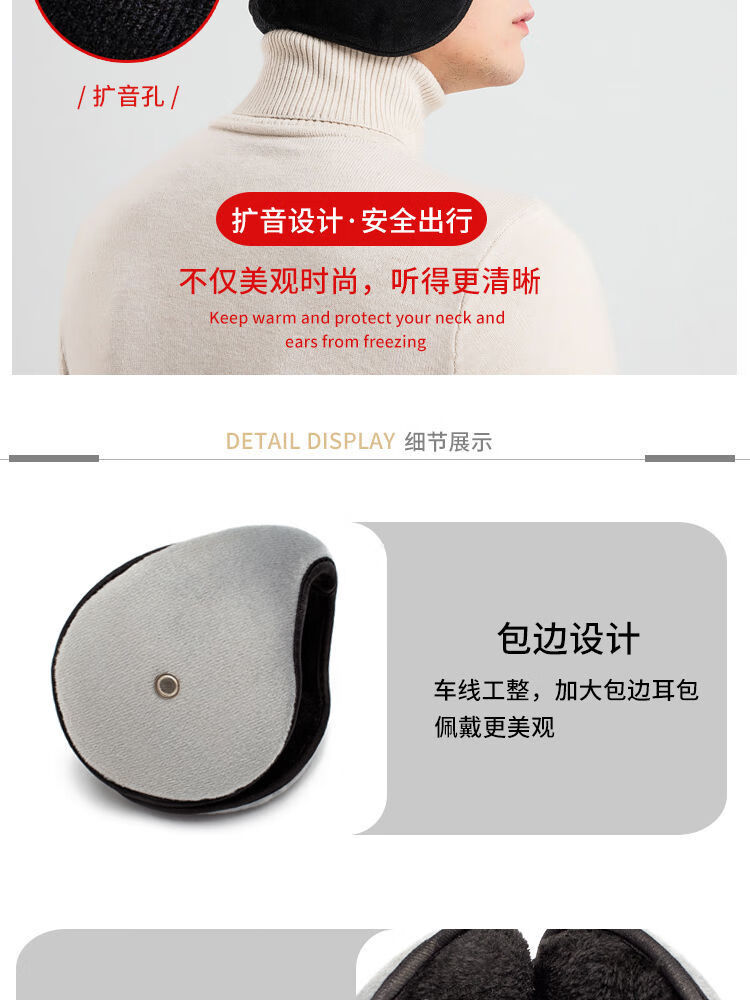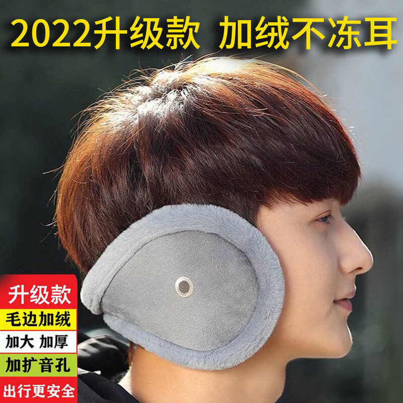 Winter earmuffs, men's outdoor riding windproof earmuffs, women's ear protection artifact, warm ear bags, winter ear warm ear bags, rough edge enlarged and thickened version - gray 1 pack