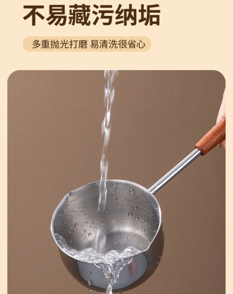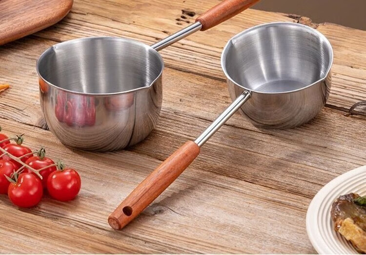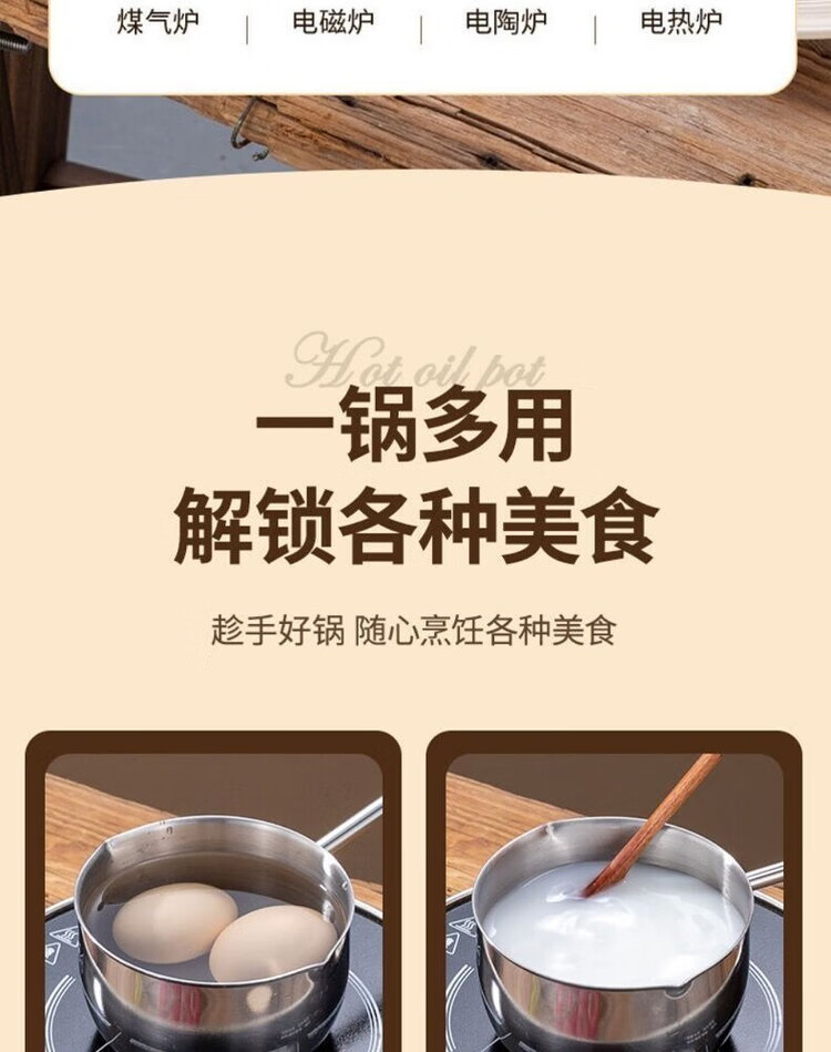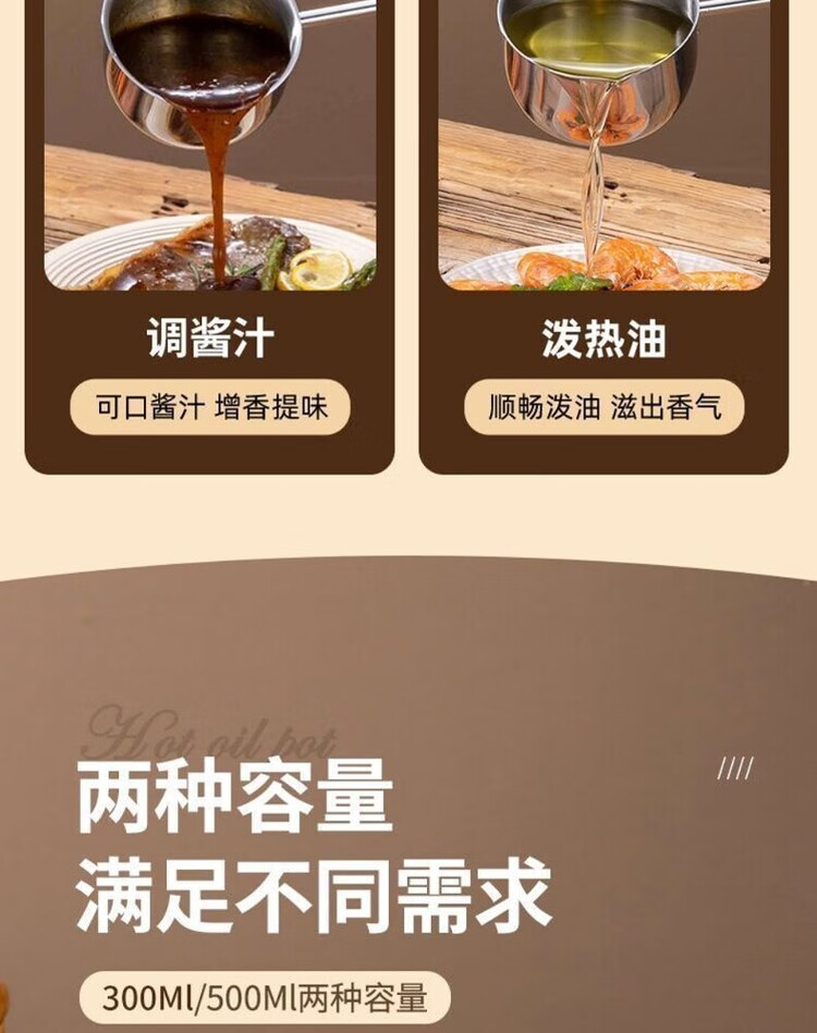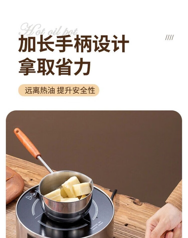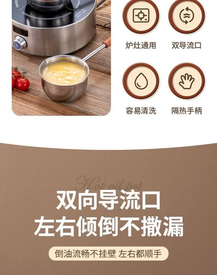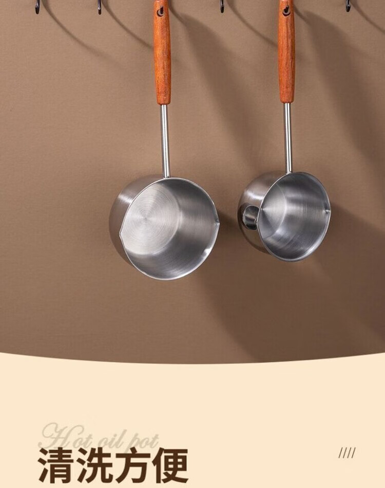 Yukajue thickened small pot for pouring hot oil, thickened mini oil-splashing spoon, long handle for hot oil, extended version of mini small pot for burning oil, German stainless steel, special price, 1 inch thickened small pot for burning oil, titanium silver appearance, 310ML