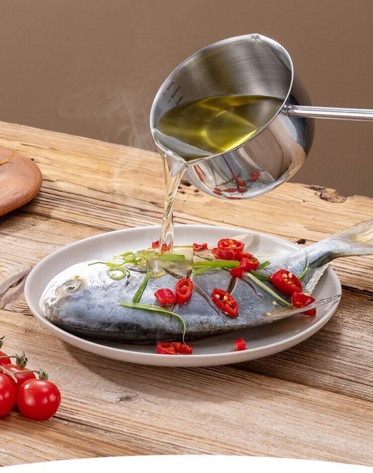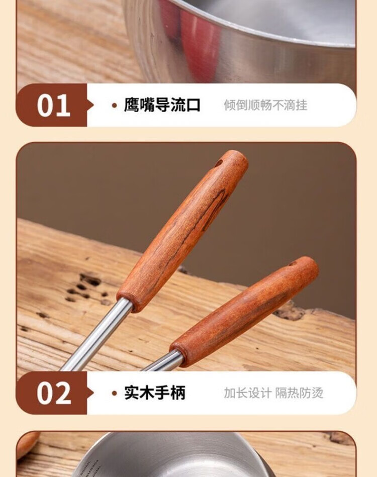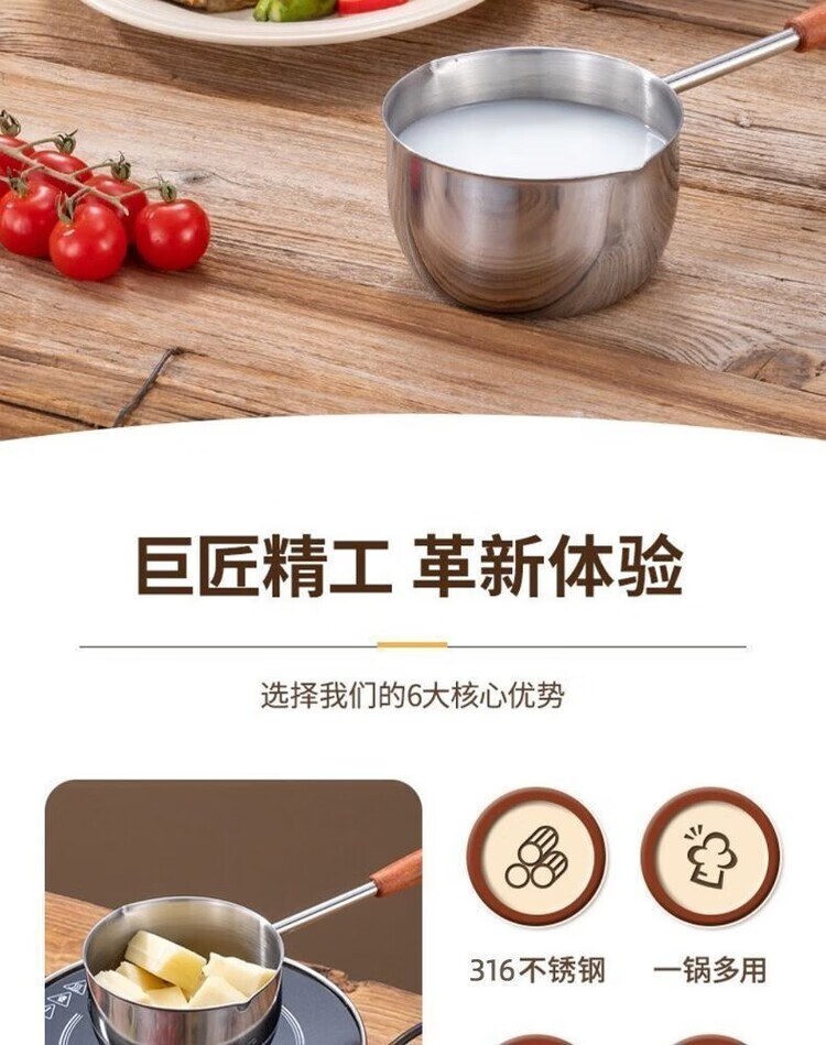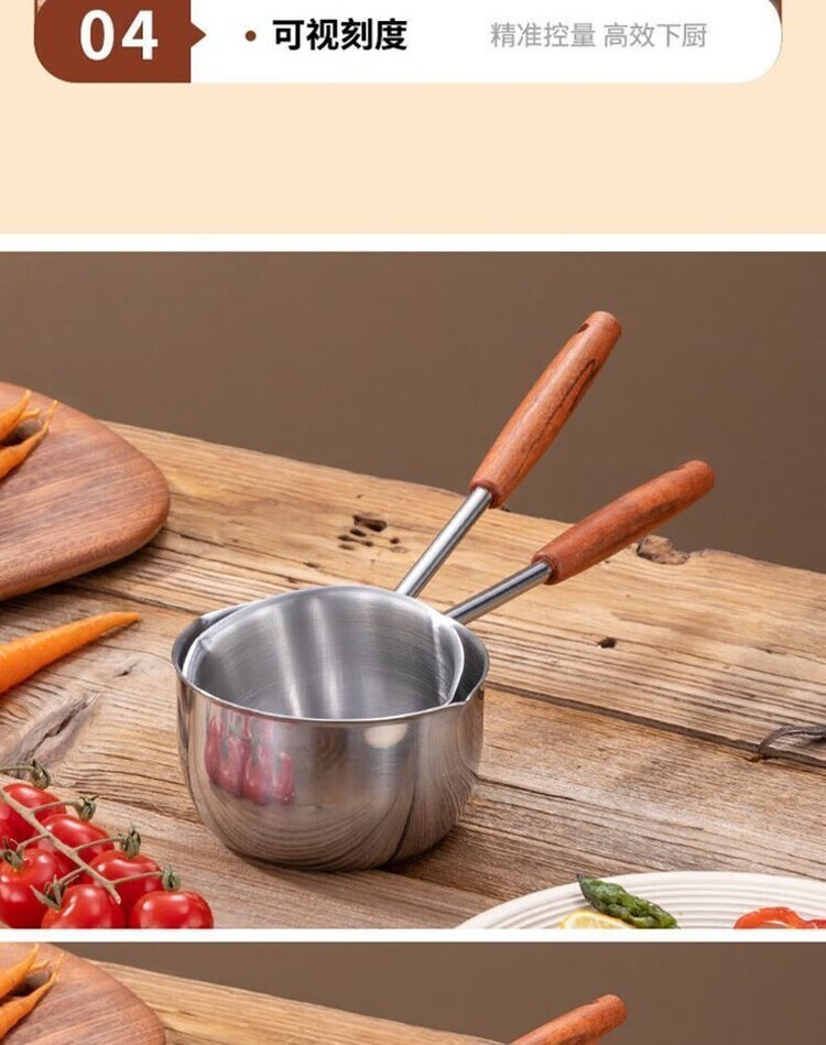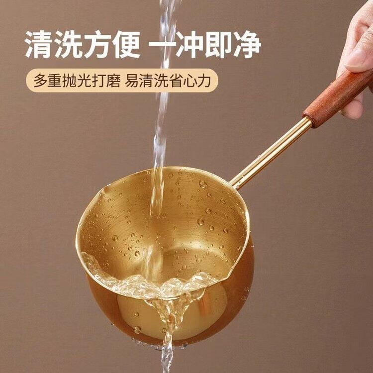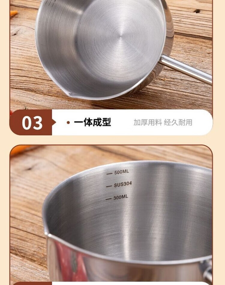 Yukajue thickened small pot for pouring hot oil, thickened mini oil-splashing spoon, long handle for hot oil, extended version of mini small pot for burning oil, German stainless steel, special price, 1 inch thickened small pot for burning oil, titanium silver appearance, 310ML
