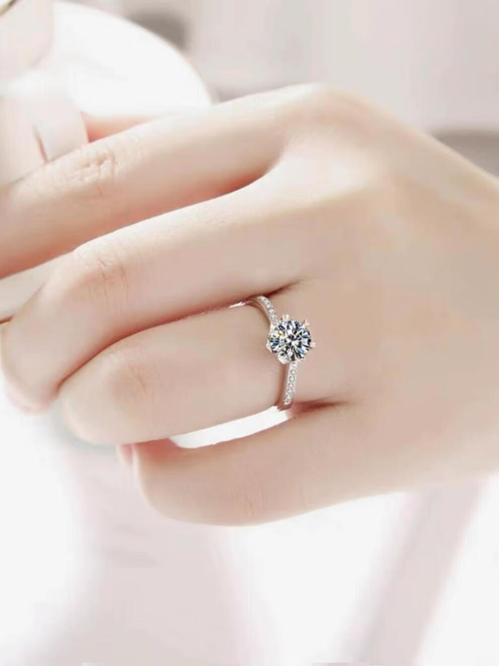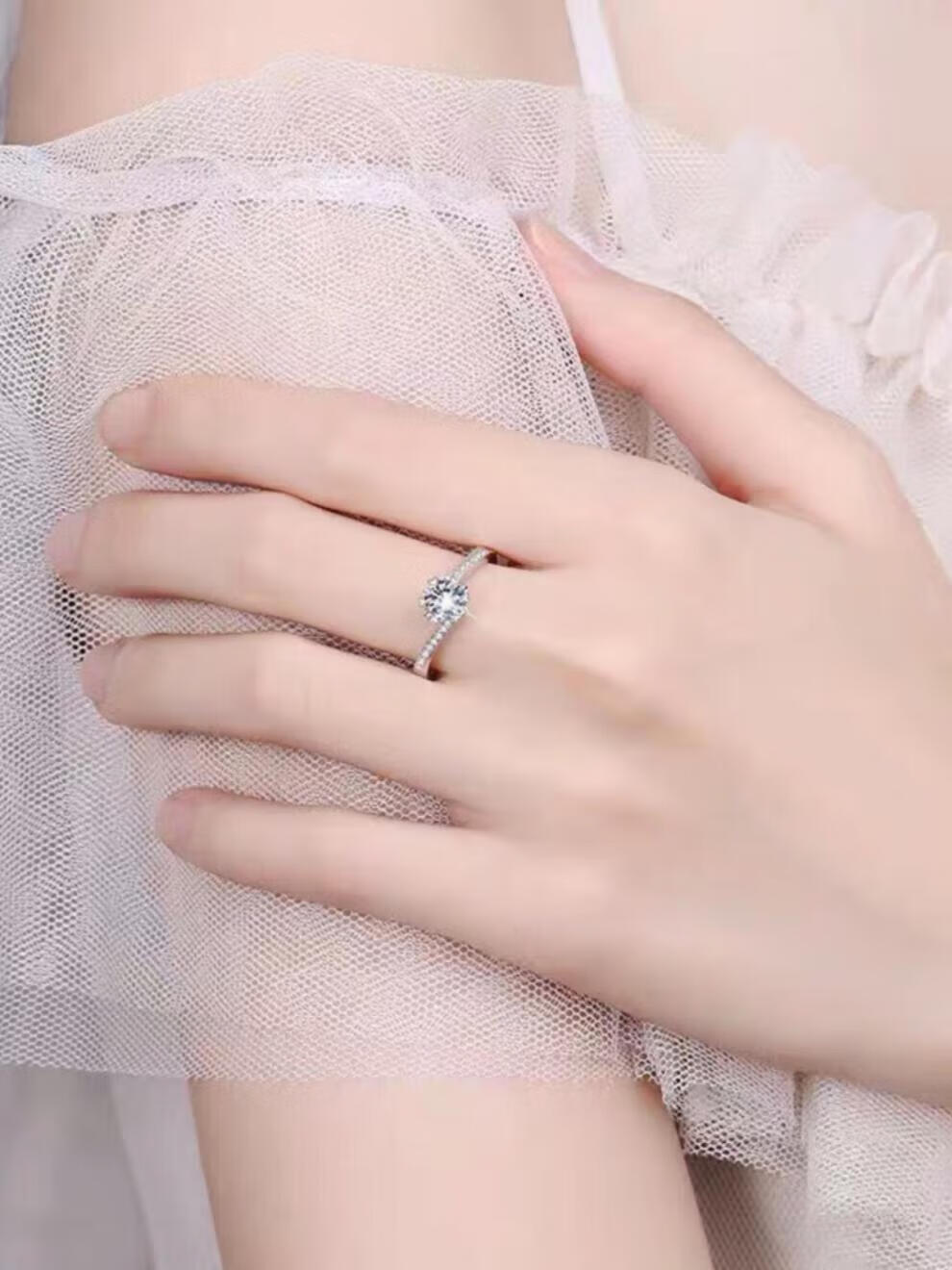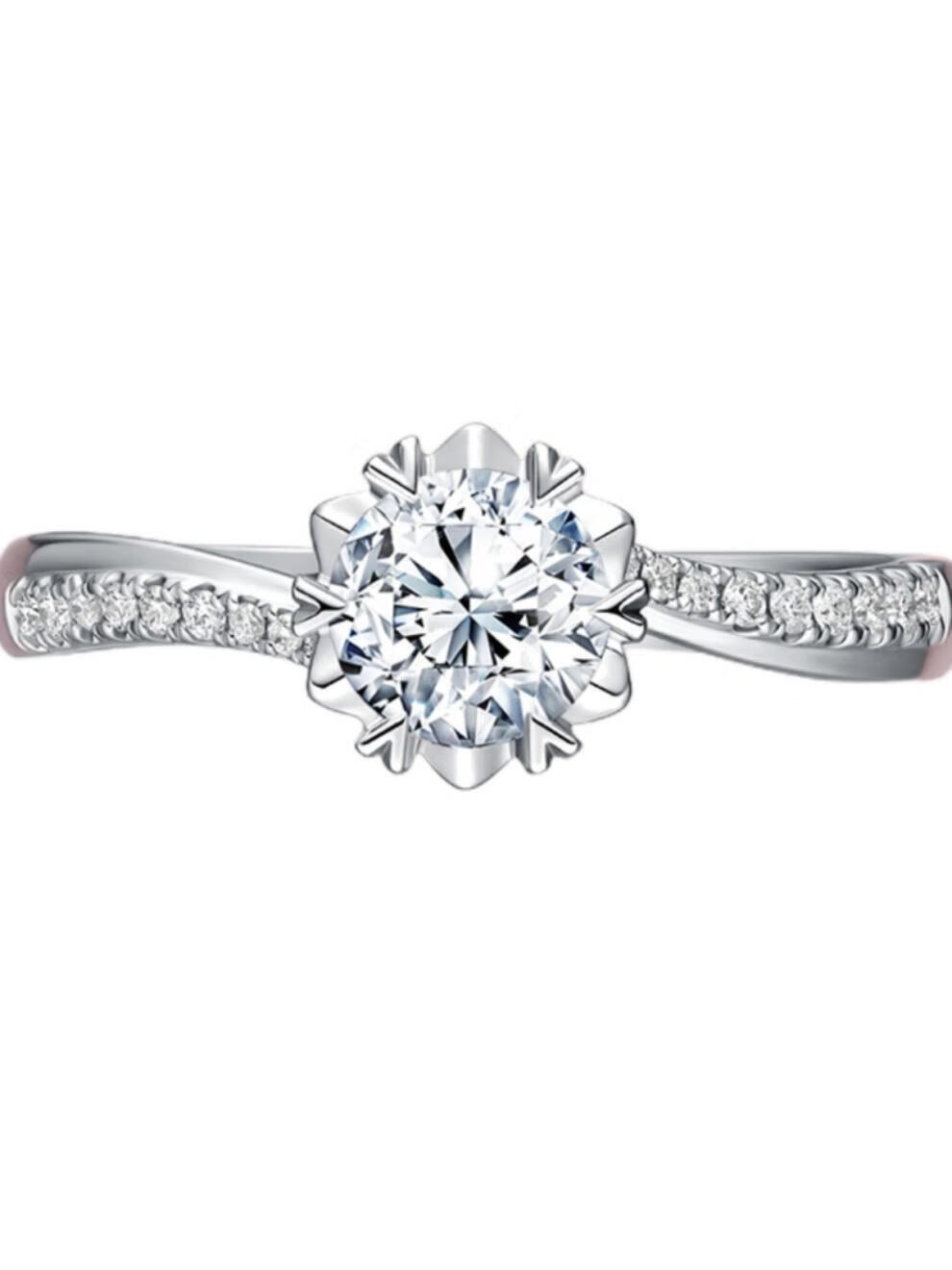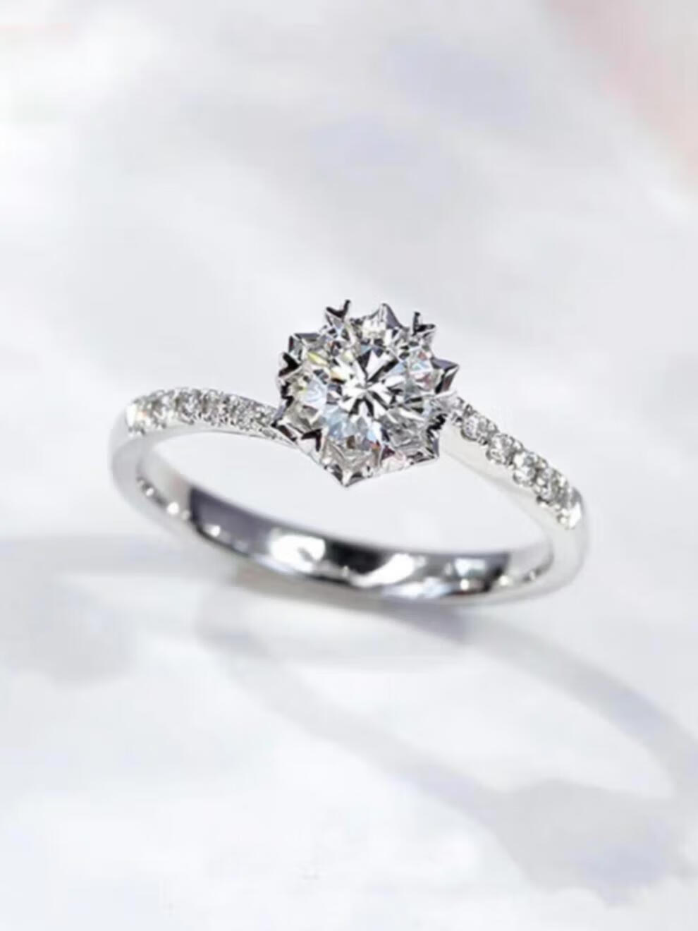 DR twisted arm diamond ring for women PT950 platinum snowflake slightly twisted group inlaid with one carat moissanite diamond for proposal, wedding, Valentine's Day gift, 50 points live mouth