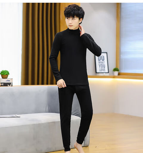 Hongdou Official Store Teenager's Thermal Underwear 12 Thermal Underwear 13 Autumn Clothes and Autumn Pants Teenagers' Velvet Suit 15 Winter Boys Nesque Black (Top + Pants) M 165 (75-95 Jin Jin is equal to 0.5 kg)