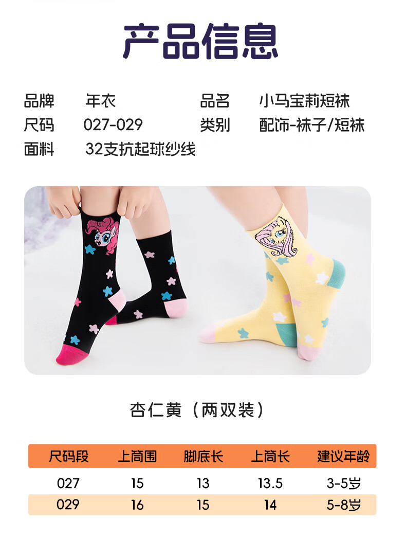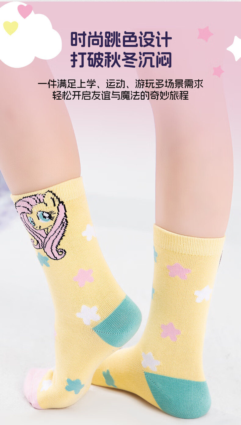 New Year's Clothes My Little Pony Socks My Little Pony Co-branded Children's Wear Socks Winter New Children's Warm Socks Almond Yellow (Combined Pack) One Size 27 (3-5 Years Old)