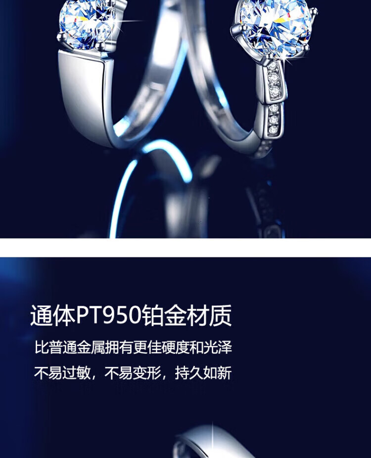 DRPT950 platinum ring for women, moissanite platinum wedding couple ring, birthday and Valentine's Day gift for girlfriend PT950 platinum couple ring default live