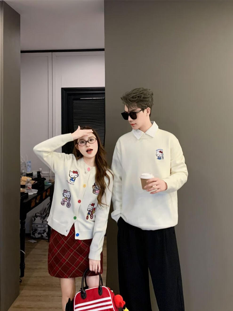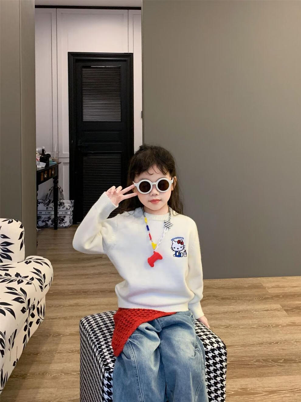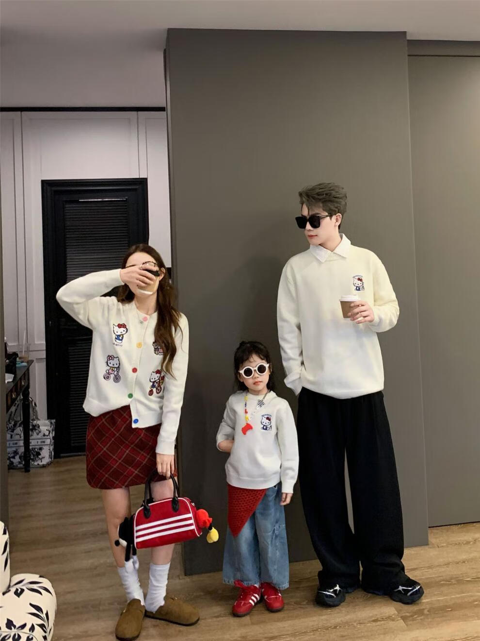G.duck parent-child clothing for a family of three or four 2025 baby parent-child clothing mother-daughter clothing autumn and winter sweater love embroidered sweater off-white 170 Mom M