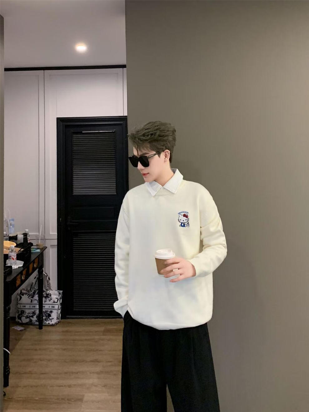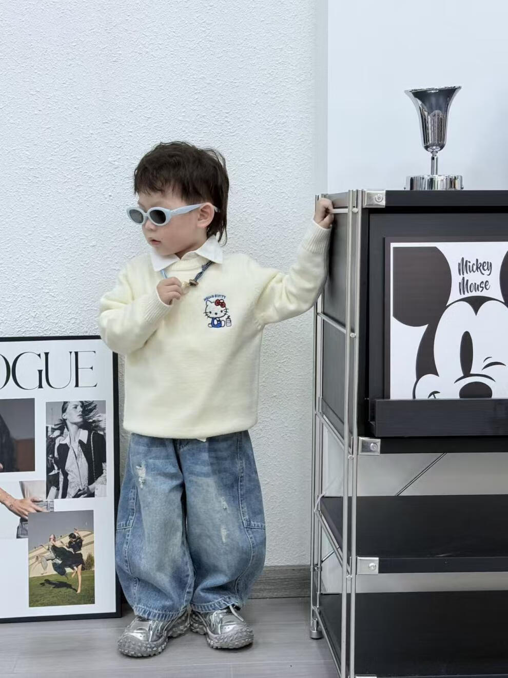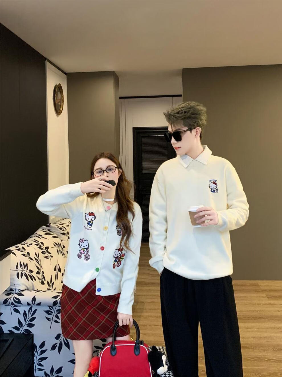 G.duck parent-child clothing for a family of three or four 2025 baby parent-child clothing mother-daughter clothing autumn and winter sweater love embroidered sweater off-white 170 Mom M