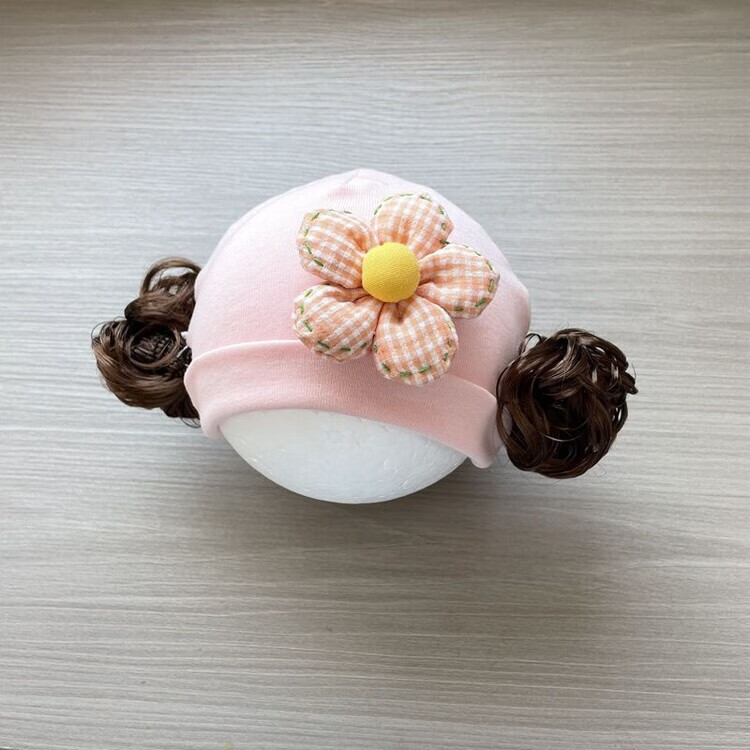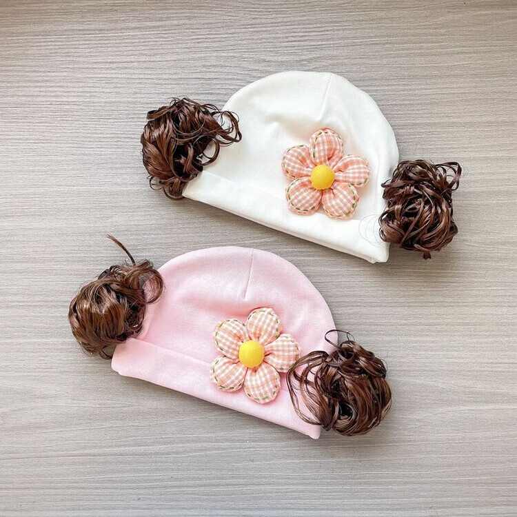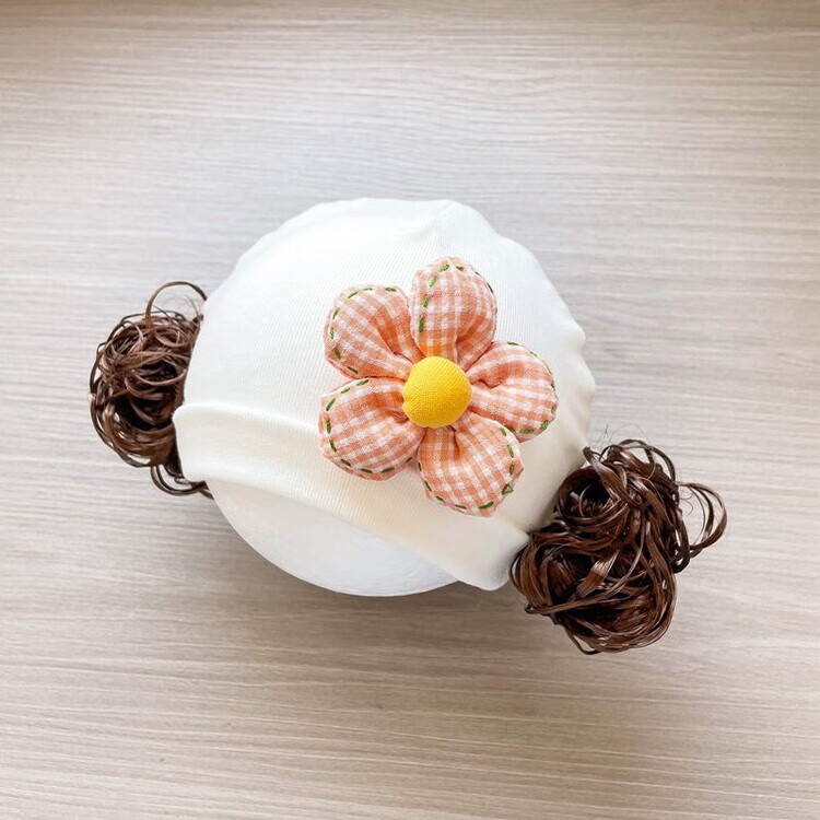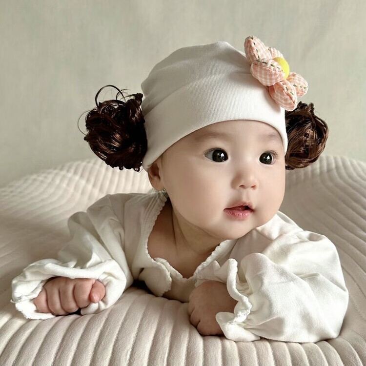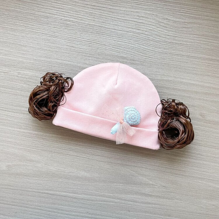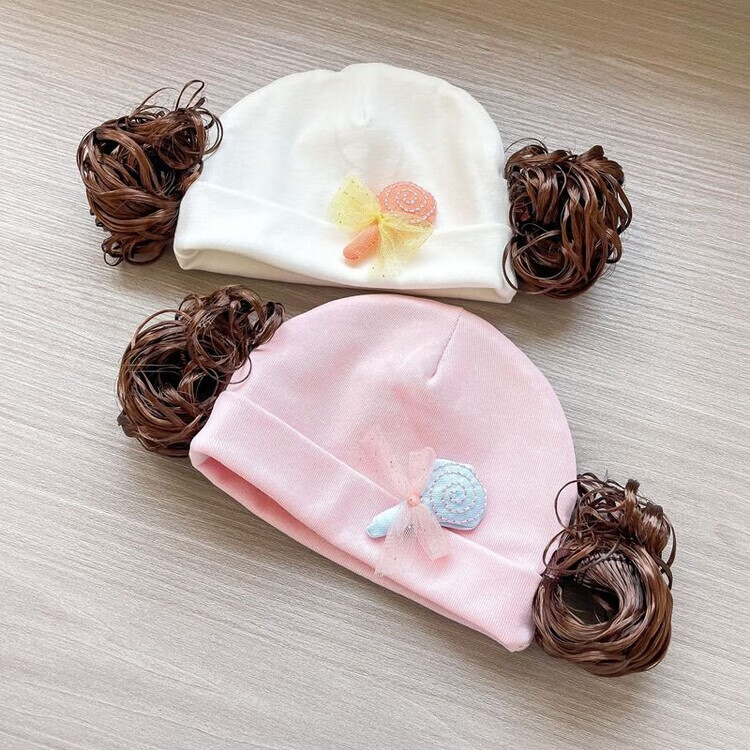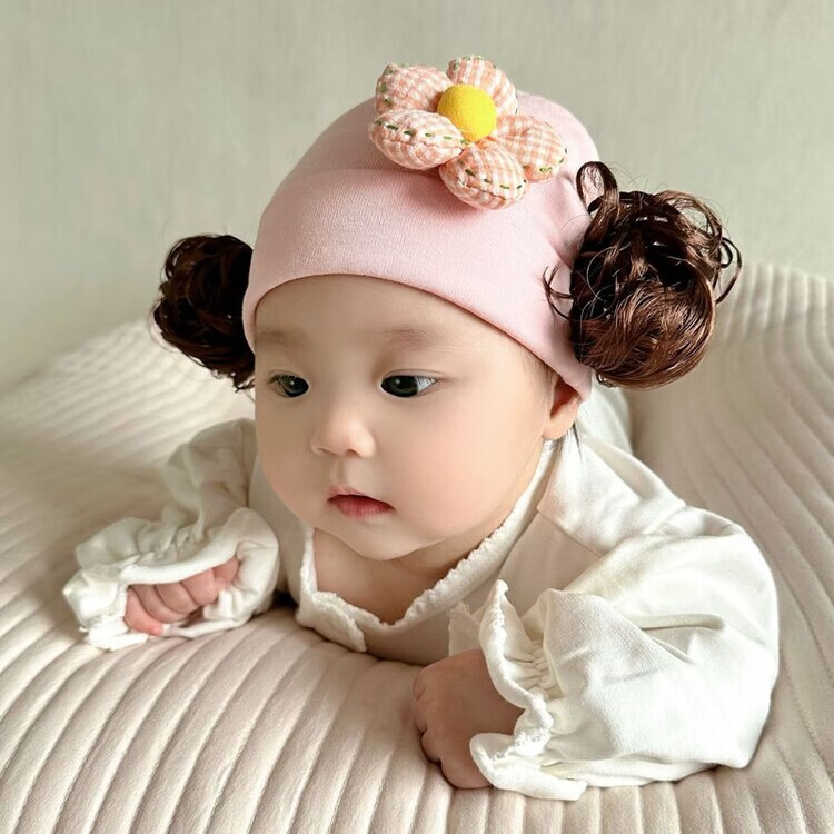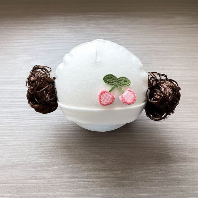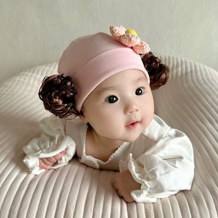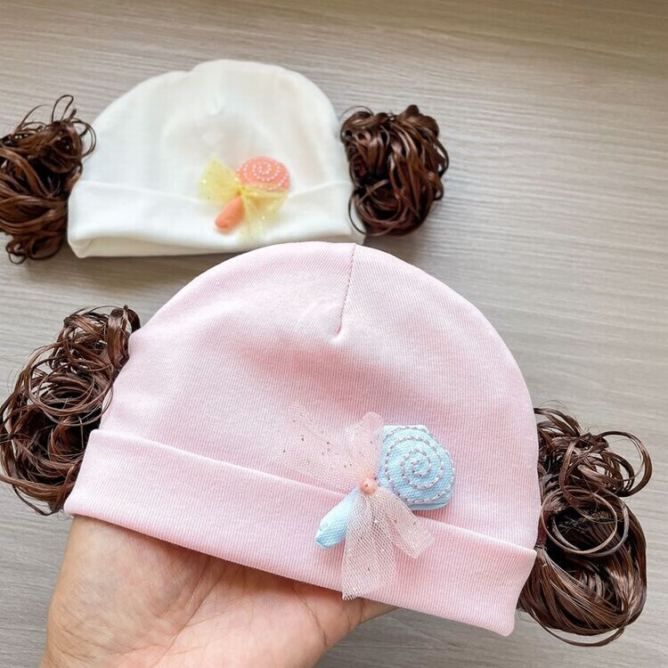 Baby girl hat spring and autumn pure cotton baby fetal cap cute super cute little month old hat playful wig hat new style big red pink wool thread cherry one size fits all 3-6 months pure cotton extra large elasticity does not tie the head