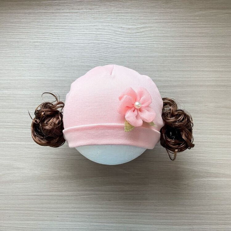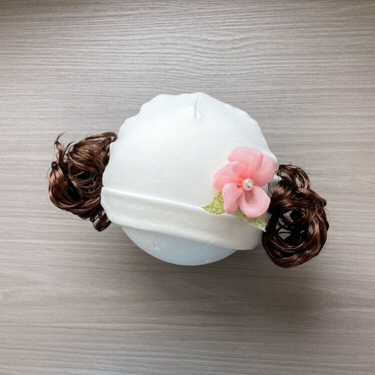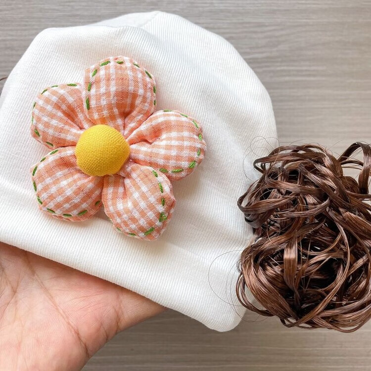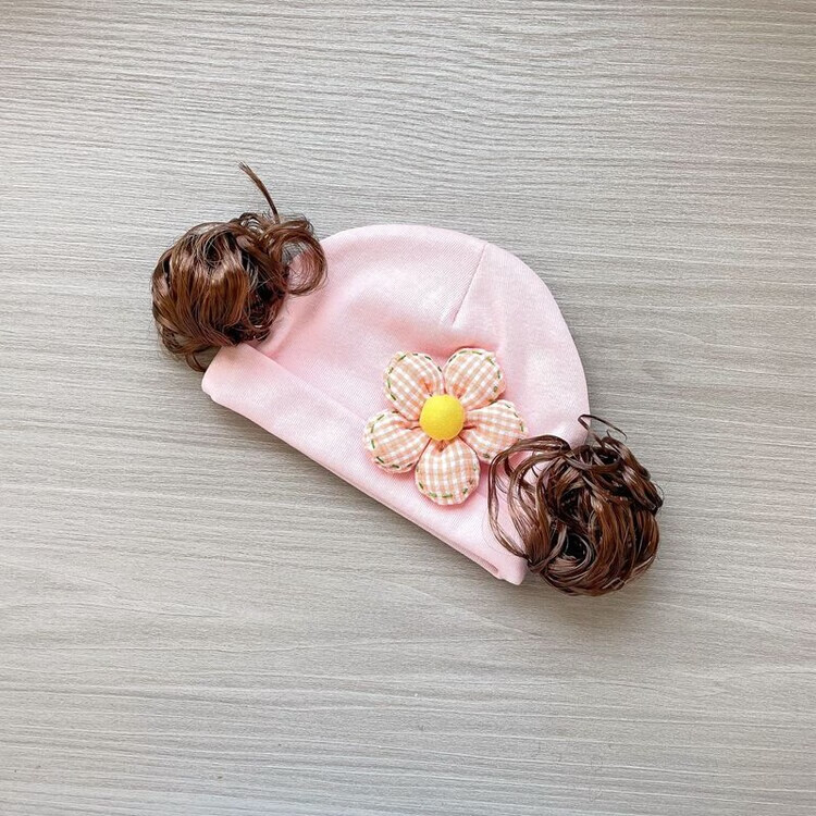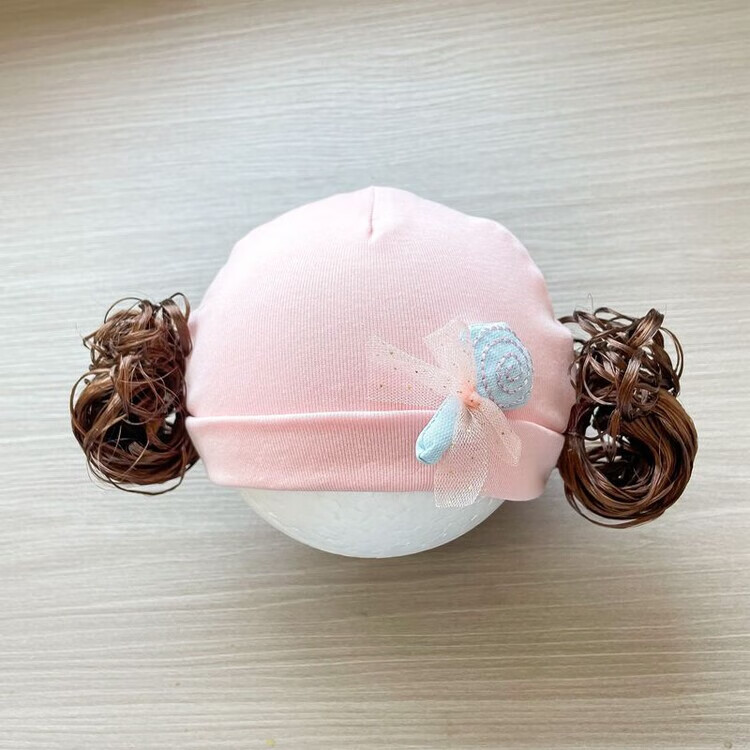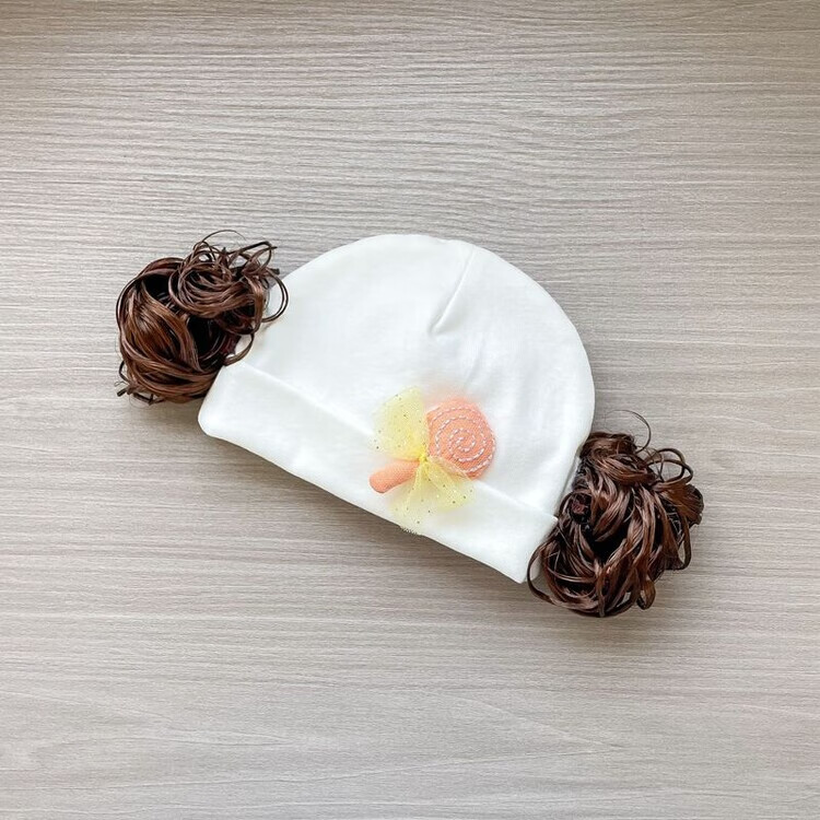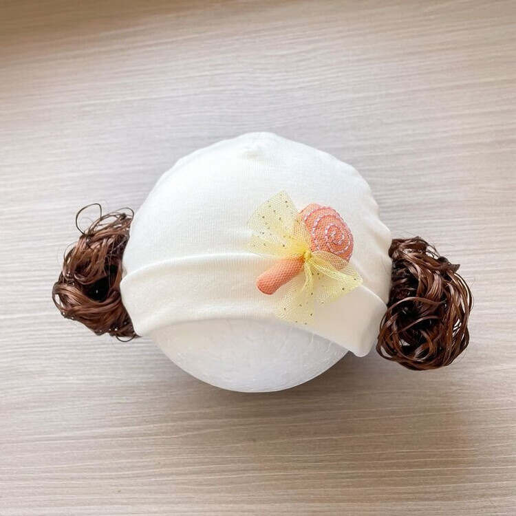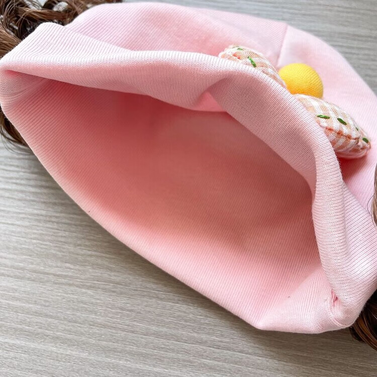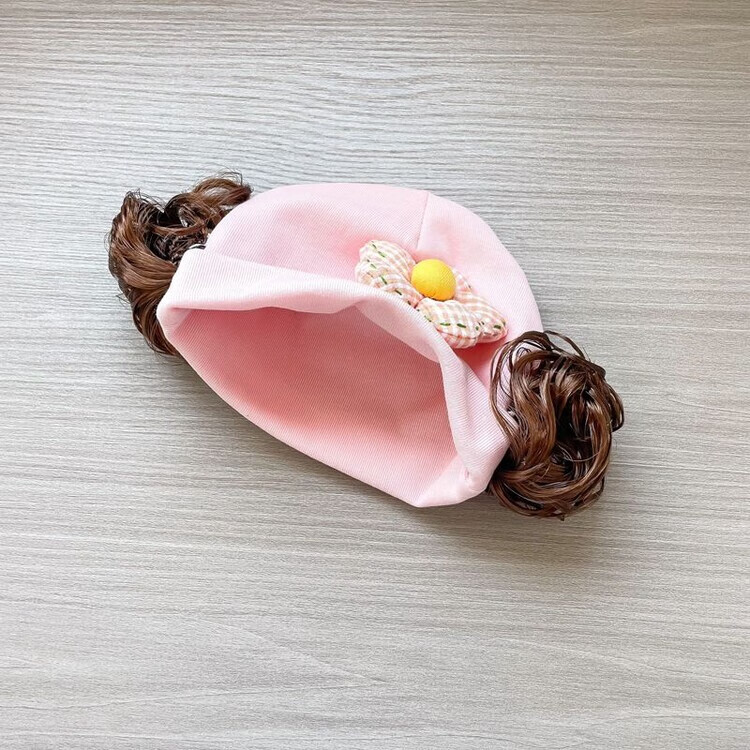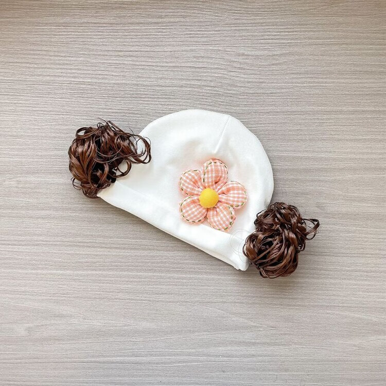 Baby girl hat spring and autumn pure cotton baby fetal cap cute super cute little month old hat playful wig hat new style big red pink wool thread cherry one size fits all 3-6 months pure cotton extra large elasticity does not tie the head