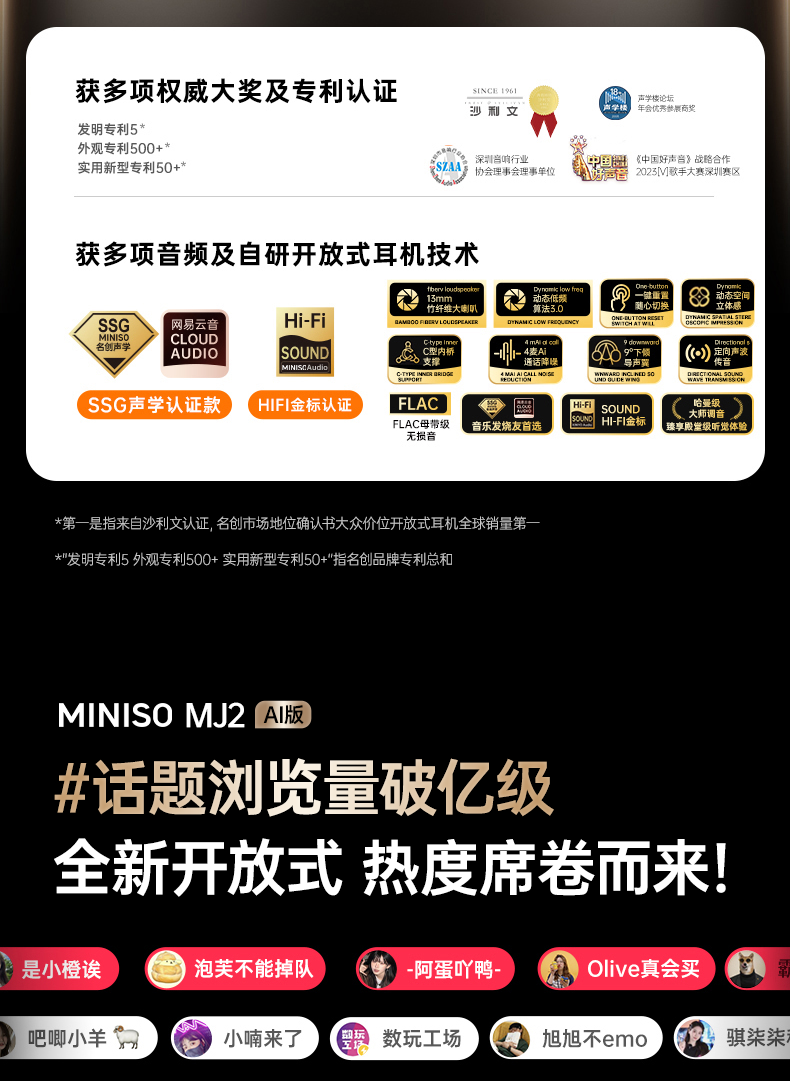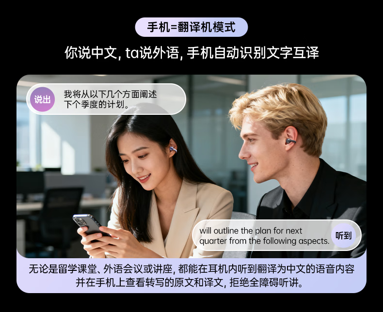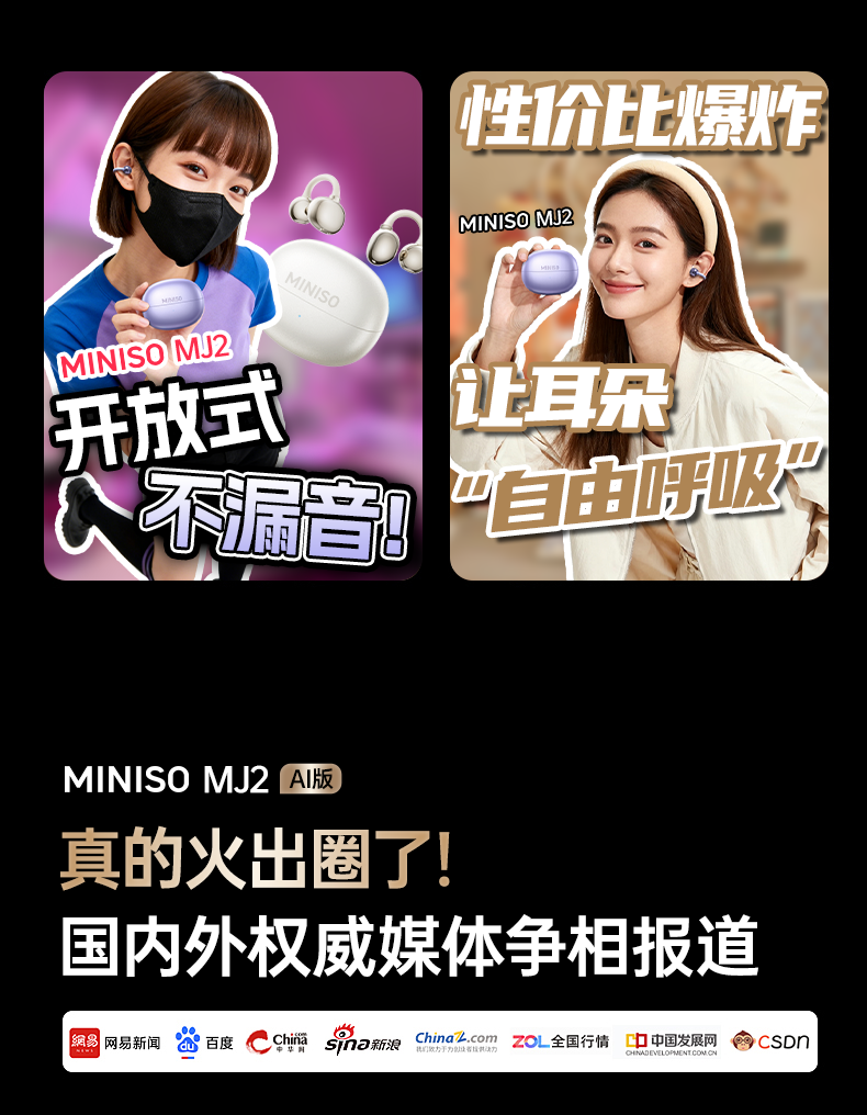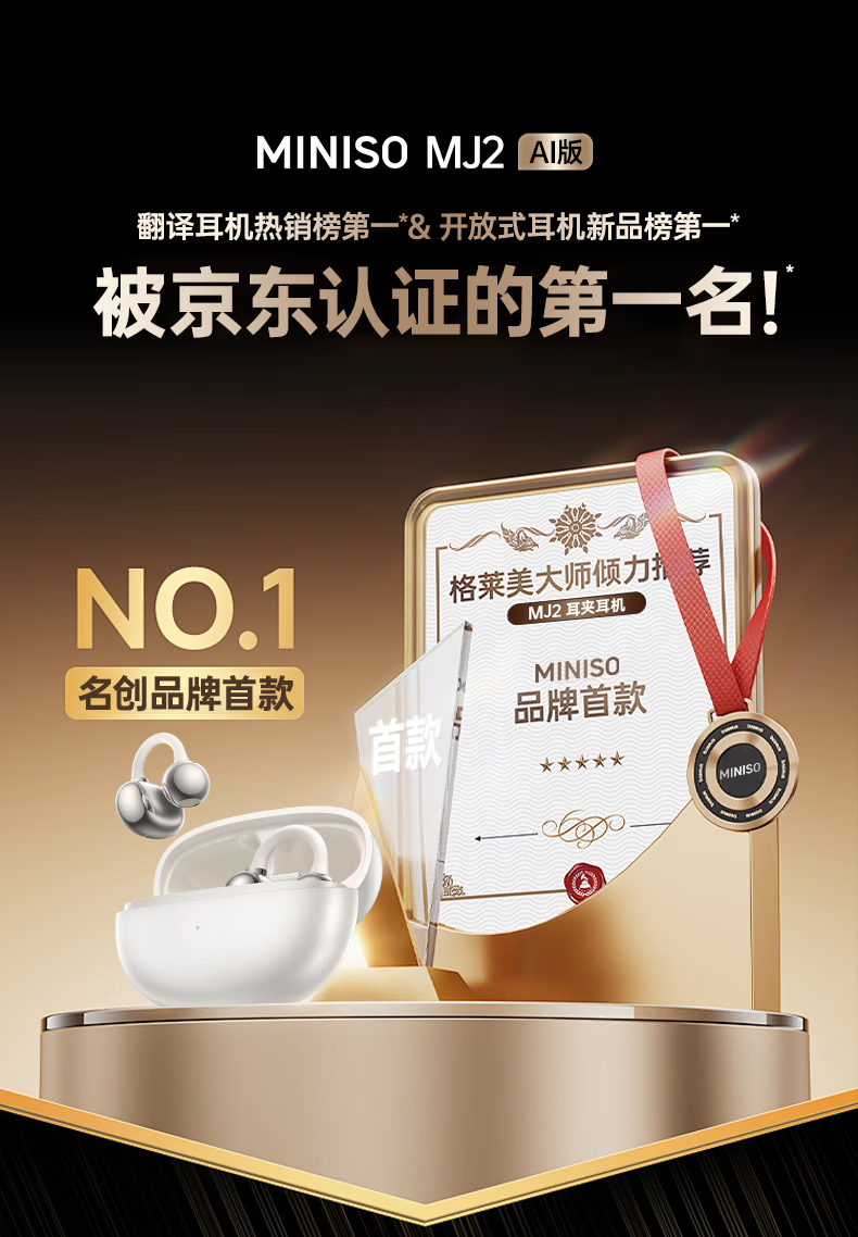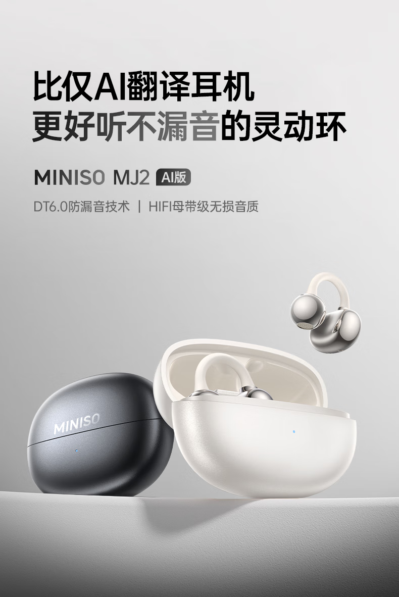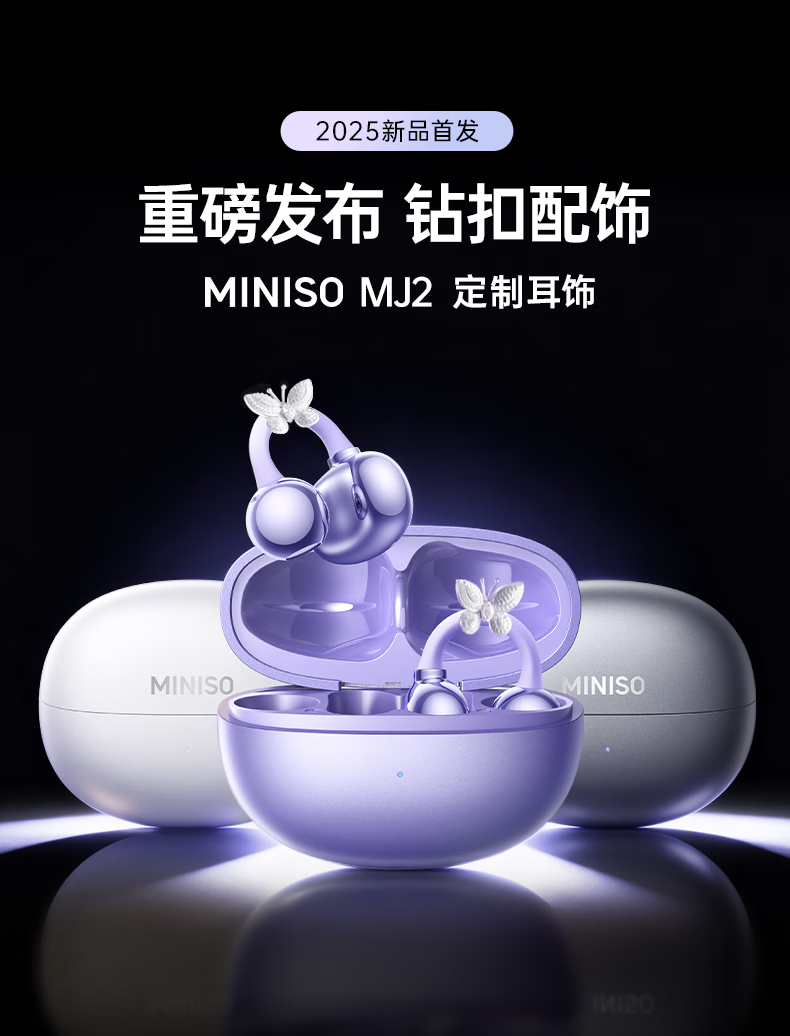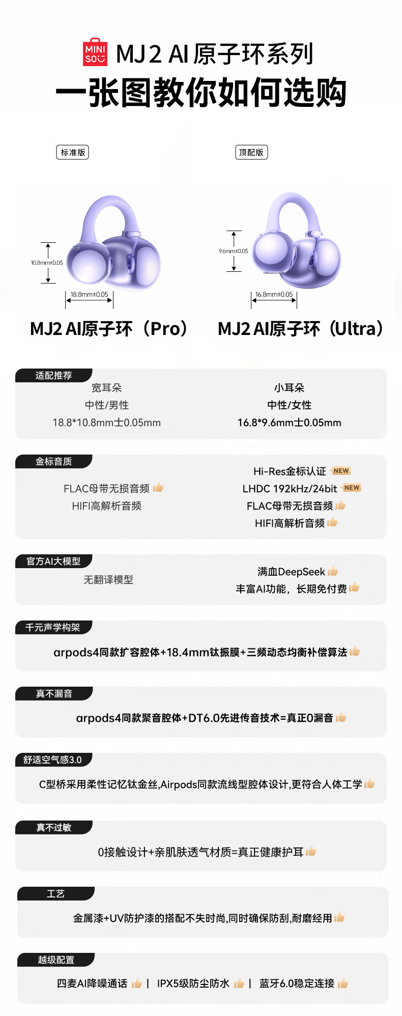 MINISO Fortune 500丨AI Atomic Ring MJ2 Bluetooth headset clip-on bone conduction concept in-ear open running sports call super long battery life real-time translation Gilded Purple Pro version丨Berlin panoramic sound quality Four gold standard sound quality丨Gold List TOP1丨Intelligent AI translation