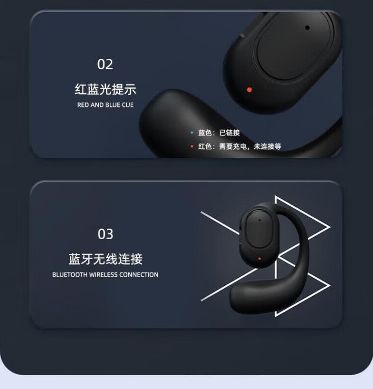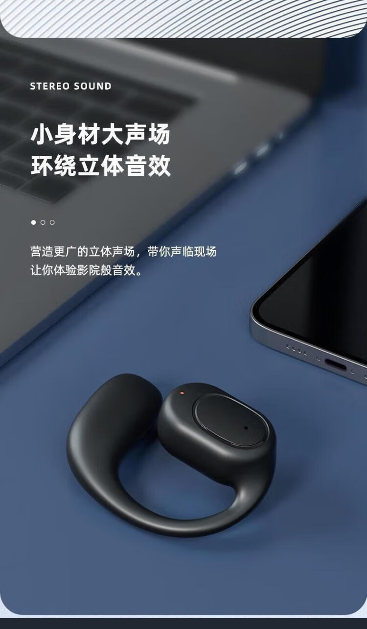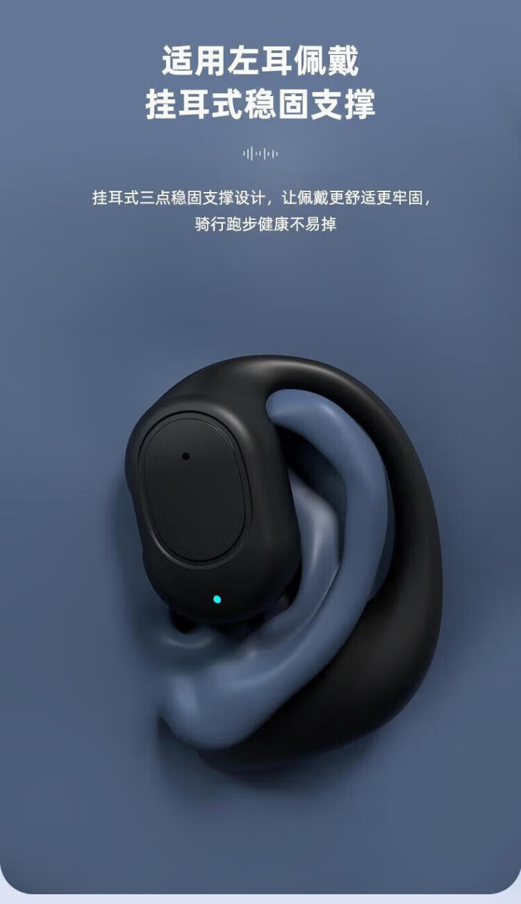 Hot-selling hot-selling true wireless Bluetooth headset, open, non-ear-friendly, ultra-long battery life, air conduction, ear-mounted clip-on call, noise reduction, suitable for student drivers, takeout, black
