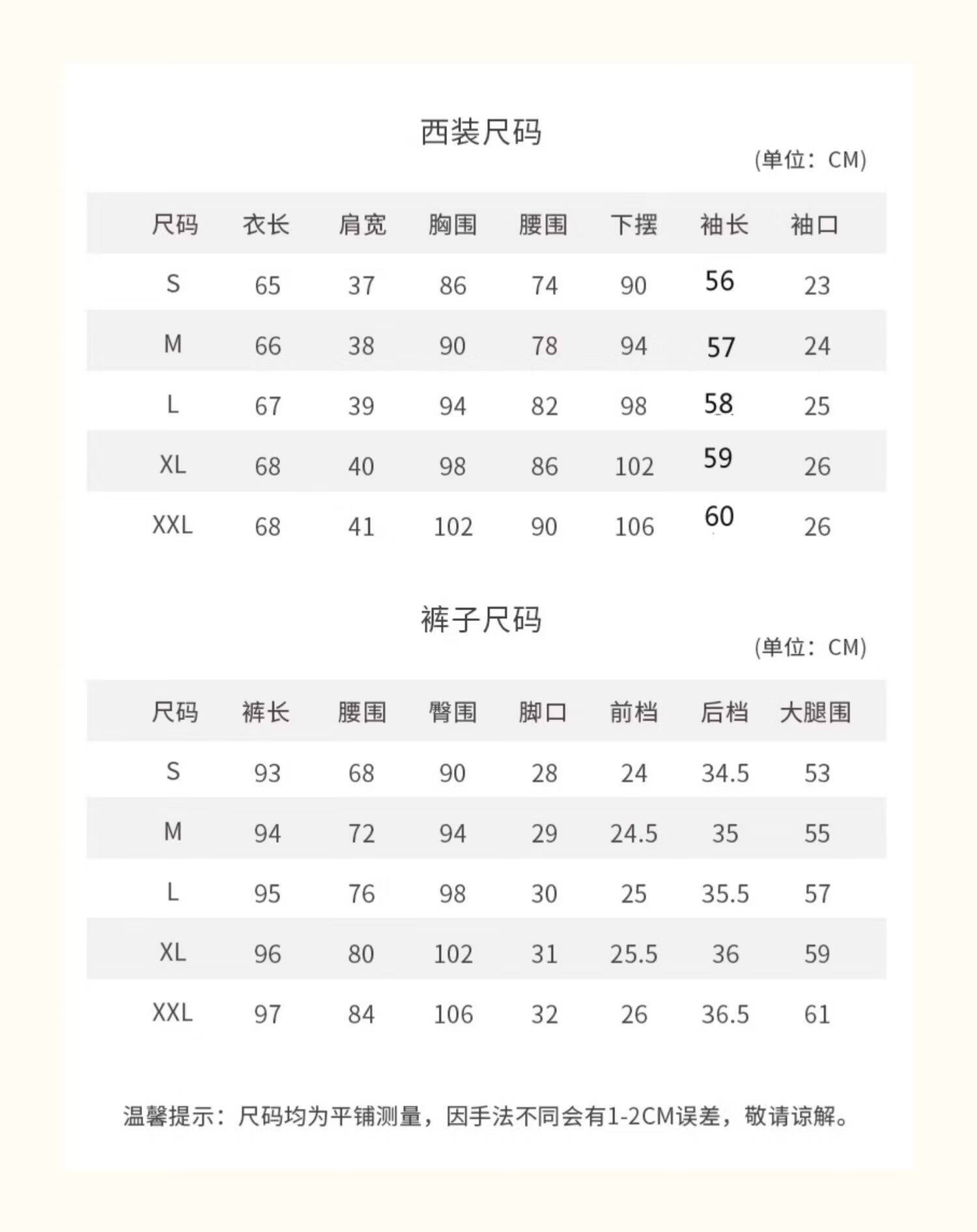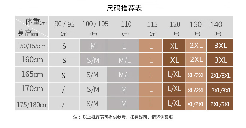 China (cm) 160-165/84-86 165-170 / 88-90 167-172 / 92-96 168-173 / 98-102 170-176 / 106-110