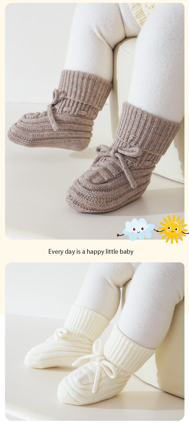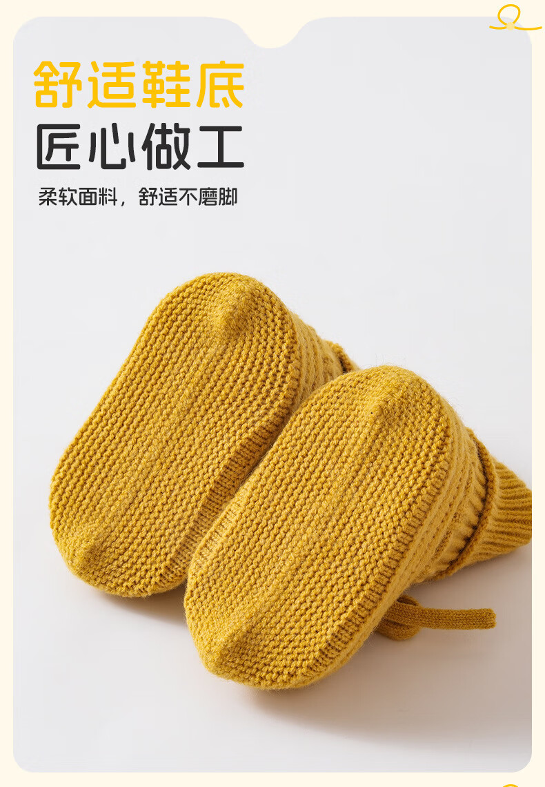 Baby socks autumn and winter new ins style baby woolen socks for men and women, spring and autumn newborn soft warm socks woolen shoes - Turmeric 1-3 years old M (recommended foot length 12-14cm)