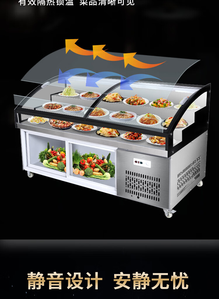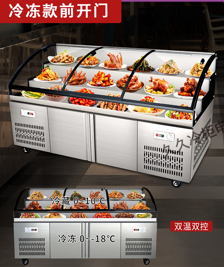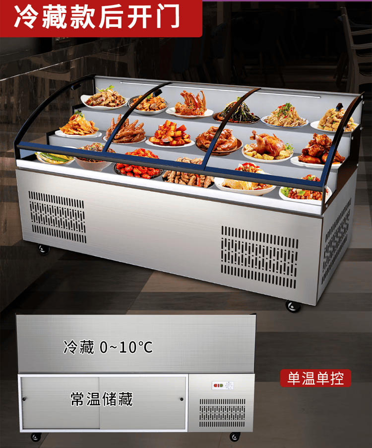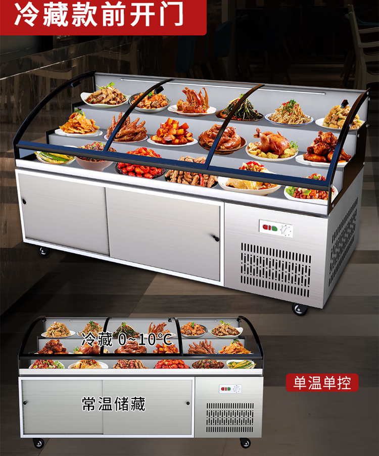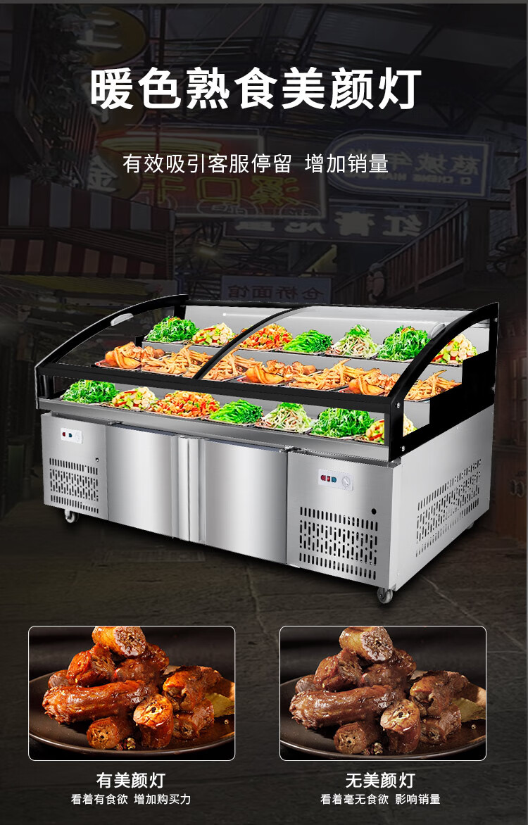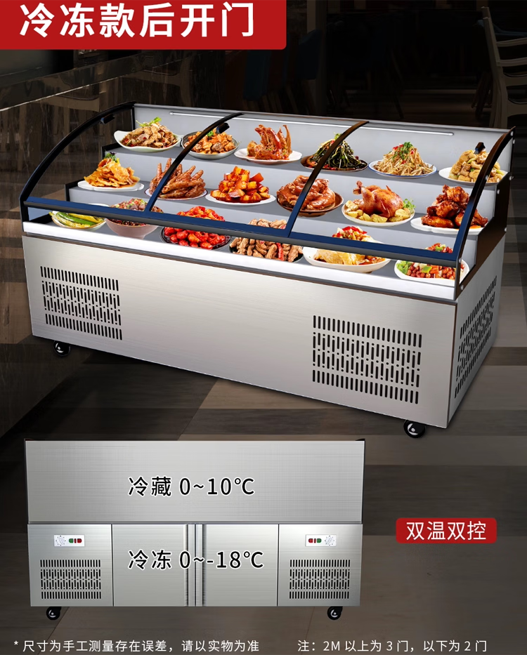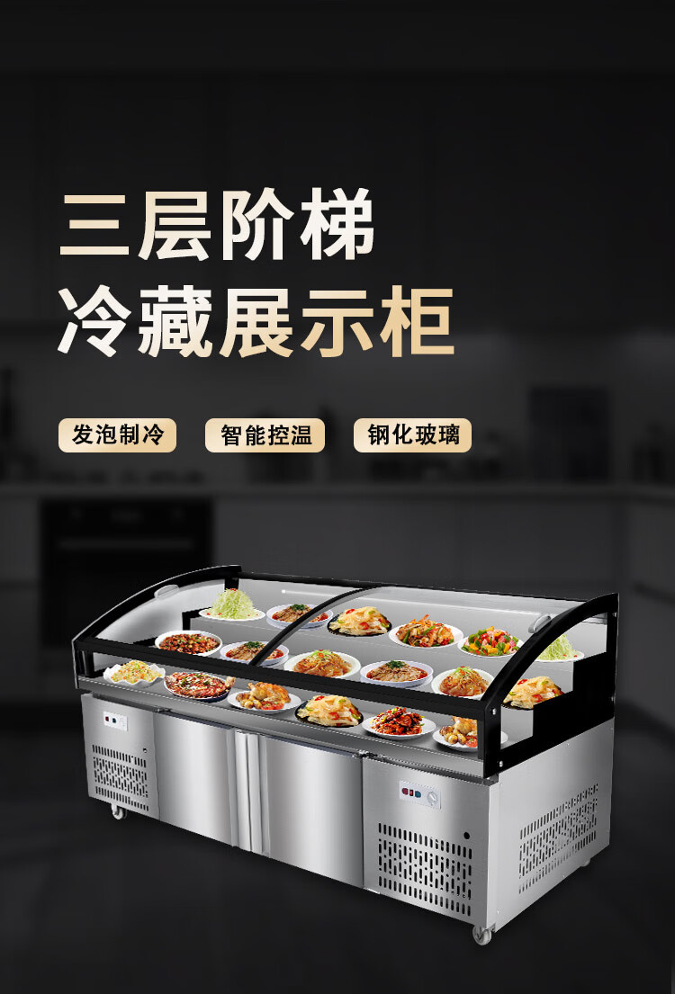 Three-layer stepped display cabinet refrigerated fresh cabinet commercial restaurant a la carte cold dishes cooked food barbecue skewers refrigerated freezer mobile braised food integrated refrigerator hotel vertical double door single temperature three-tiered / upper refrigeration and lower storage / front door 130 length x 90 width x 109 height / cm