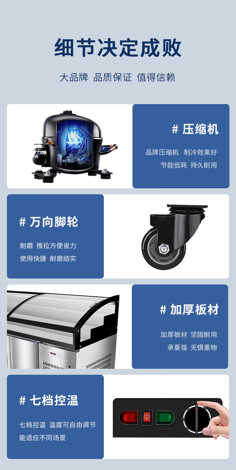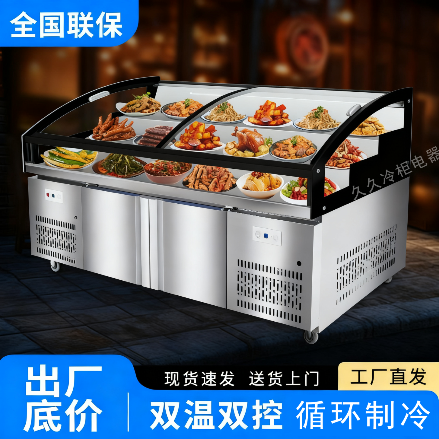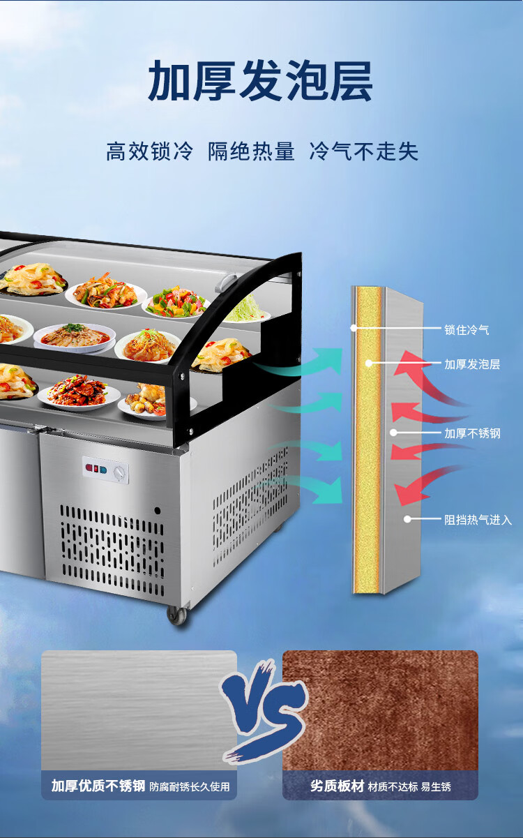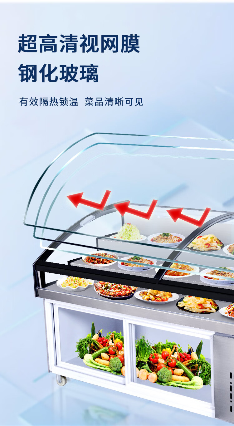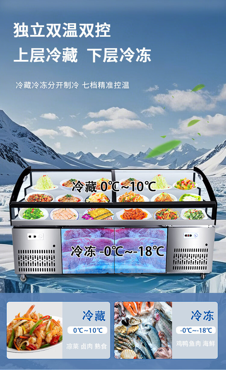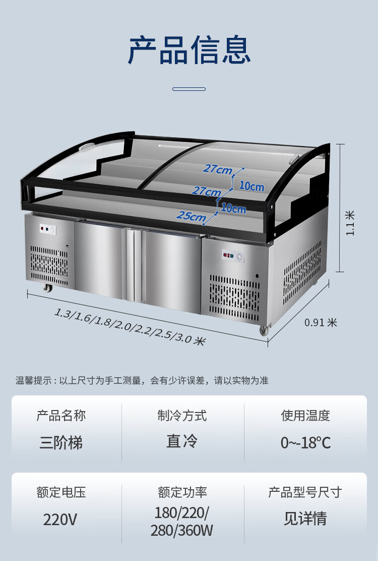Three-layer stepped display cabinet refrigerated fresh cabinet commercial restaurant a la carte cold dishes cooked food barbecue skewers refrigerated freezer mobile braised food integrated refrigerator hotel vertical double door single temperature three-tiered / upper refrigeration and lower storage / front door 130 length x 90 width x 109 height / cm