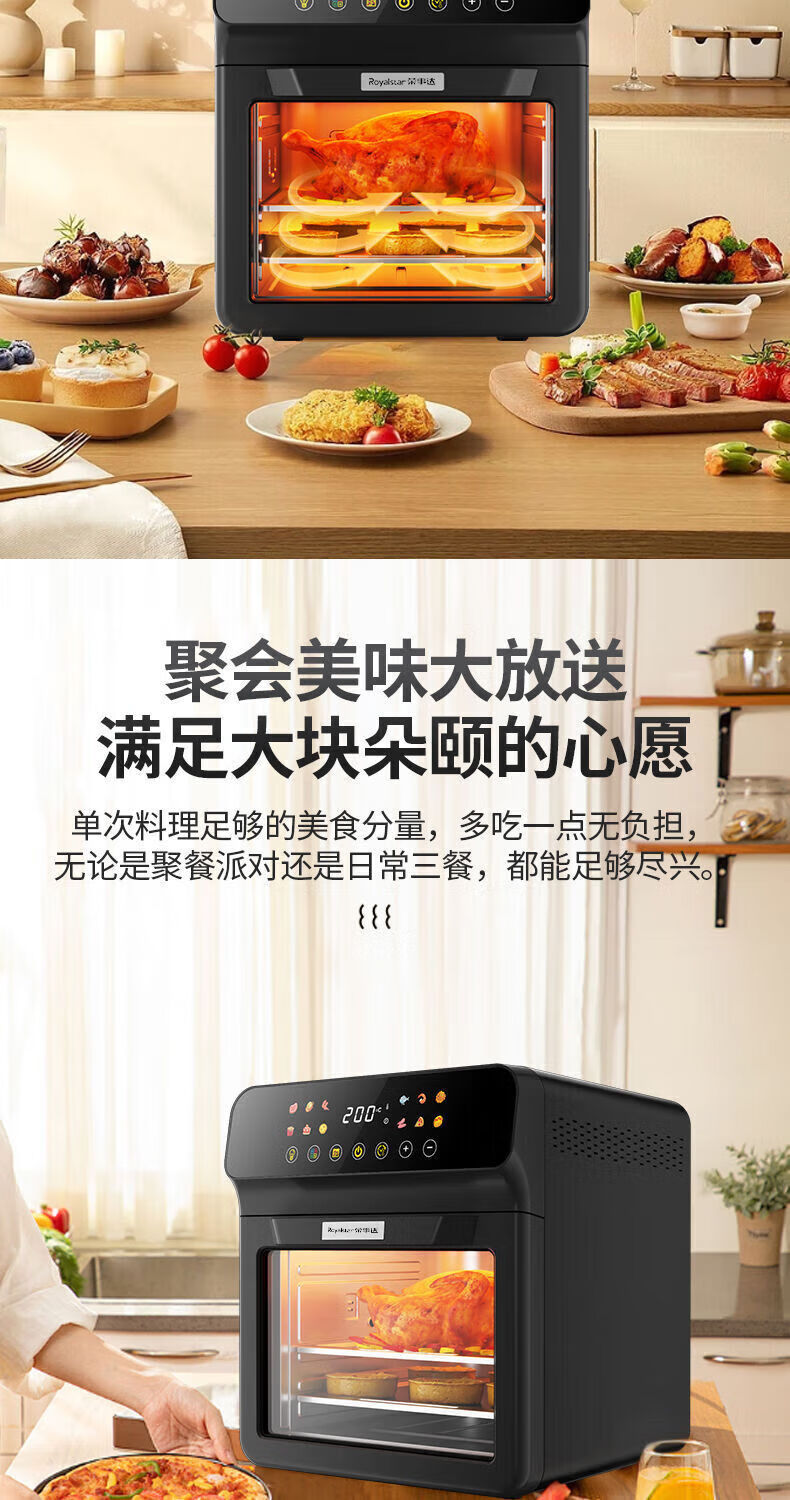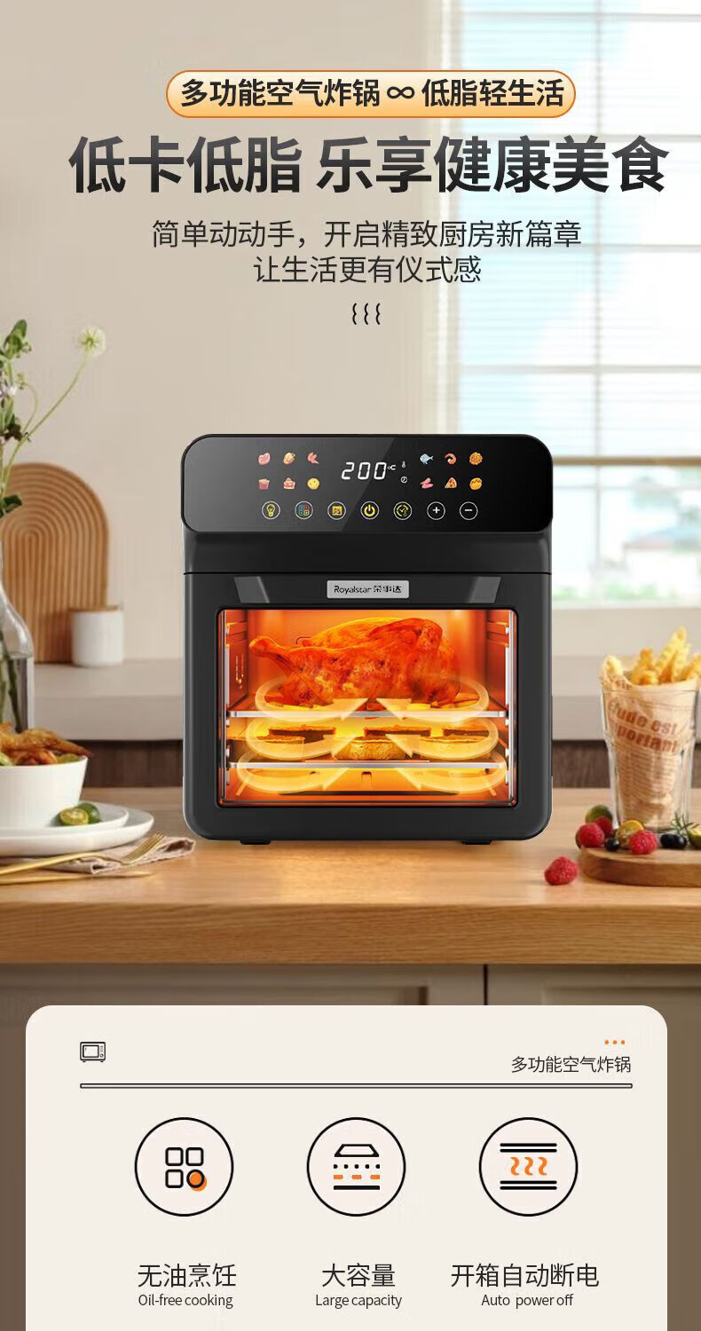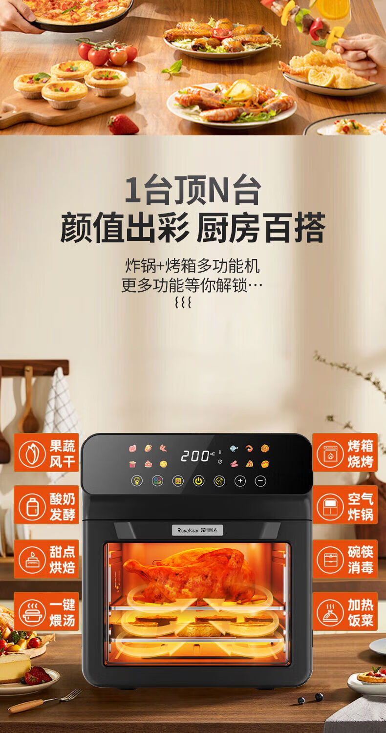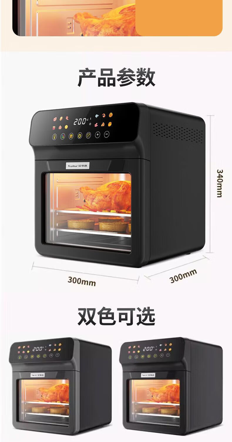 Royalstar Air Fryer Oven 2025 New Home Microwave Baking All-in-One Smart Touch Screen Multifunctional Electric Fryer Transparent Visible No Turning Large Capacity Electric Oven Black Large Color Screen + Upgraded Drying + Visual Window 10L