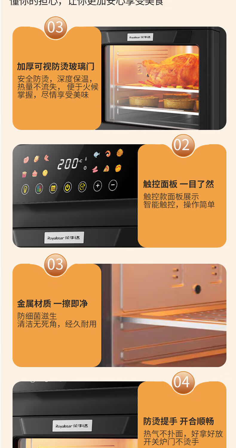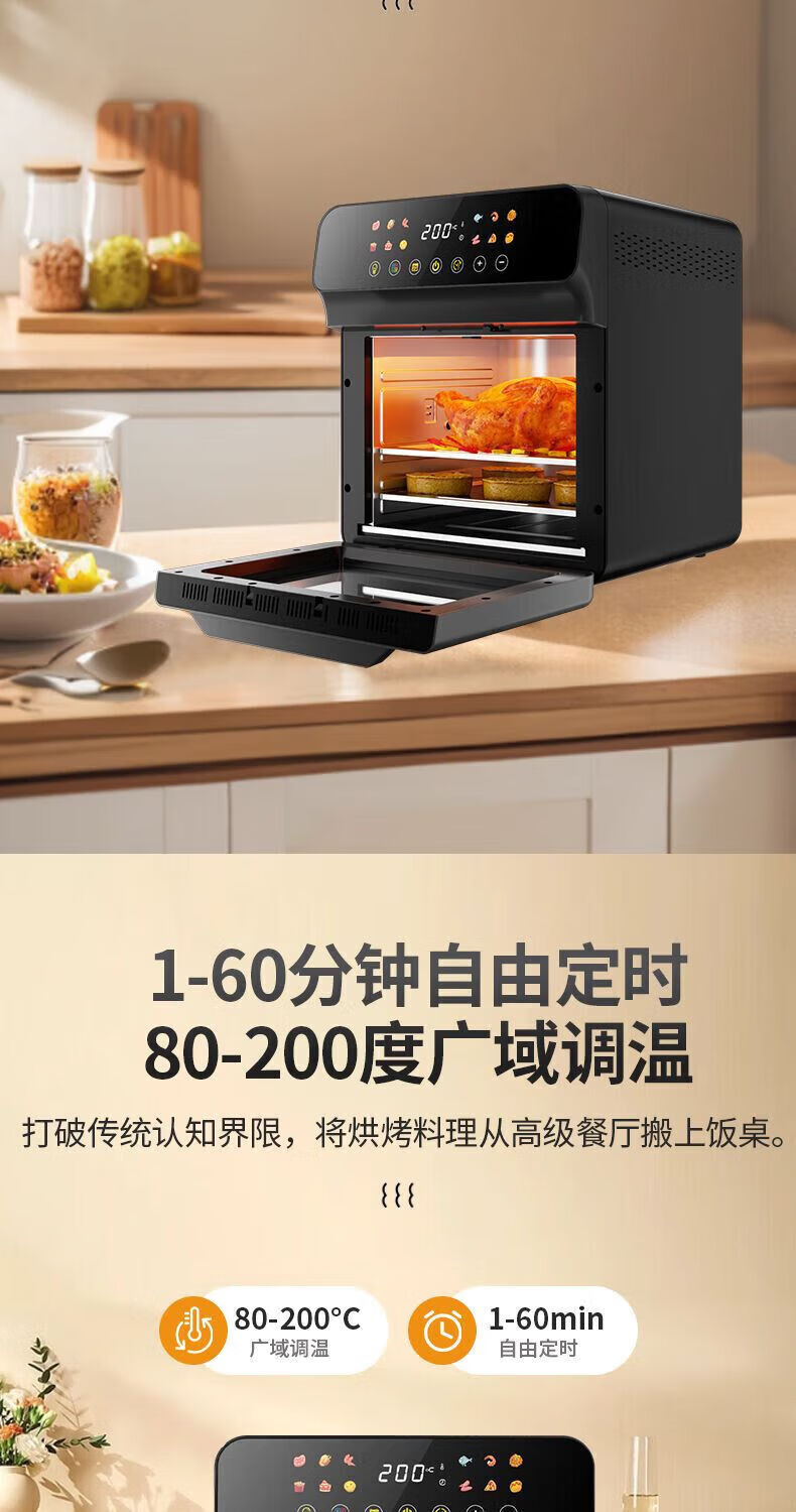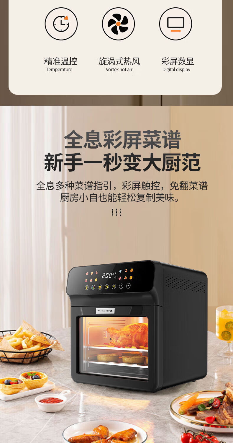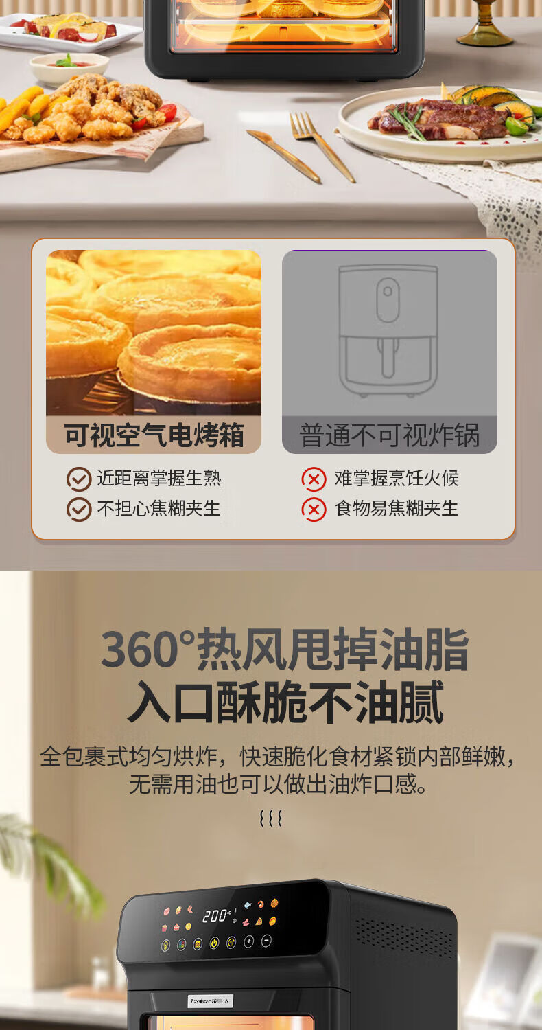 Royalstar Air Fryer Oven 2025 New Home Microwave Baking All-in-One Smart Touch Screen Multifunctional Electric Fryer Transparent Visible No Turning Large Capacity Electric Oven Black Large Color Screen + Upgraded Drying + Visual Window 10L