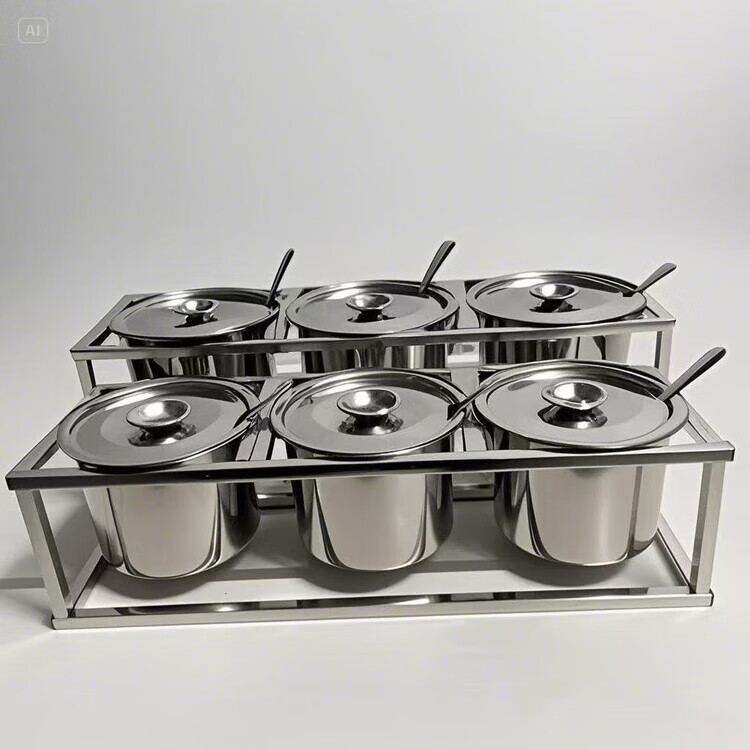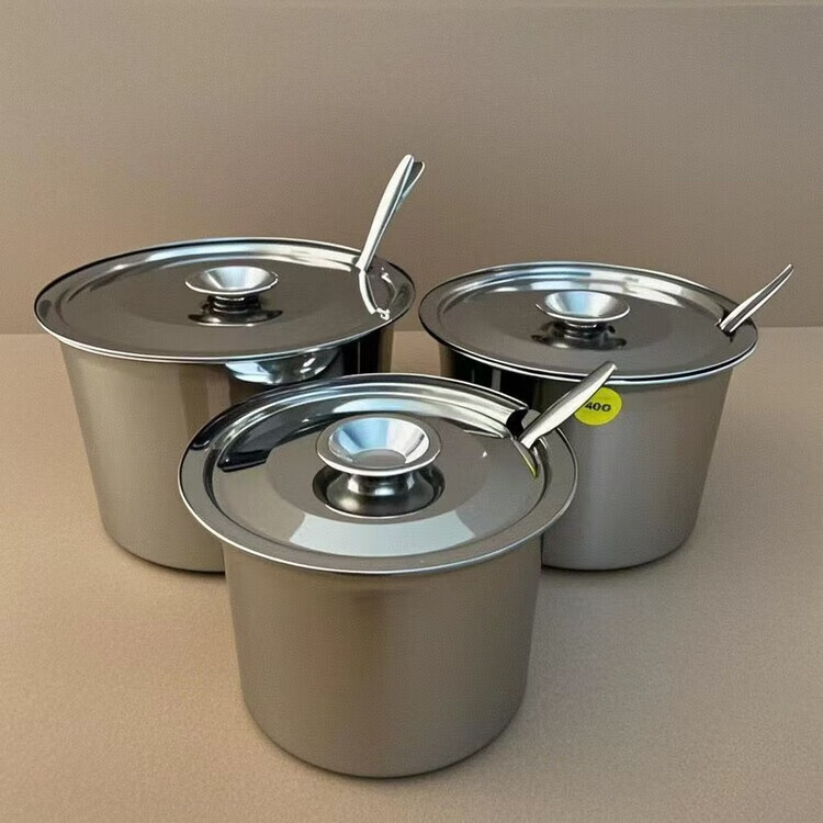 Kamanpai raised stainless steel basin with lid, commercial stall, sauce basin, stainless steel cold mix, household stainless steel sauce basin, stainless steel, non-magnetic stainless steel, white steel, separate lid opening 14cm