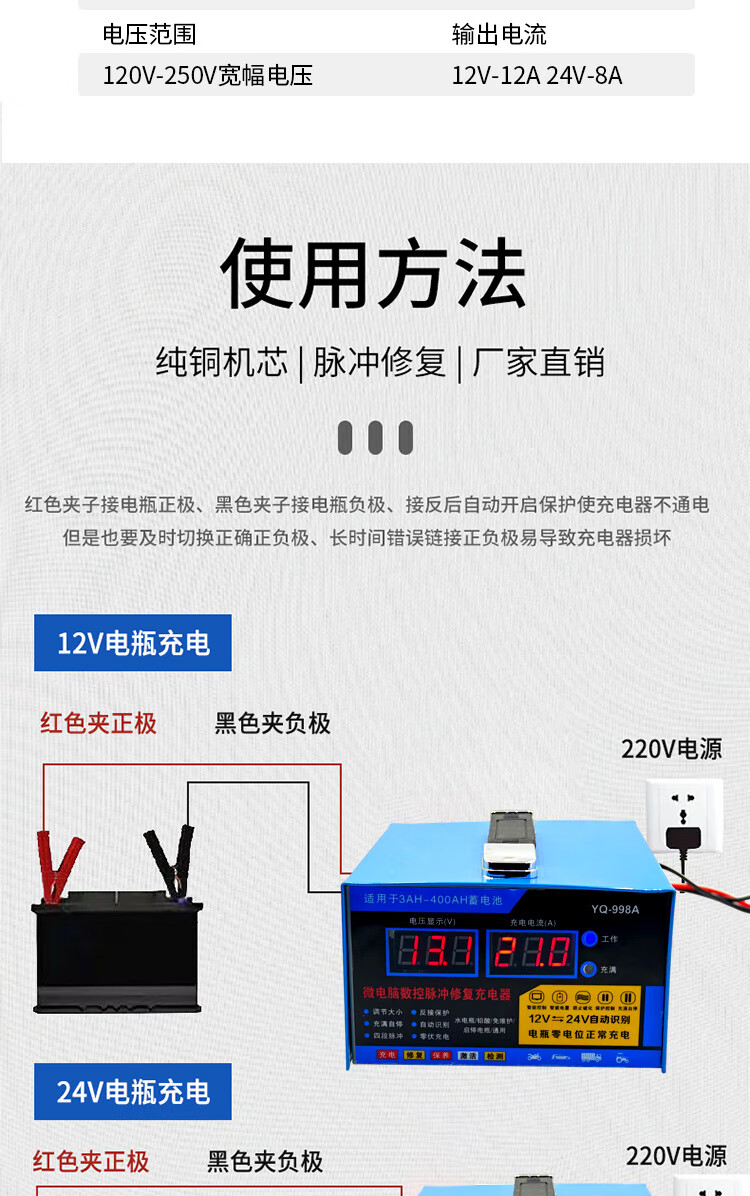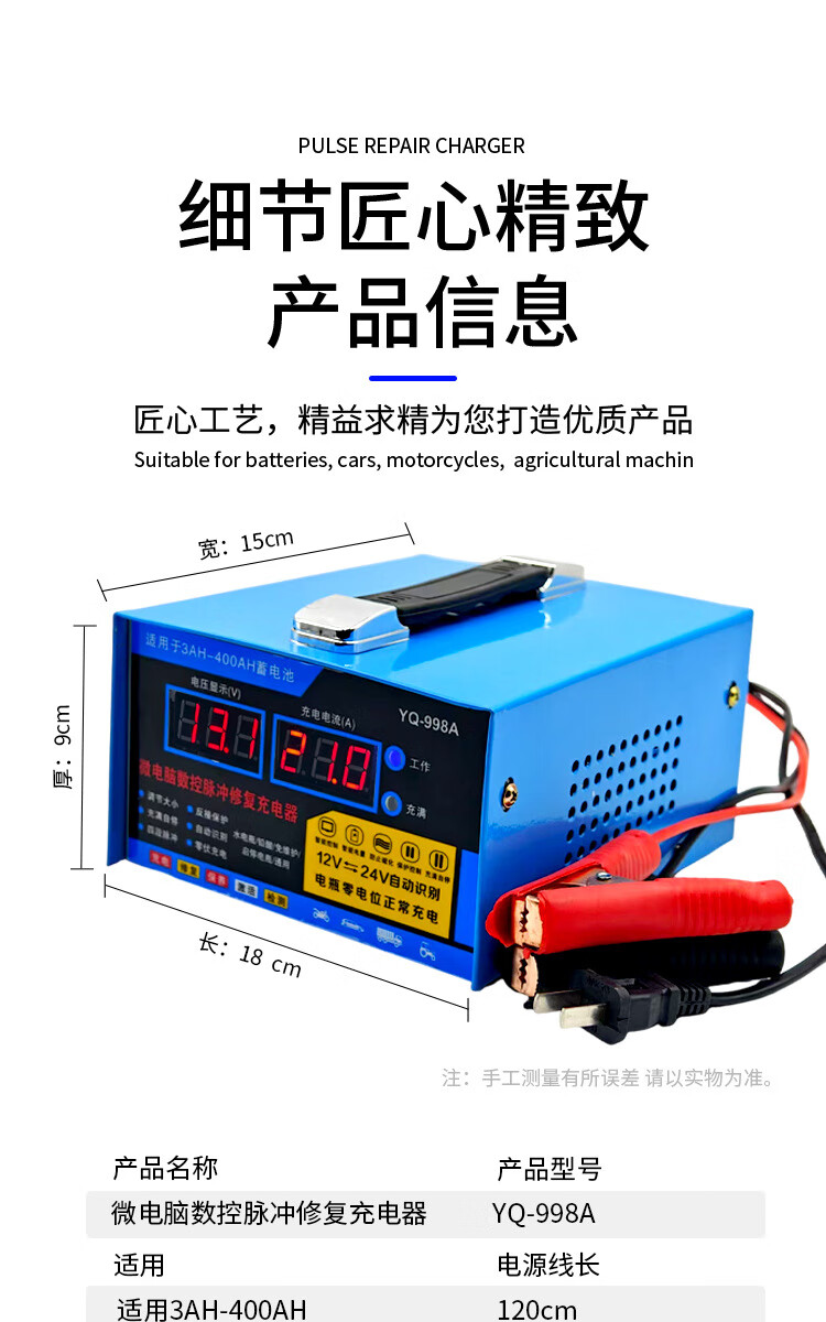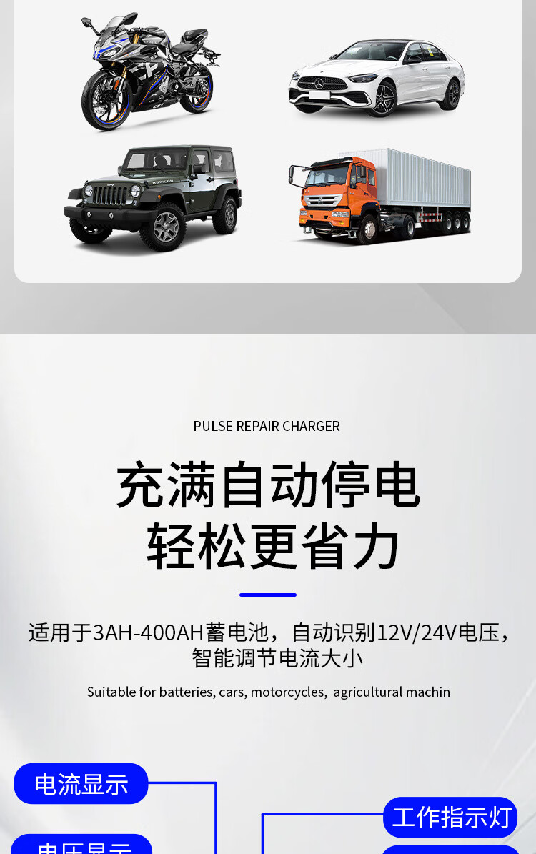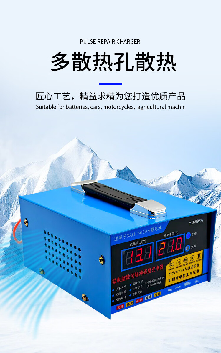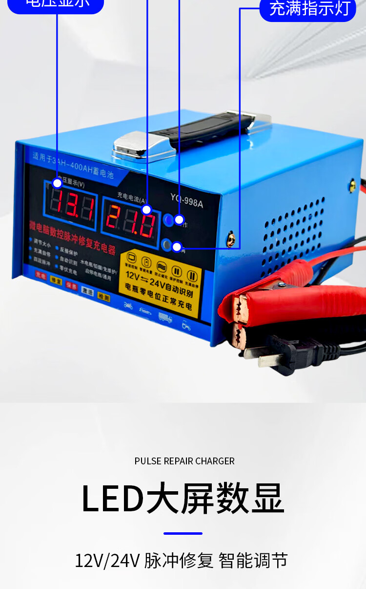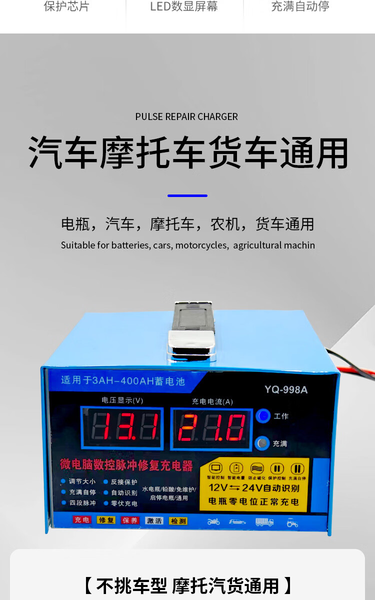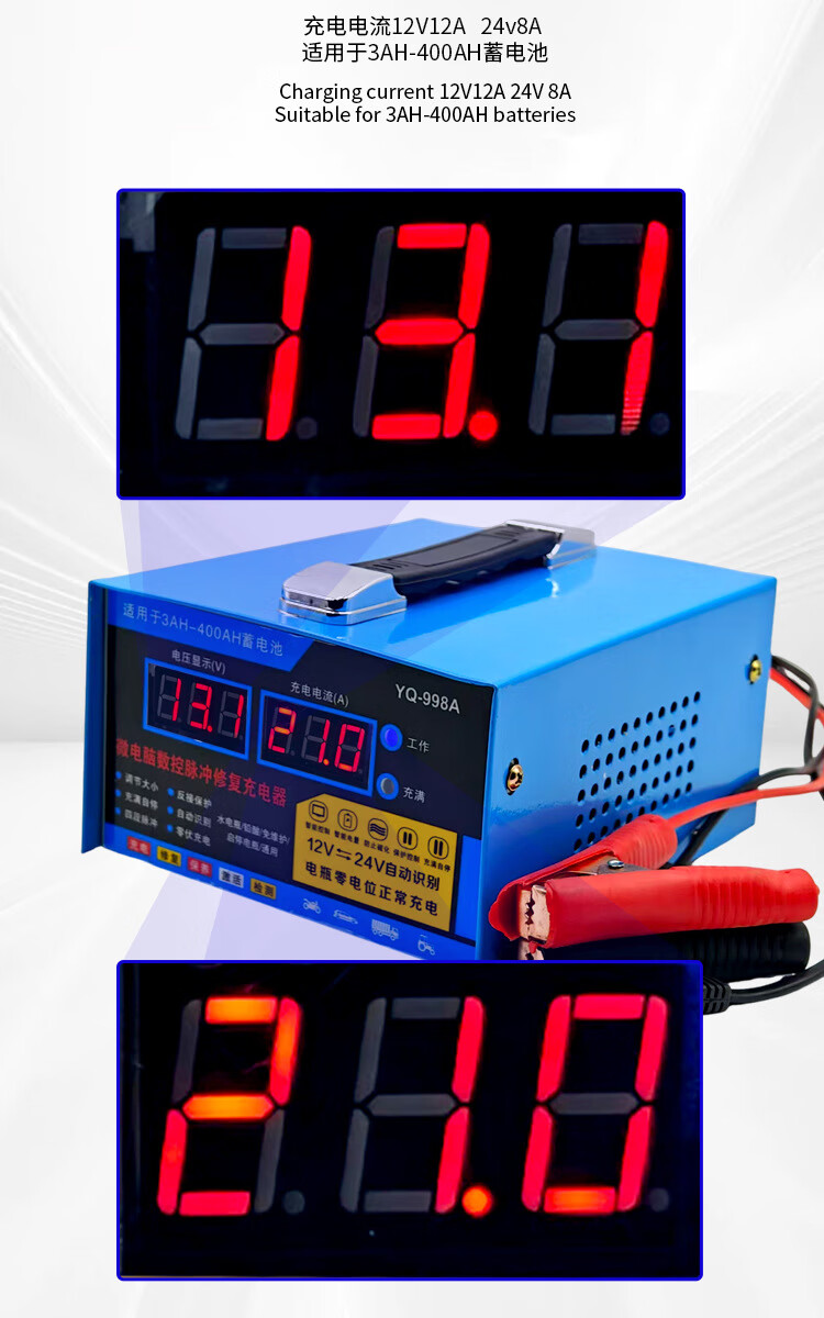 Car battery charger 12v24v volt battery motorcycle fully automatic charger full self-stop smart 998A-car motorcycle truck battery charger
