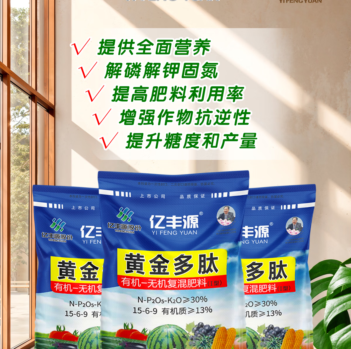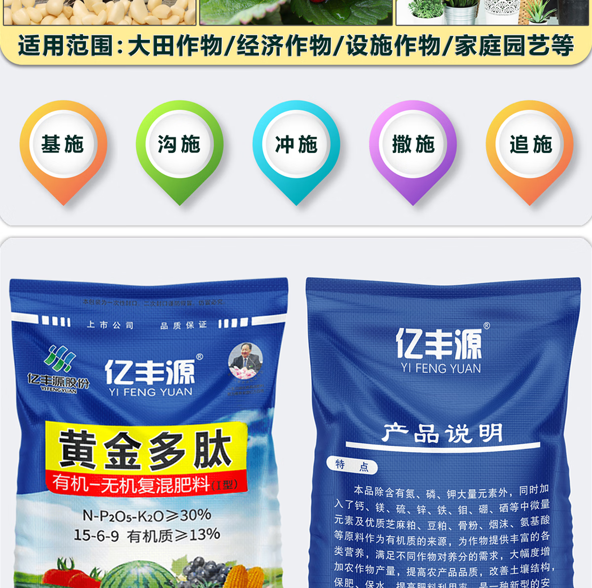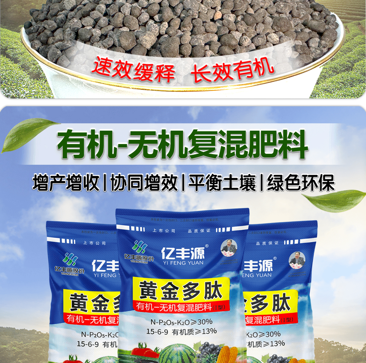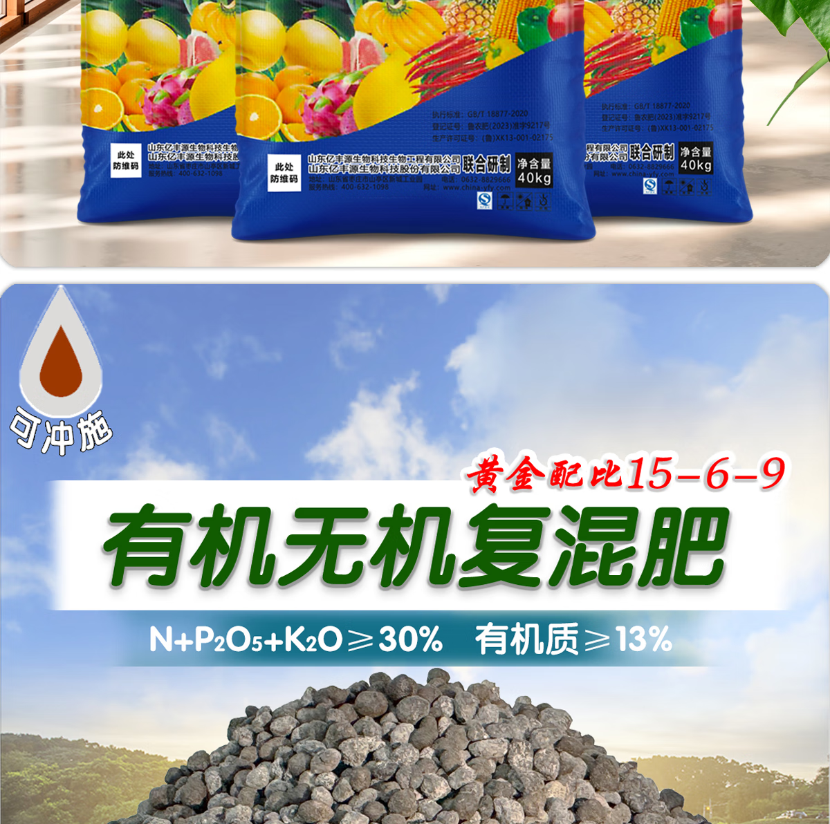 Yifengyuan organic and inorganic compound fertilizer slow-release fertilizer vegetable fertilizer fruit tree fertilizer flower fertilizer green radish succulent rooting green leaf nitrogen, phosphorus and potassium fertilizer 15-6-9 organic and inorganic compound fertilizer 500g (genuine licensed goods | original packaging | large quantity, please contact customer service)