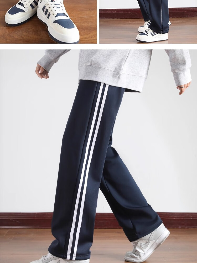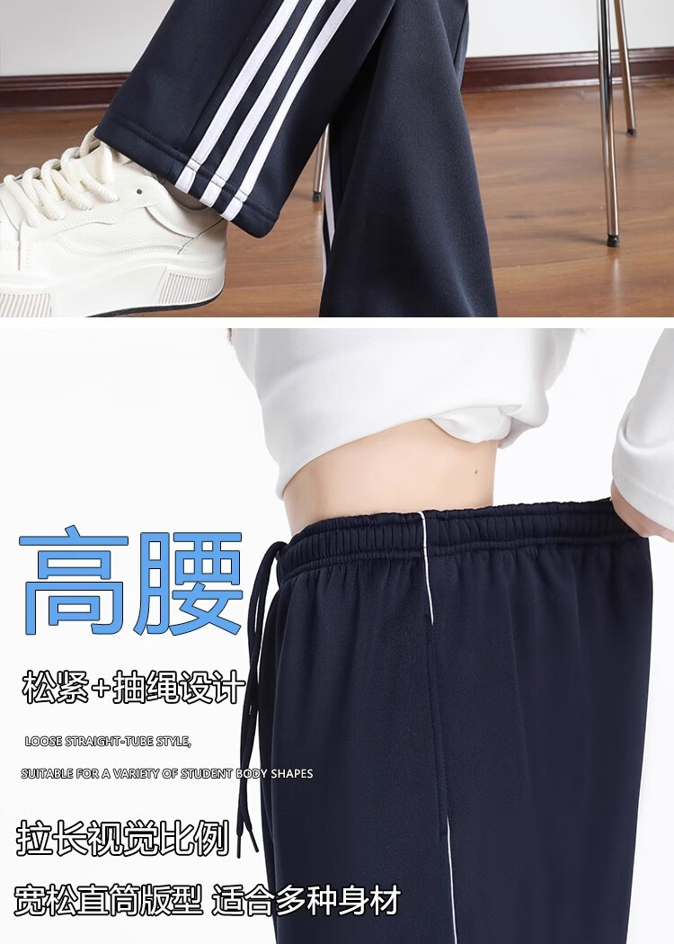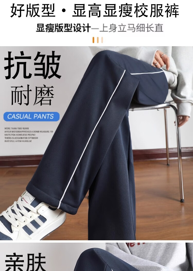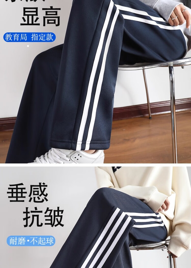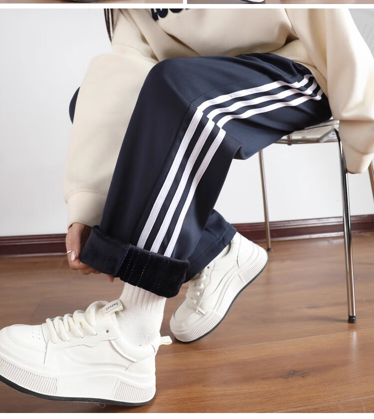 School uniform pants winter thickened with velvet, navy blue one bar, two bars, navy blue junior high school students, primary school students, navy one bar-velvet style 170 (XL) recommended height 165-170