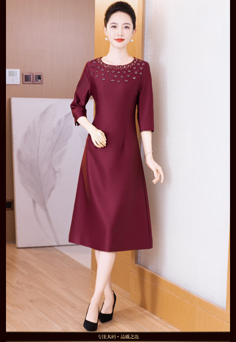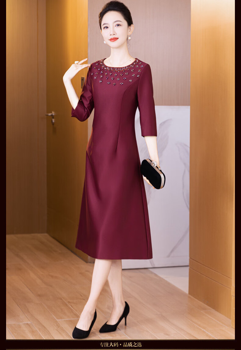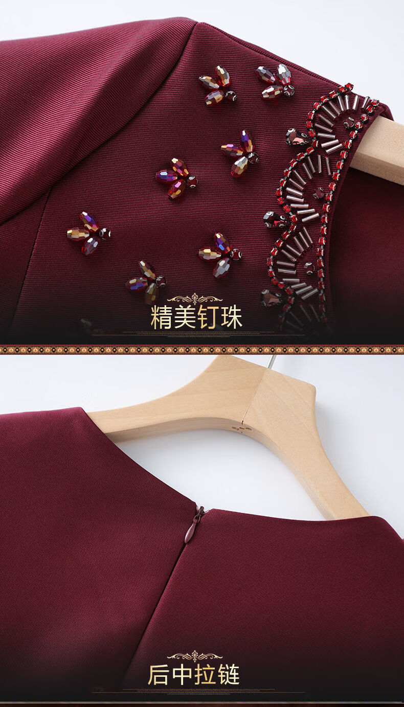 Drop off station young high-end mother wedding dress autumn elegant mother-in-law wedding dress 2025 new noble and young burgundy 2XL