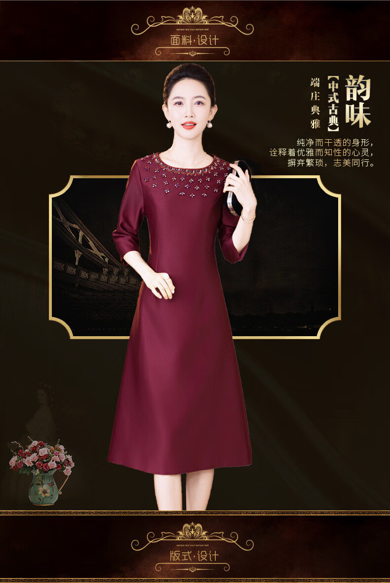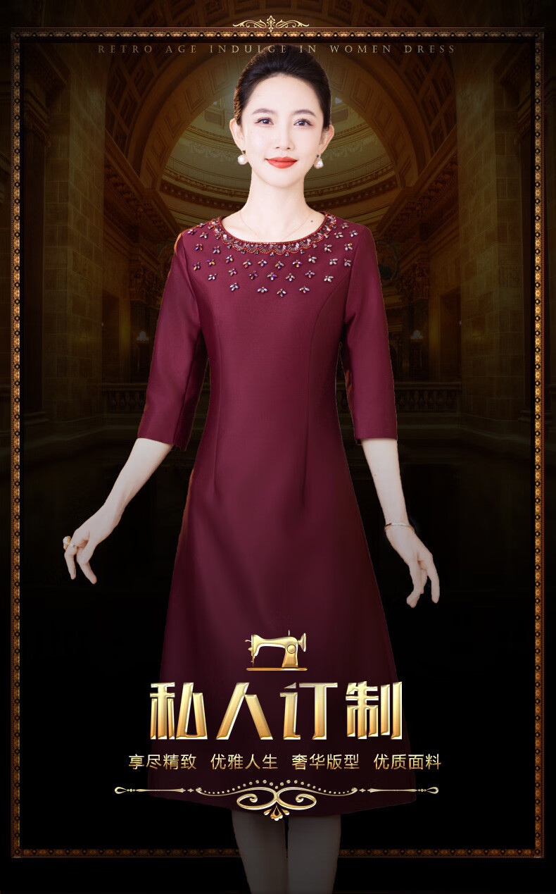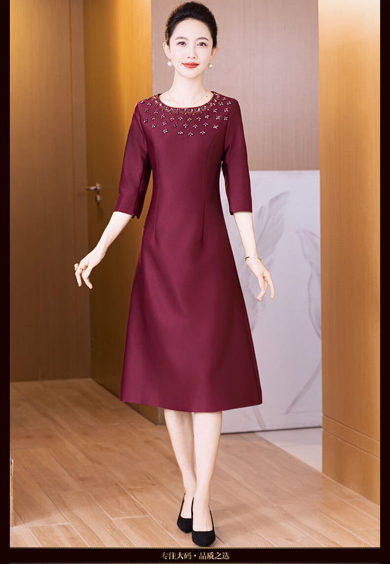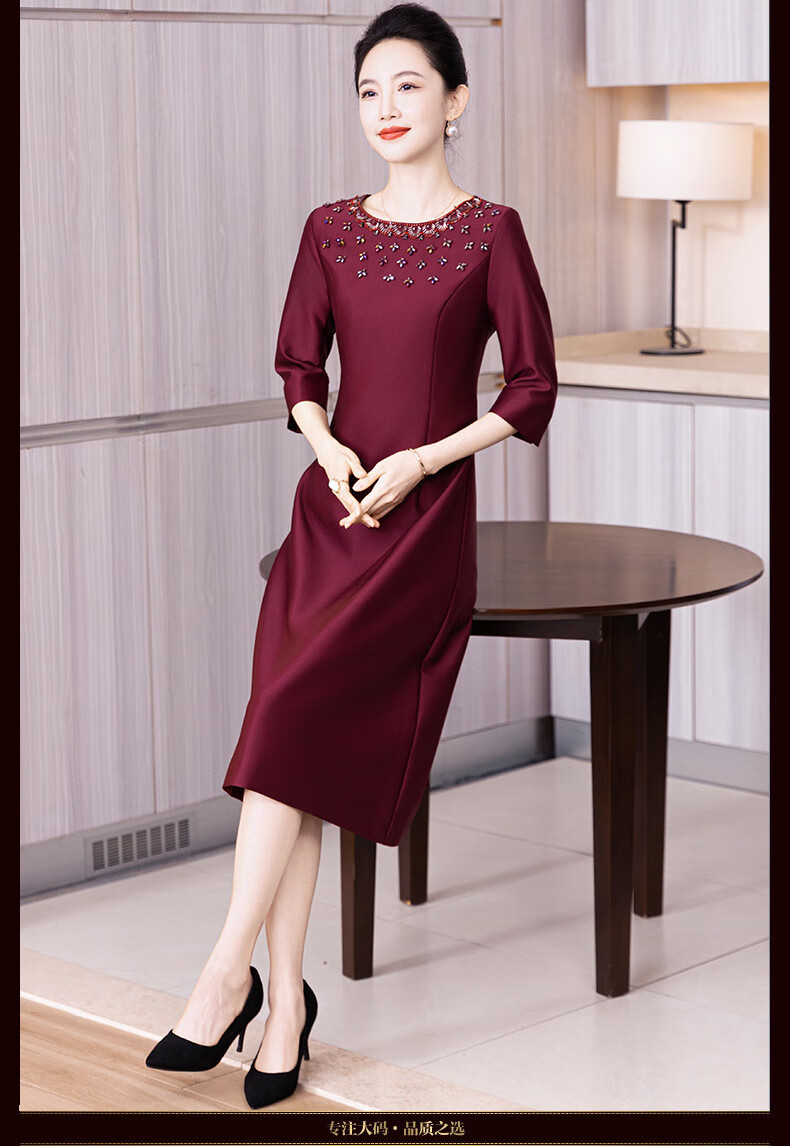 Drop off station young high-end mother wedding dress autumn elegant mother-in-law wedding dress 2025 new noble and young burgundy 2XL