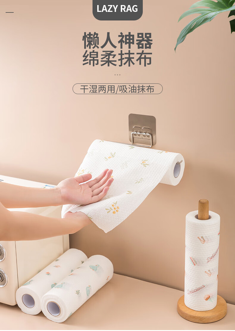Lazy rag wet and dry for household cleaning kitchen paper special disposable dishwashing cloth absorbs water and is not easy to get oily 1 roll 50 tear reusable