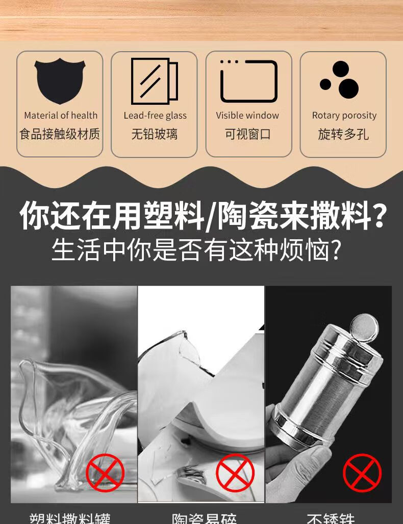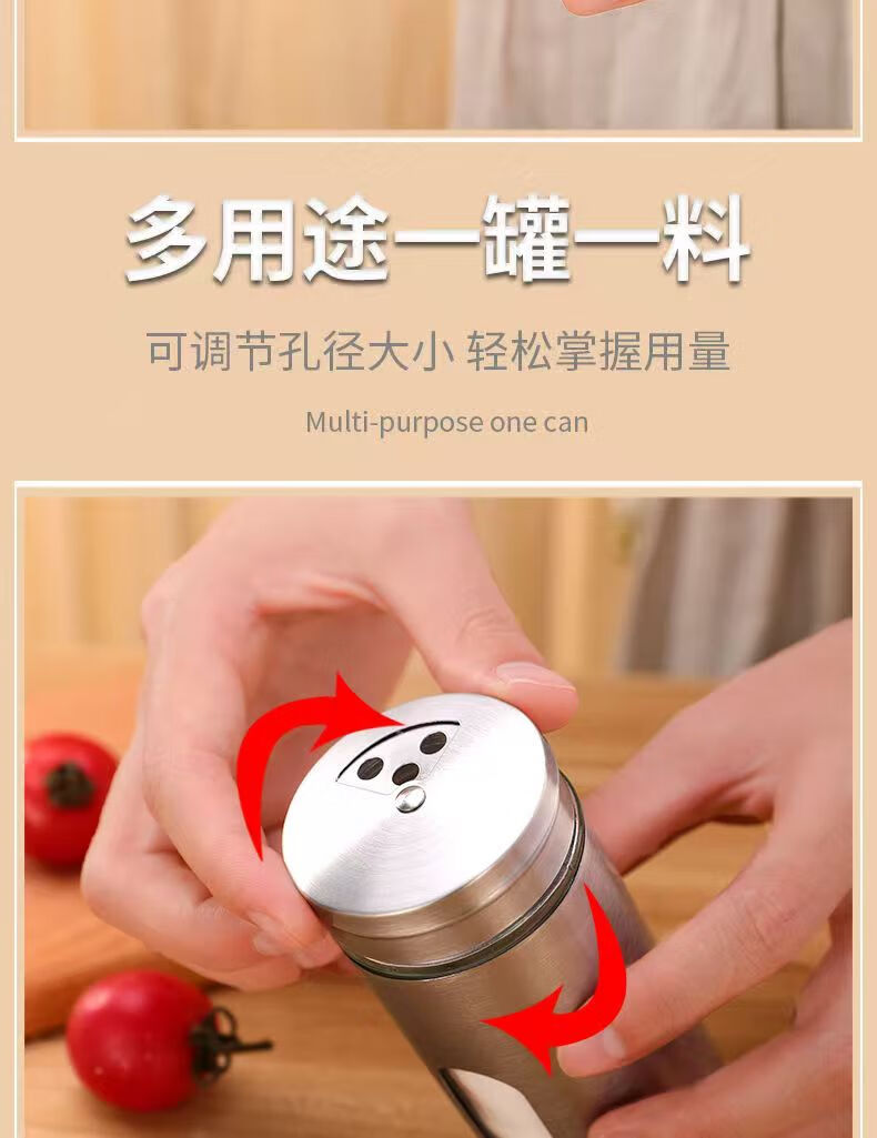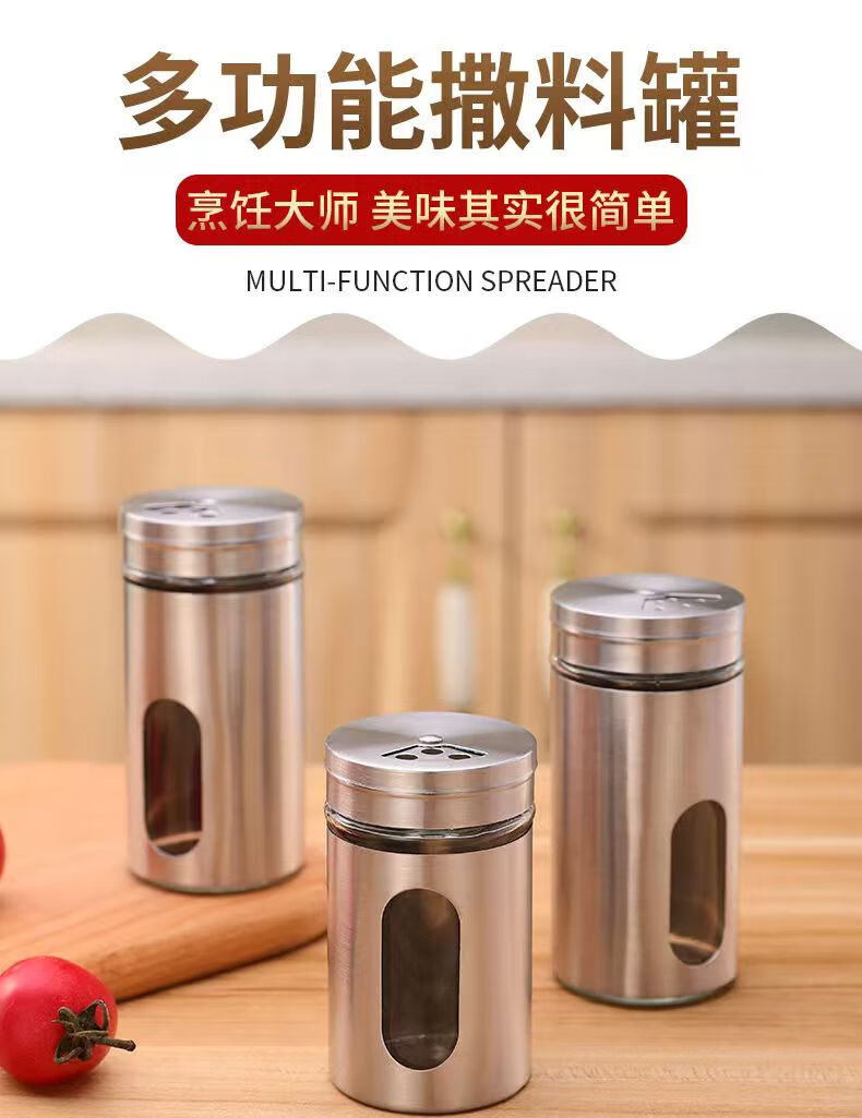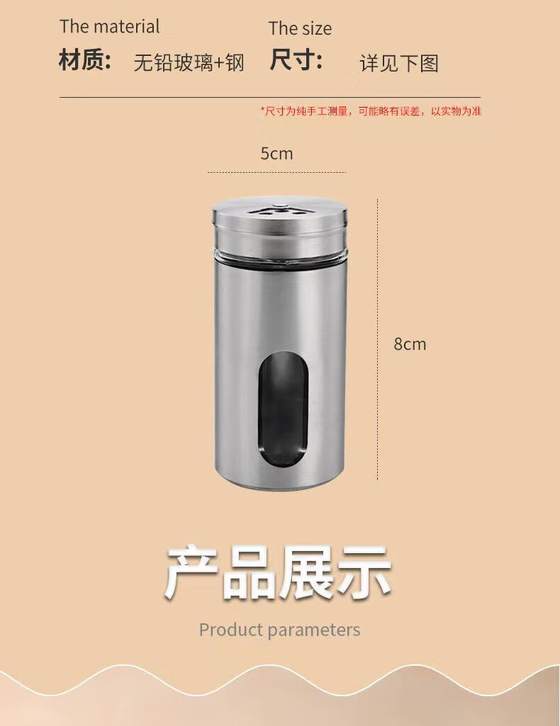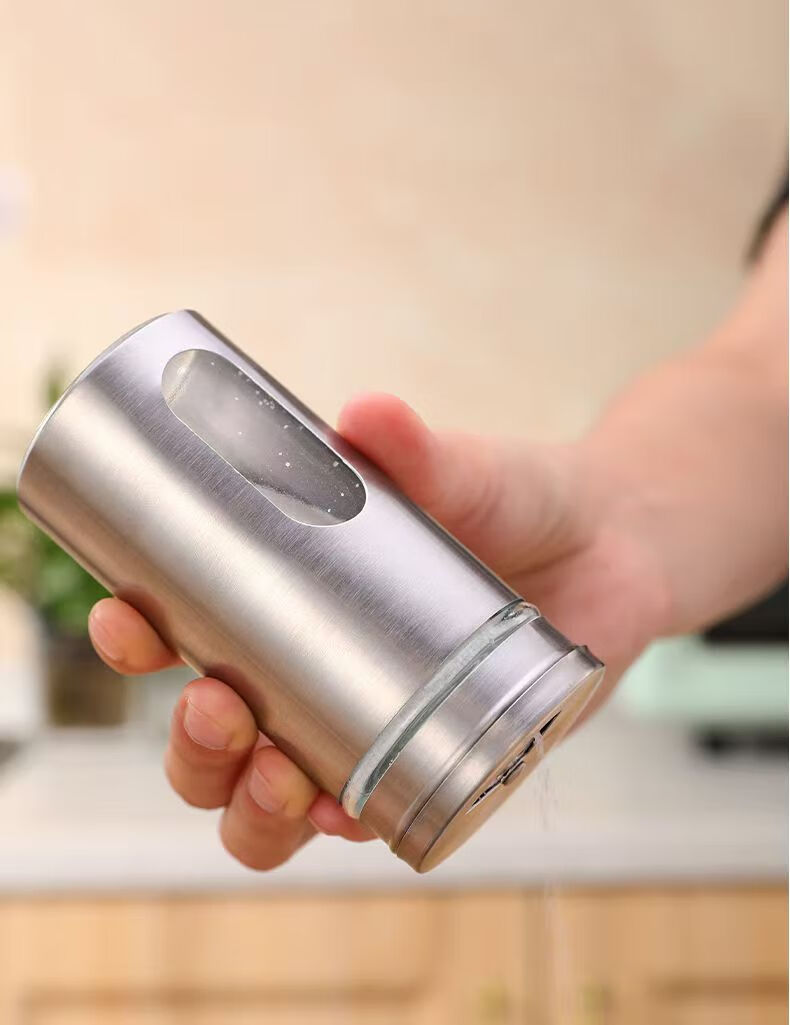 Seasoning jar kitchen supplies household stainless steel seasoning jar outdoor barbecue rotating seasoning bottle combination set stainless steel seasoning jar 2-piece set