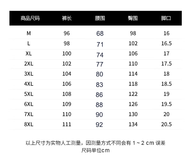 Outseam (cm) 99 cm 101.5 cm 104 cm 106.5 cm 109 cm