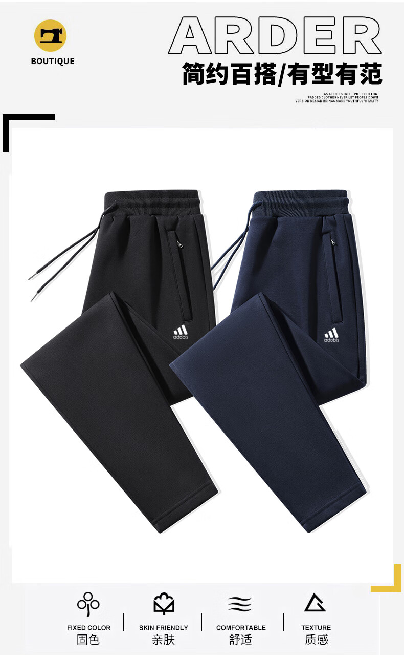 ADIDAS TECHFIT Adidas pure cotton sweatpants men's autumn and winter velvet pants casual pants middle-aged loose large size sweatpants black straight plus velvet 4XL recommended 165-180Jin Jin equals 0.5 kg