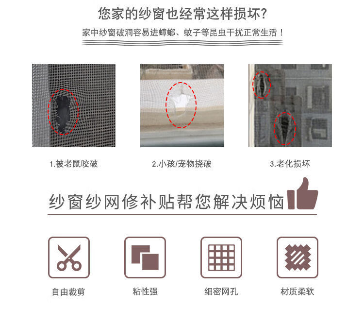Breathable anti-mosquito screen window patching hole repair patch hole artifact screen door screen window mesh repair tape self-adhesive patch patch gray waterproof and sticky style 3 rolls